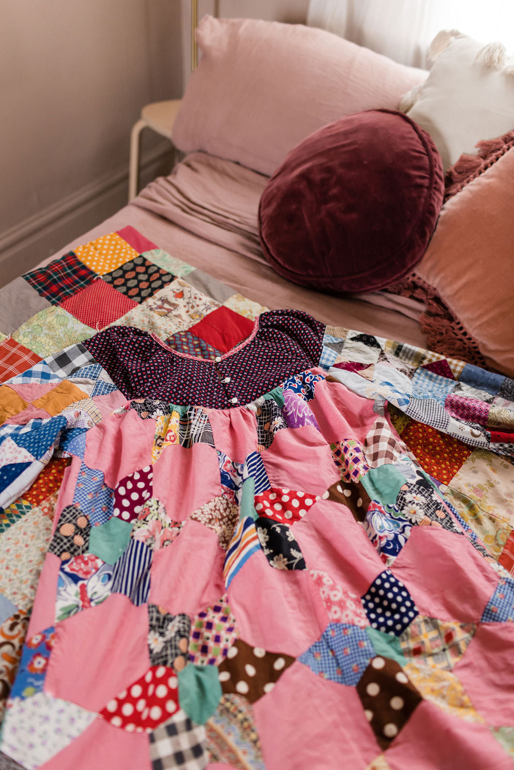 As always, Honeybea pieces are made responsibly with hand-picked and thoughtfully revitalized vintage, thrifted and despairingly distressed or displaced historic heirloom textiles, expertly hand-cut, preserved and sewn locally in small batches.