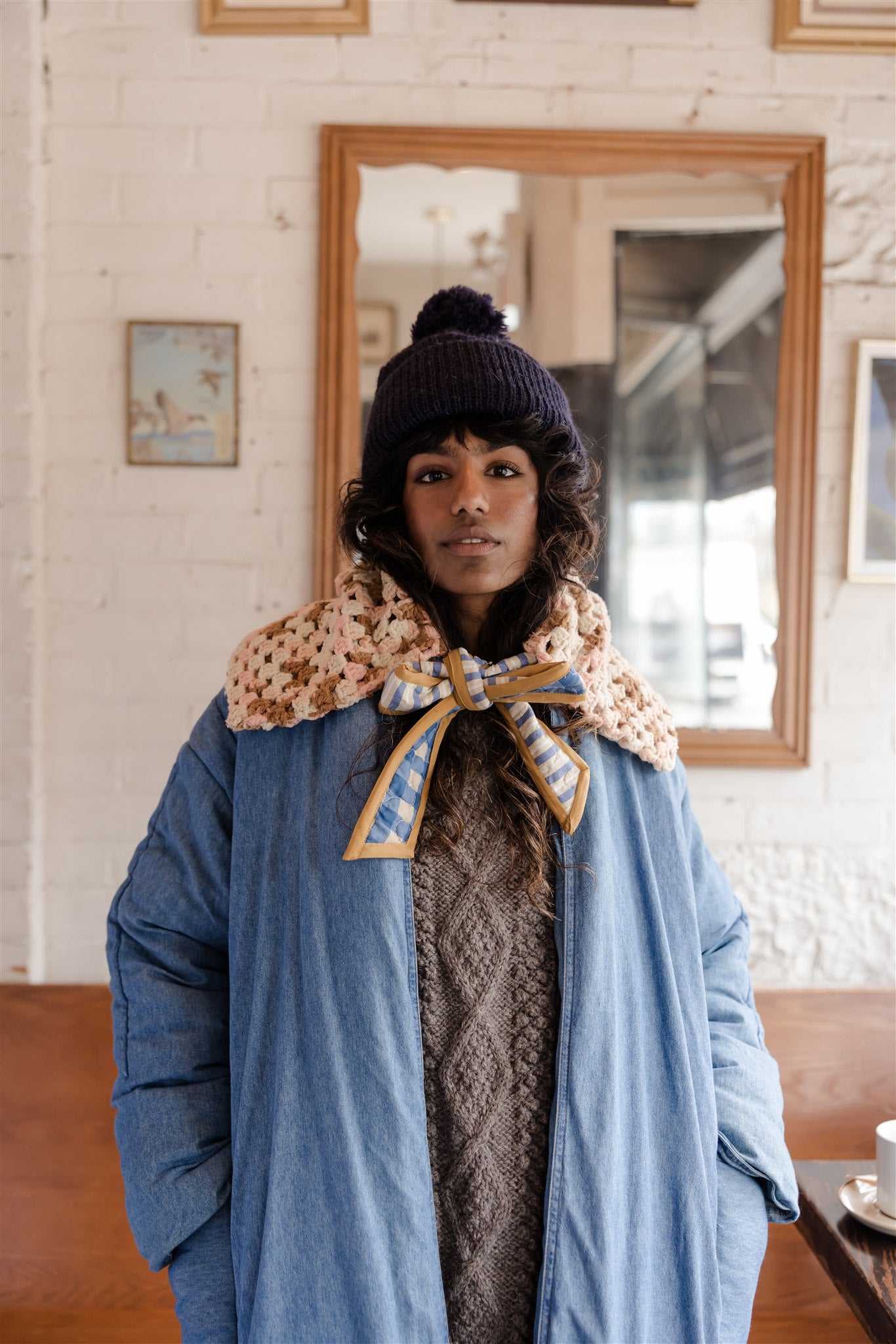 In a glimmer of winter whimsy, our enchanting Noëlle Collar arrives this season in a celebration of colour and craft. An avant garde accessory to style over dresses, vests, blouses and coats, Noëlle is composed in a spectacular archive of salvaged vintage crochet with a voluminous, adjustable shape. Complete with a double-sided quilted tie to wear loose or in a bow, this fibre-forward scarf substitution exudes an air of artistry when winter styling needs it most.