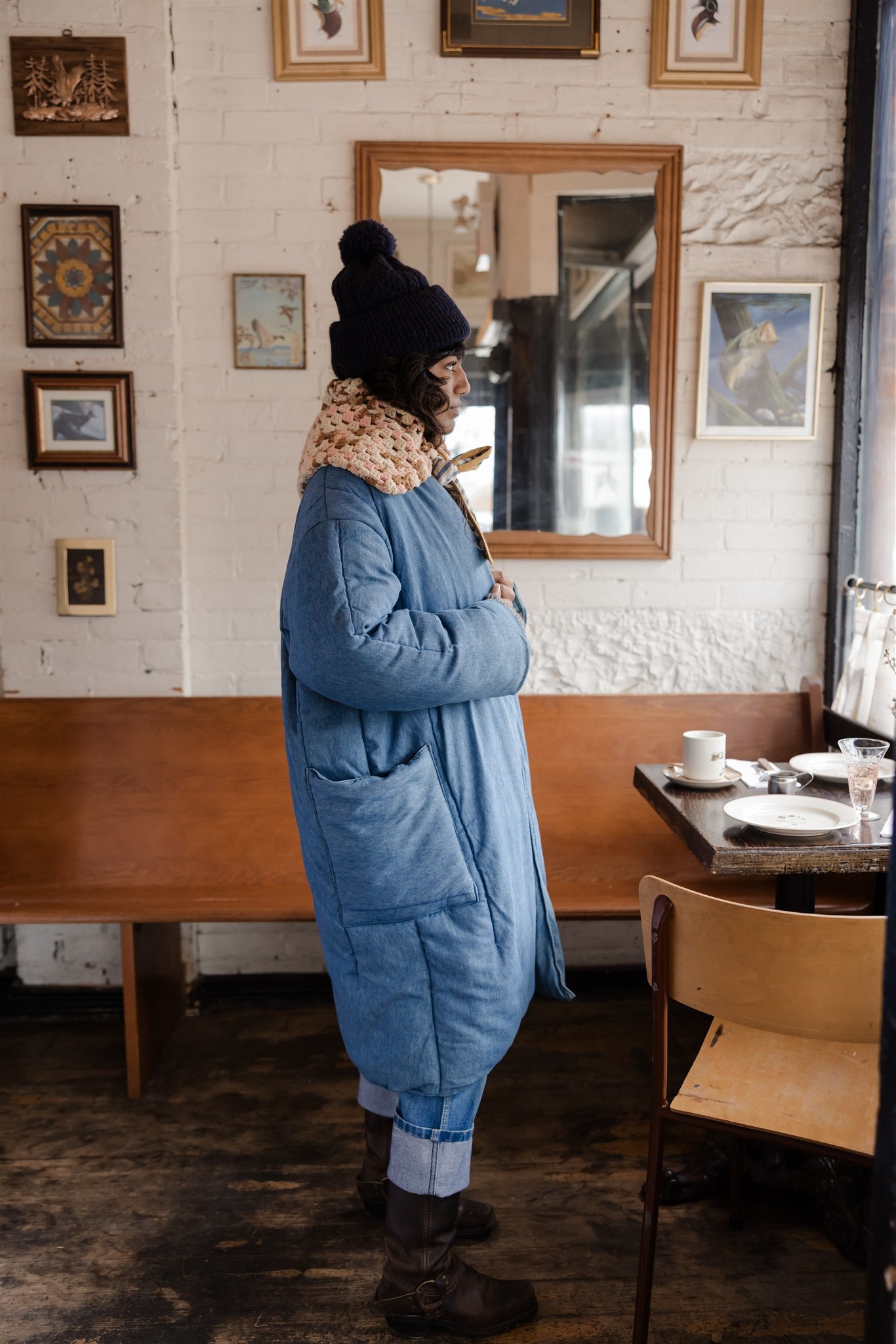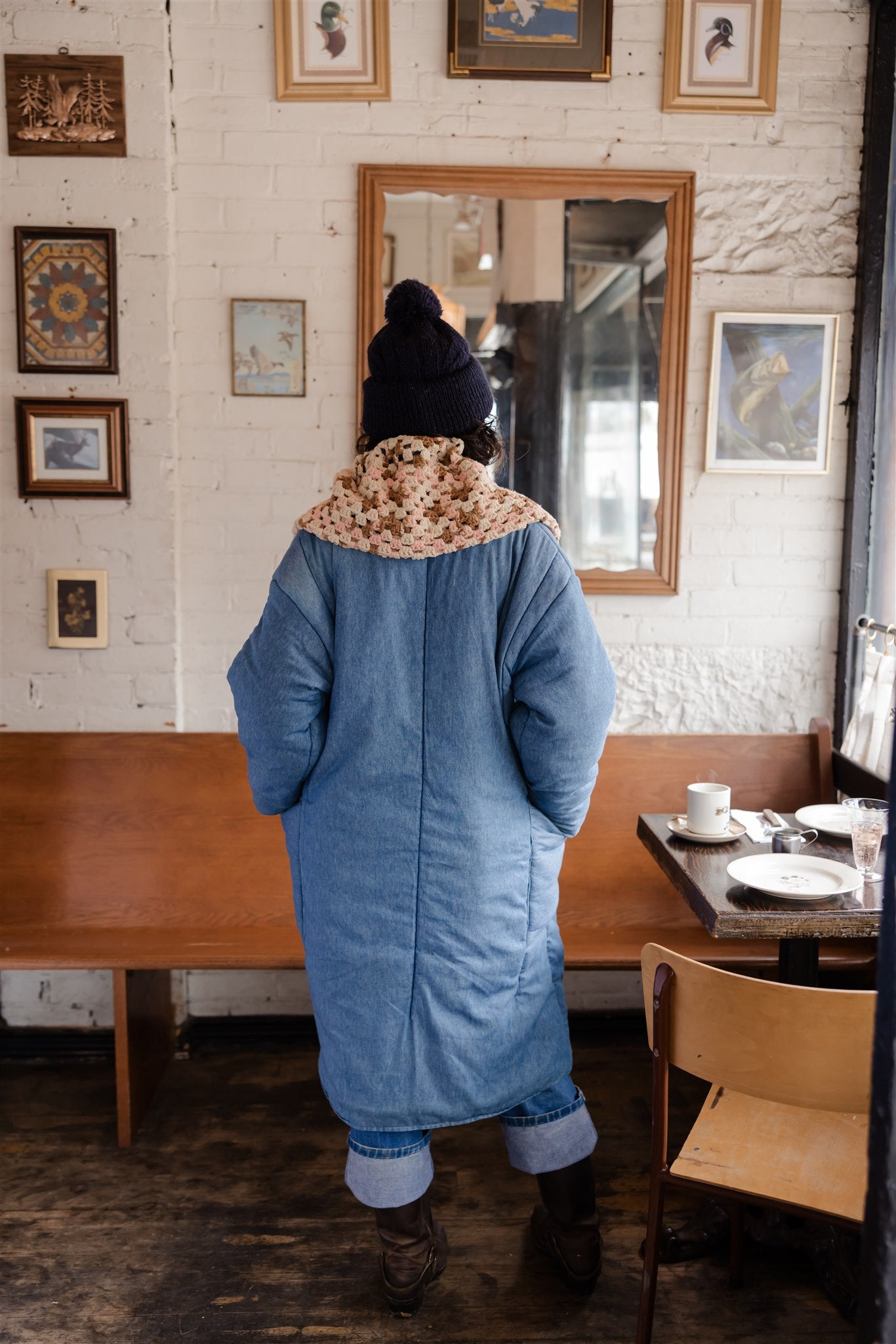 Made of premium, hand-picked vintage crochet blankets, each textile has been carefully selected for its yarn quality and handfeel, however, our fibre content remains unknown.