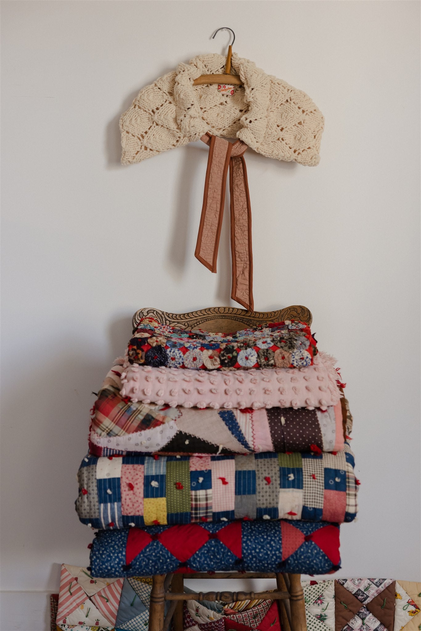Responsibly salvaged antique and vintage textiles with 100% cotton binding