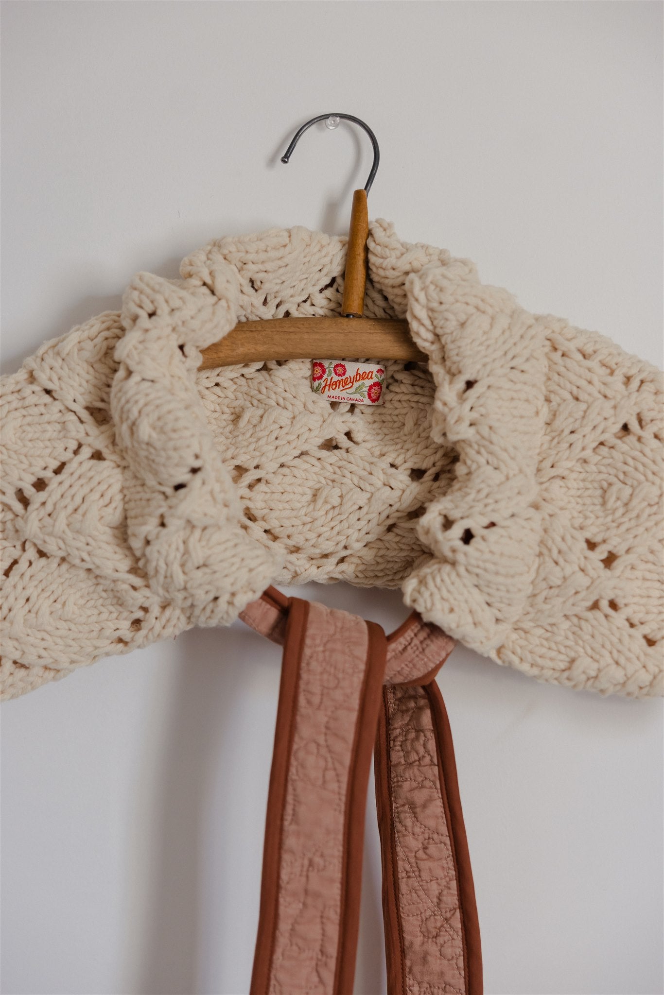 Made of premium, hand-picked vintage crochet blankets, each textile has been carefully selected for its yarn quality and handfeel, however, our fibre content remains unknown.