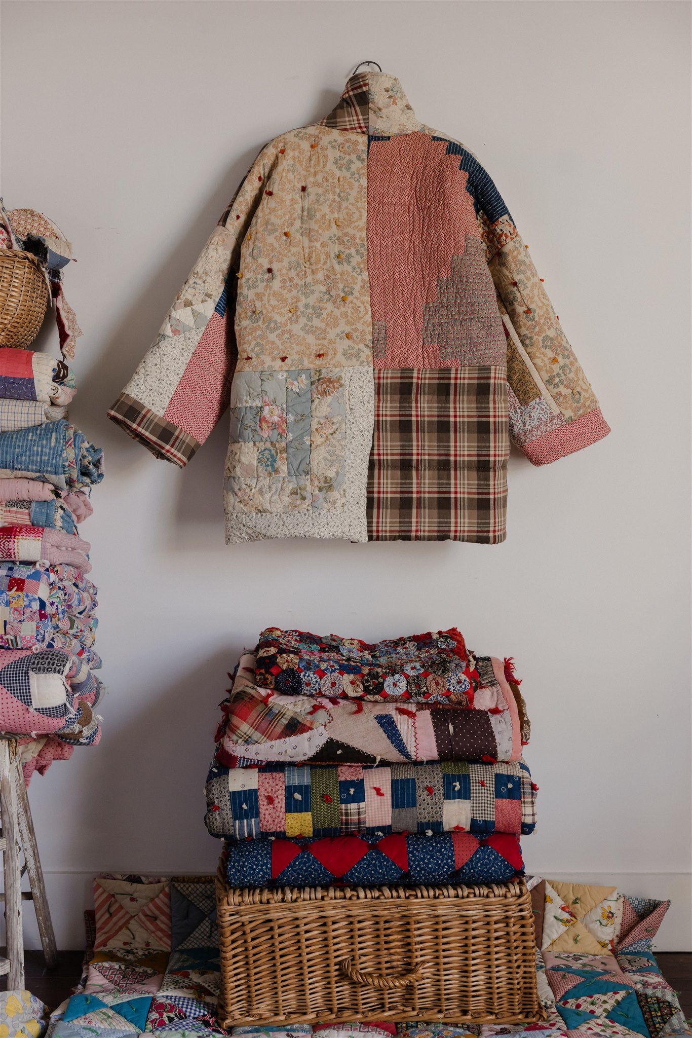 In this rare collector’s edition of six spectacular pieces, our Northfolk Coat holds the archive of our most treasured textile scraps, and the boundless love that lives within each stitch. A testament to our belief that patchwork is a life force of ever-inspiring comfort and connection, each salvaged composition of silk and velvet crazy quilts, early antique calicos and weathered vintage florals has unfolded across our studio work table in a profoundly intuitive practice of artistry and peace, made to carry and share the heart and soul that has been poured into it.