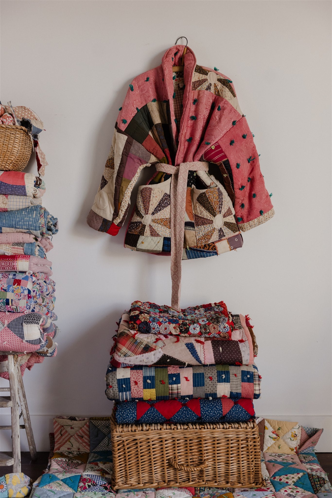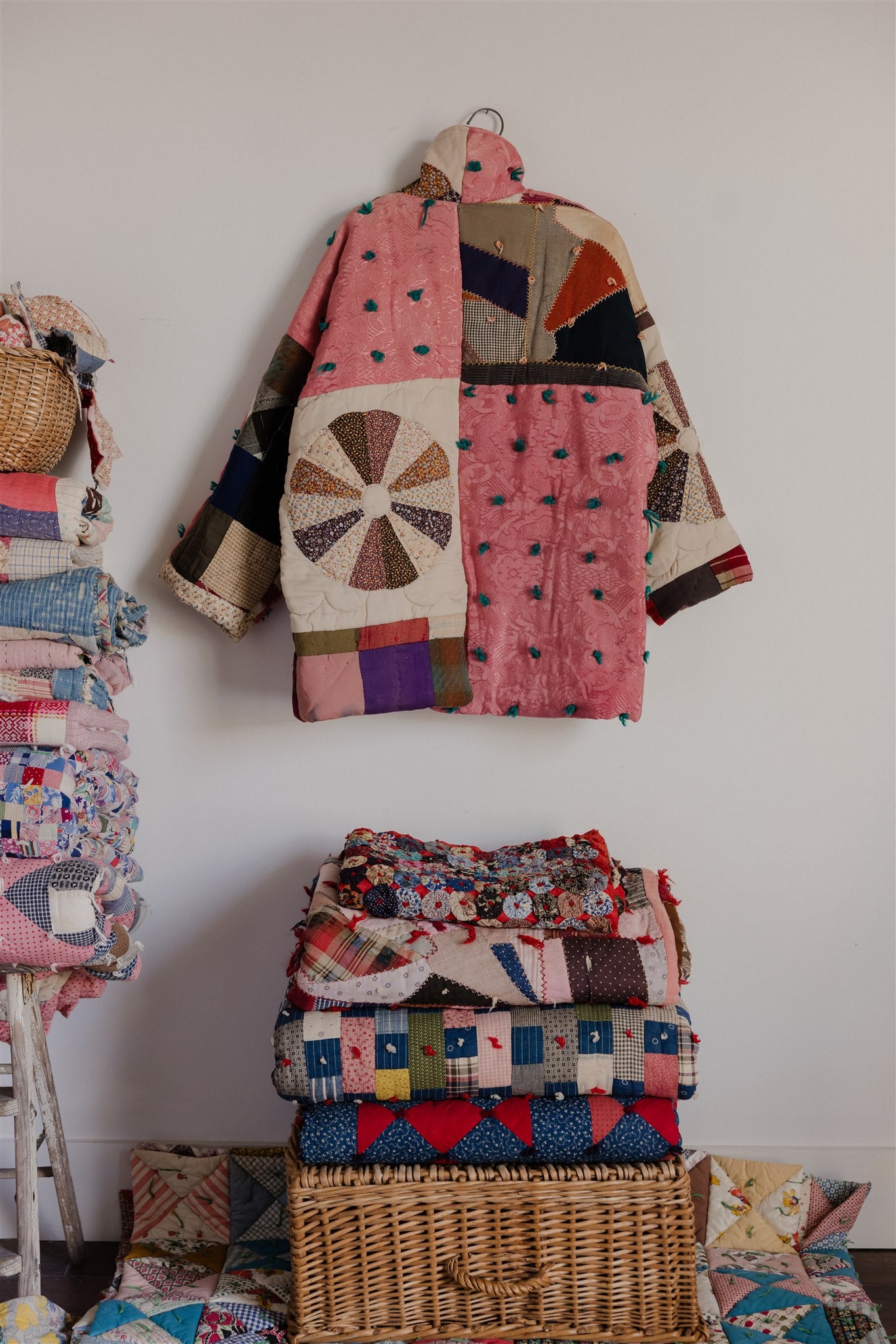 In this rare collector’s edition of six spectacular pieces, our Northfolk Coat holds the archive of our most treasured textile scraps, and the boundless love that lives within each stitch. A testament to our belief that patchwork is a life force of ever-inspiring comfort and connection, each salvaged composition of silk and velvet crazy quilts, early antique calicos and weathered vintage florals has unfolded across our studio work table in a profoundly intuitive practice of artistry and peace, made to carry and share the heart and soul that has been poured into it.