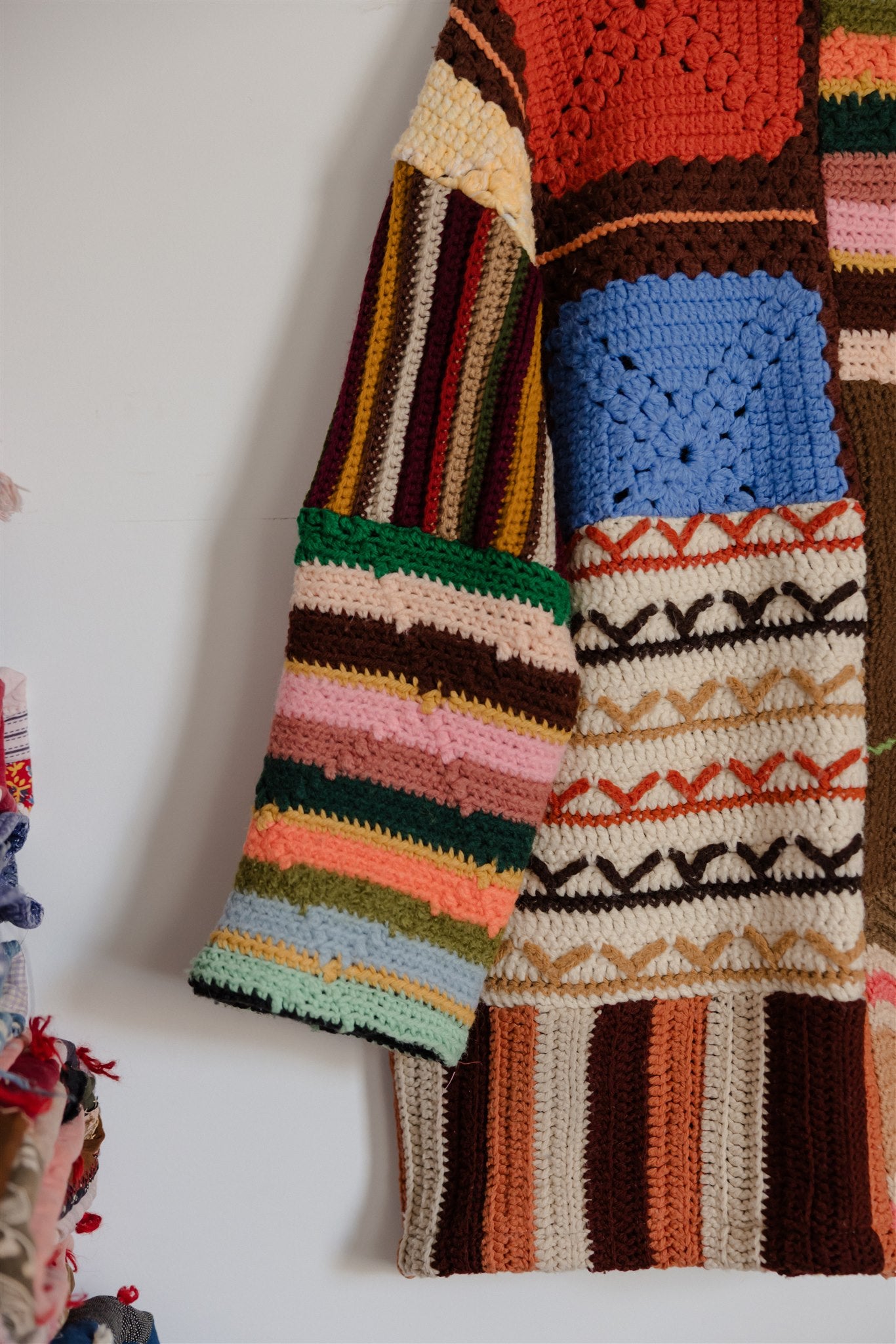 Our Patchwork Pullover was thoughtfully designed in one size silhouette to make this very limited collection as accessible as possible. Landing just above, or around the knee, a long knit was what we wanted while keeping it super wearable.