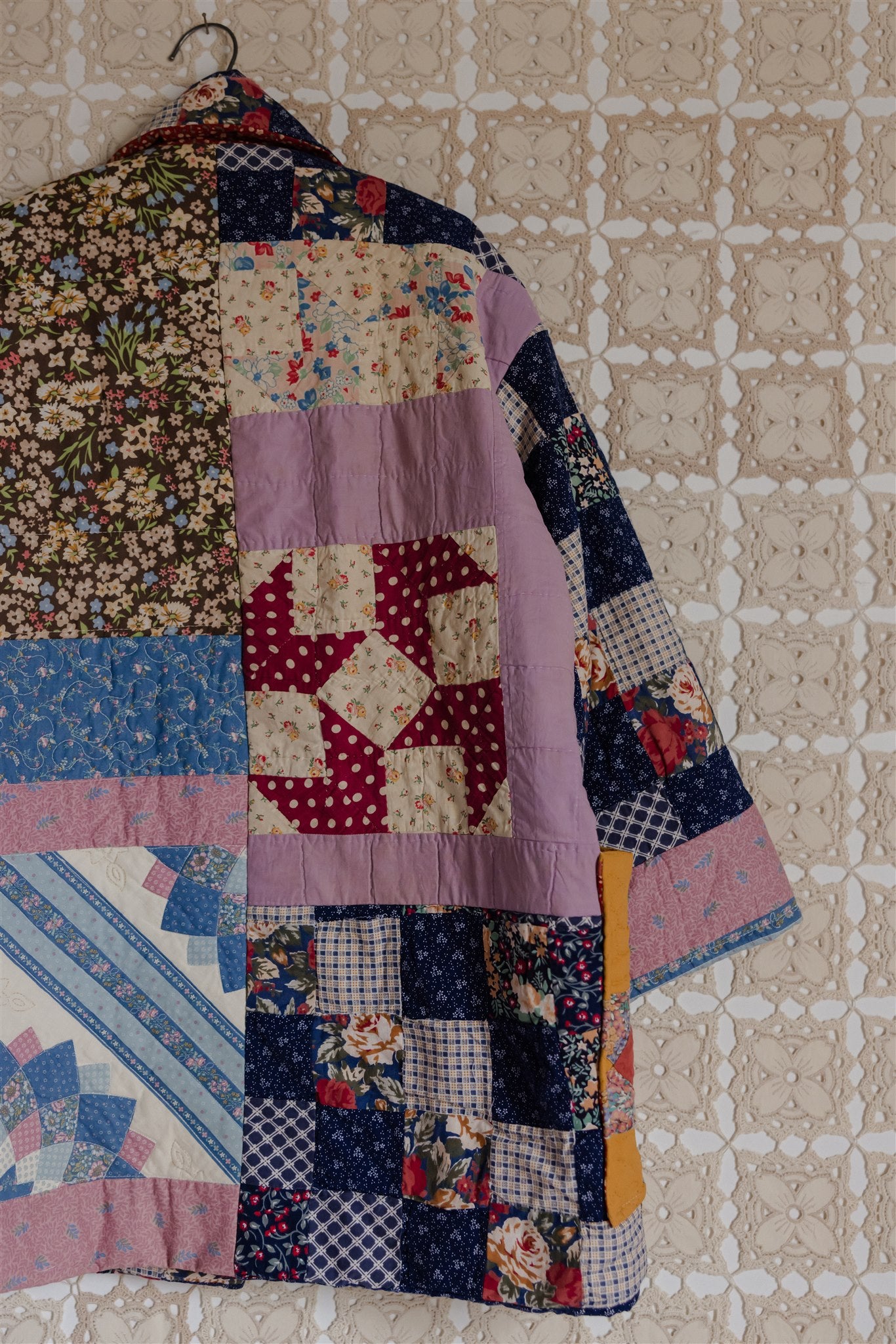 With a classic barn coat silhouette that wears and travels so well, our Wander Coat is always at the ready. A loyal layering companion that waits patiently by the door, there isn’t a season she wasn’t made for. Deep pockets and a slightly oversized shirt collar set the tone, with antique brass snaps offering that hint of rugged, hardworking charm that makes us feel just right. Made in a profoundly special story edition of original hand-pieced patchwork from deep in the Honeybea archives, look closely and you will see the love and legacy of not one but many heirloom quilts. Central to who we are and what we believe, each coat is a life force of wisdom and warmth that has so much good to teach us, so we keep finding, rescuing, piecing and listening. We hope you love this achingly special collection of seven precious pieces.