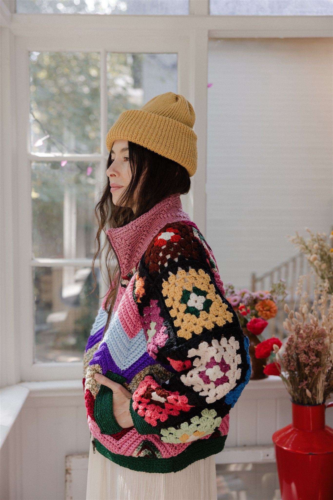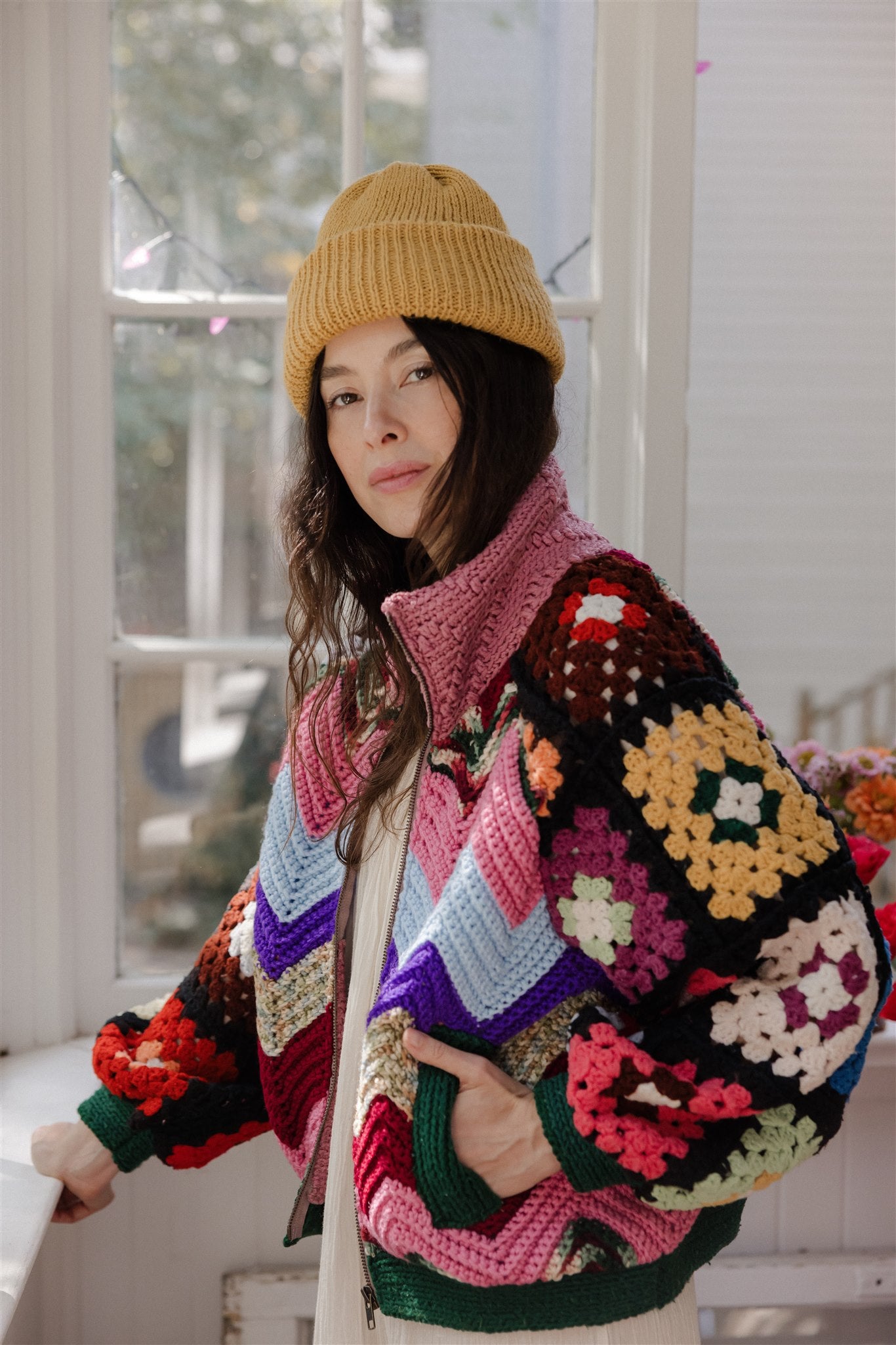 100% repurposed knit and crocheted blankets in wool and acrylic blends.