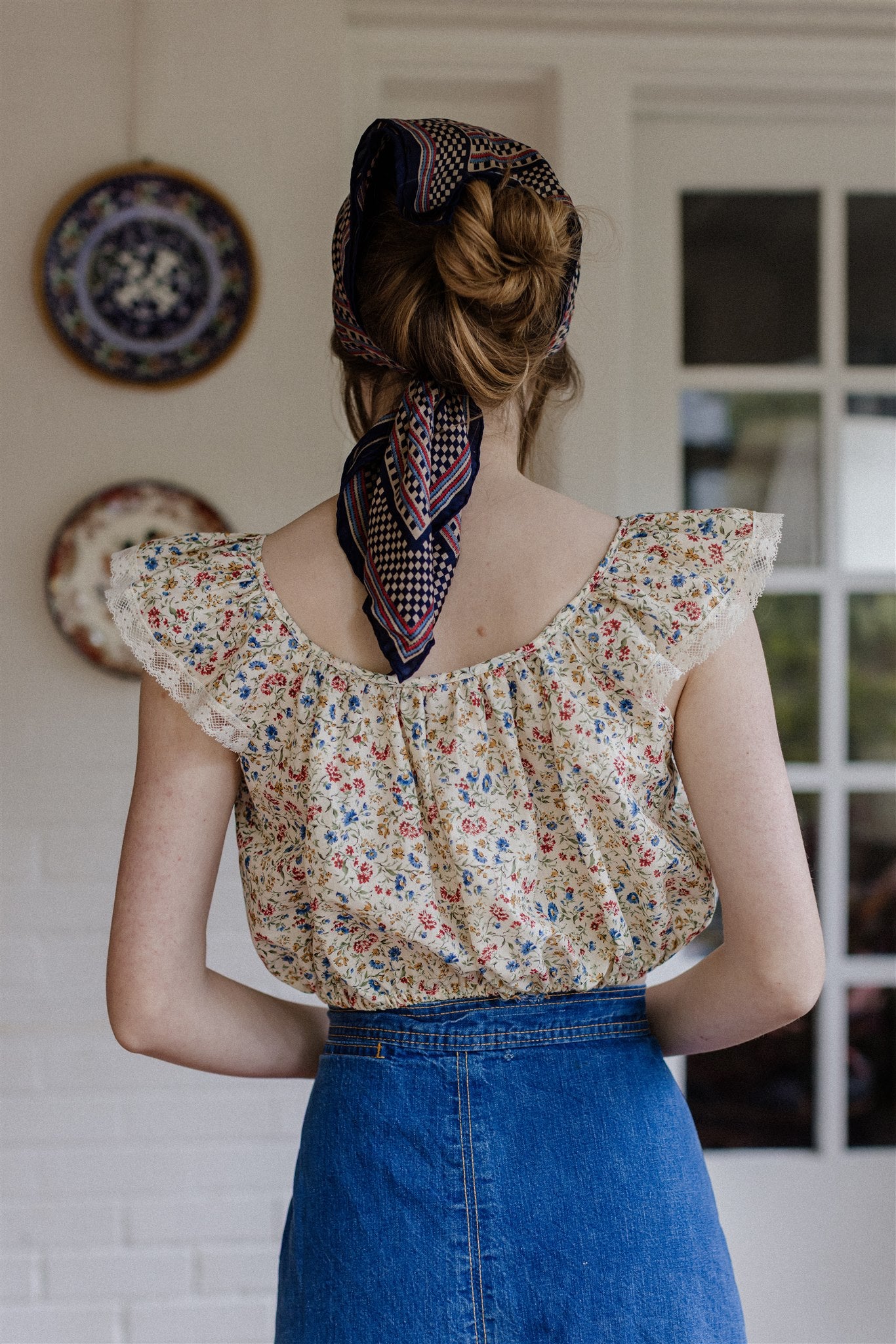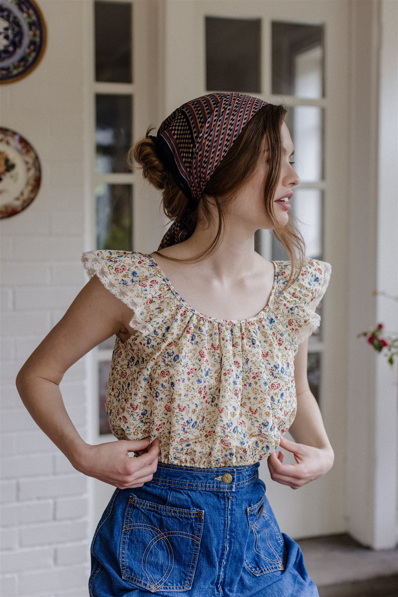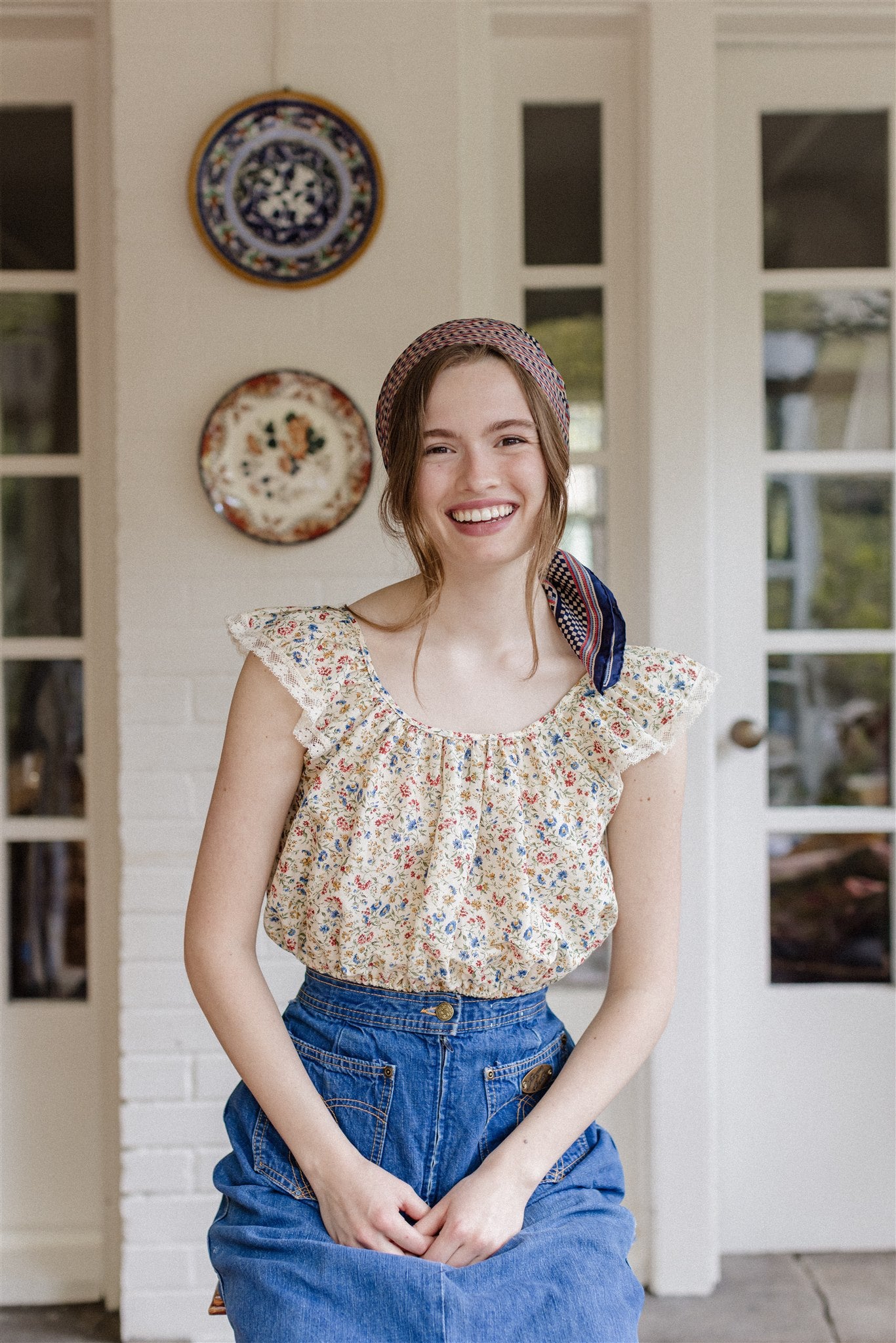 Reminiscent of an antique camisole with delicate detailing and an elegant old world cut, our Carolina Top and her dainty silhouette evokes a dreaminess to be enjoyed in endless ways. Made in the airiest cotton lawn with a ditzy floral print, Carolina pairs beautifully with weathered denim, white skirts and a little pop of red.