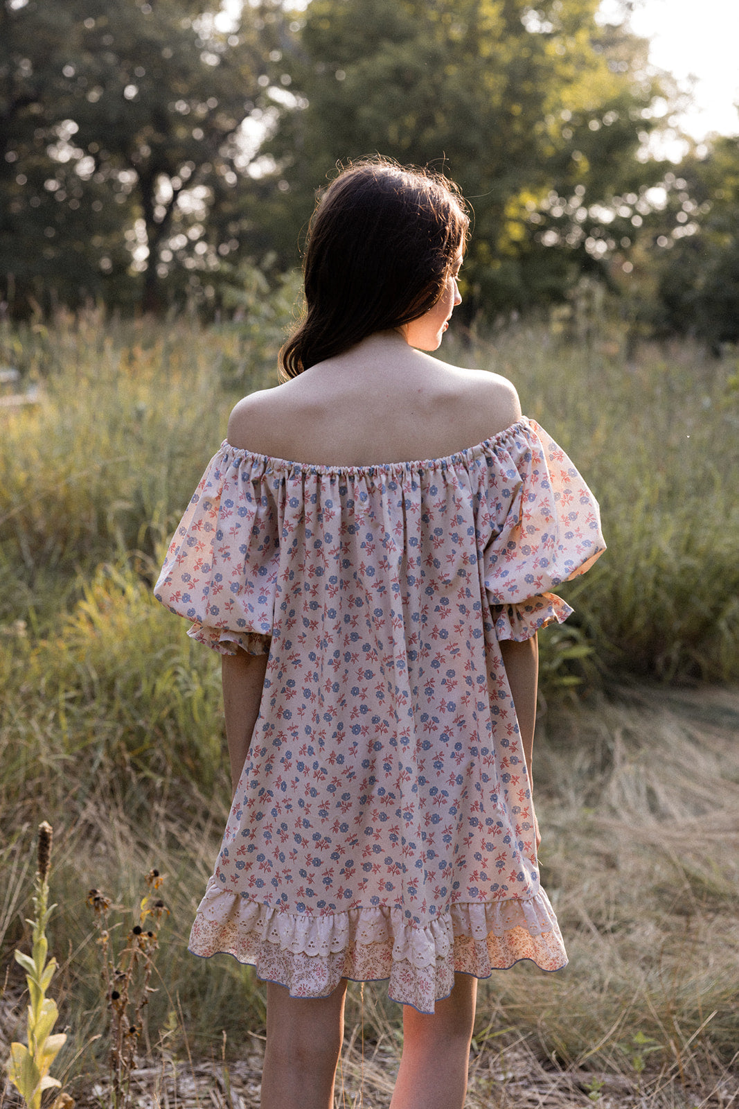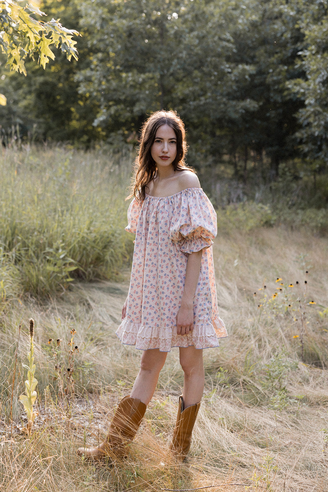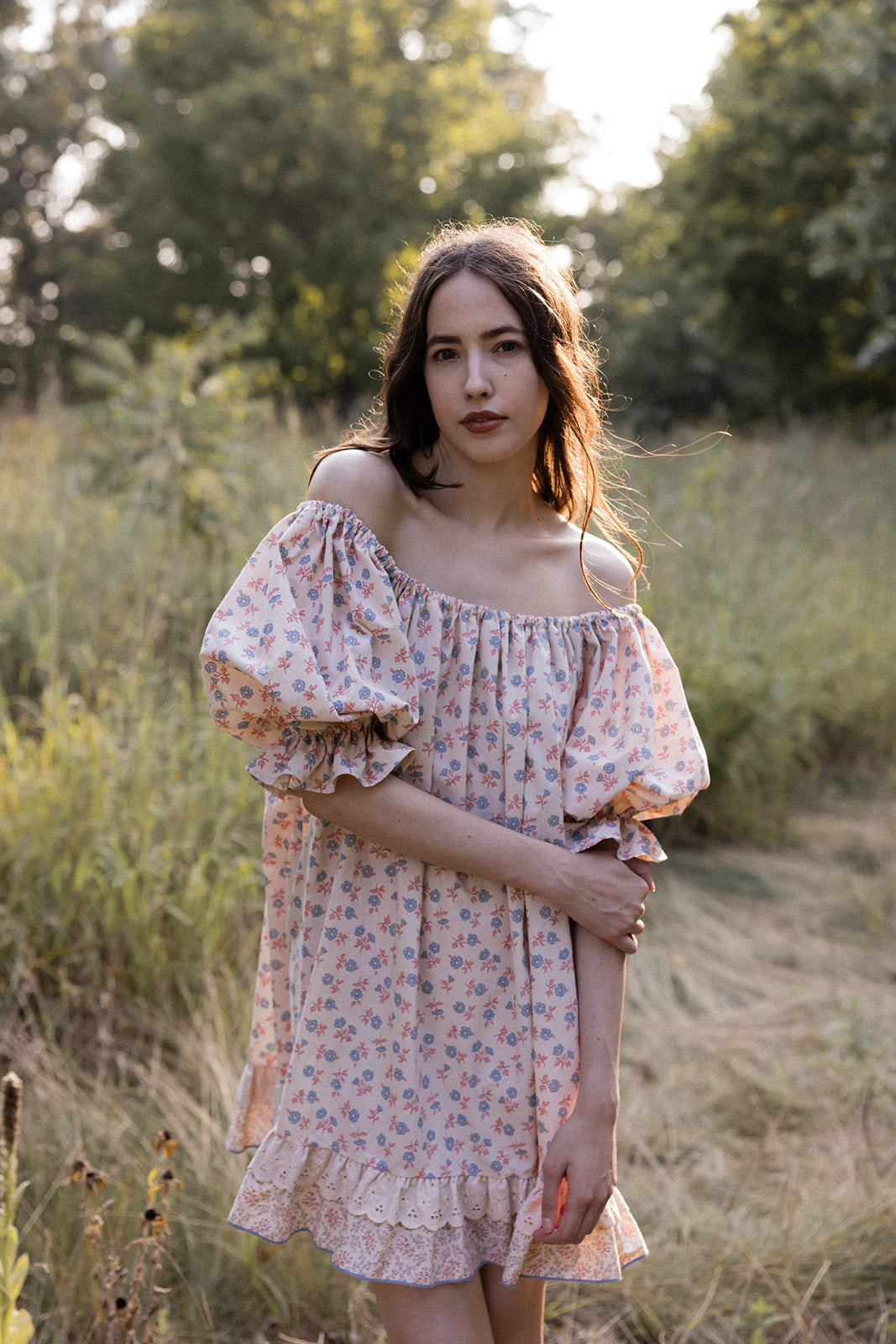 A truly perfect silhouette that has satisfied our every getting-dressed desire, the Cloud Dress speaks so gently and eloquently for herself. Designed as a seasonless hybrid to bridge summer and fall, winter and spring, a piece that offered both a cozy comfort and weightless landing was very much in need for hot days bookended by cool mornings and nights. With deep pockets to rest your arms in as you sway beneath the late summer sky and a flouncy babydoll style the begs for the tall boots of fall, each piece is made from charming found and salvaged textiles cut and sewn with the balloon sleeve drama of our dreams and an organic braided elastic neckline that can be worn on or off the shoulder. We have yet to take ours off.