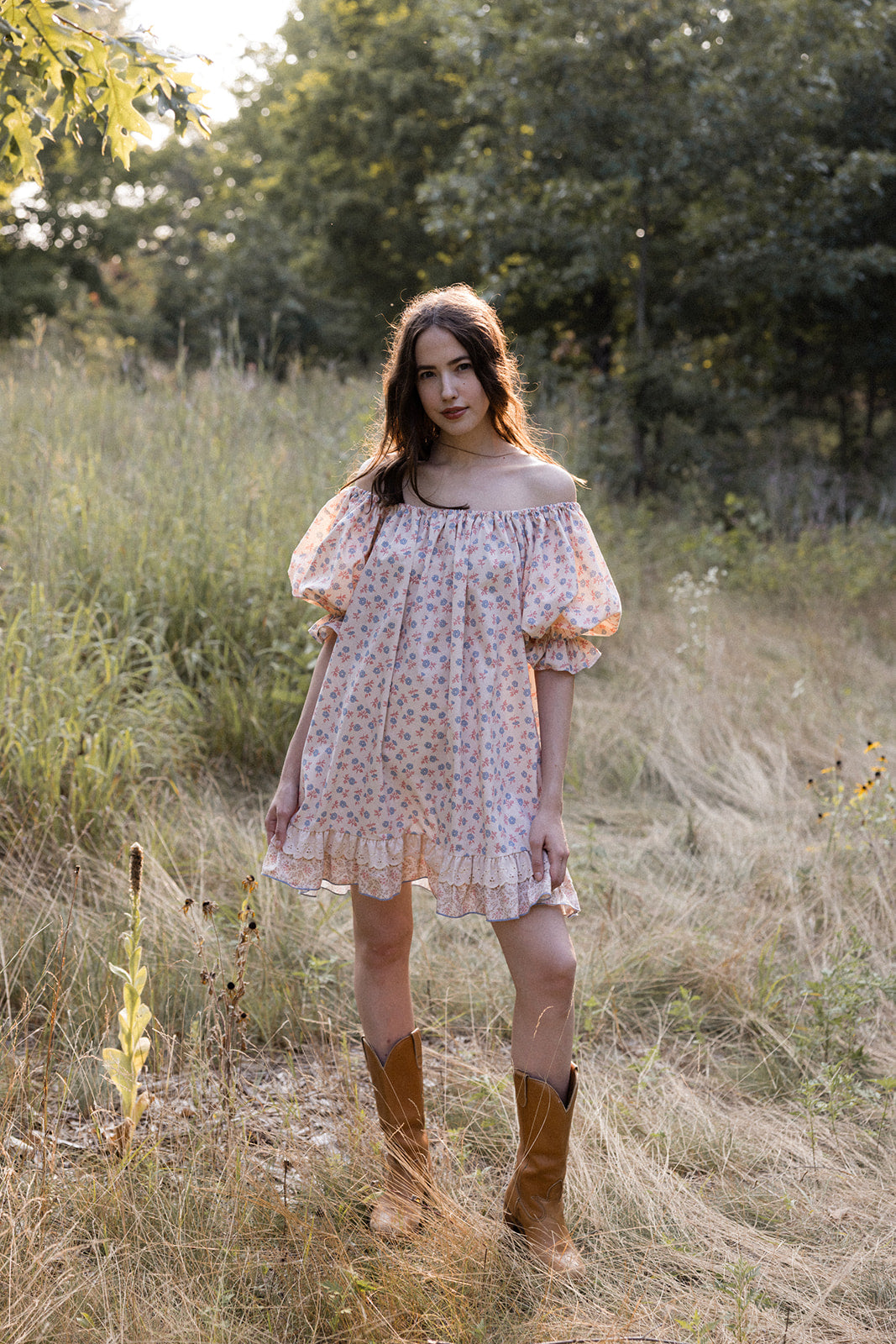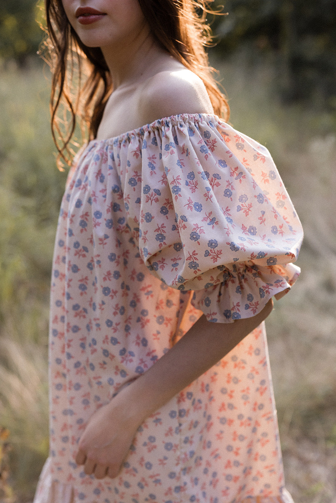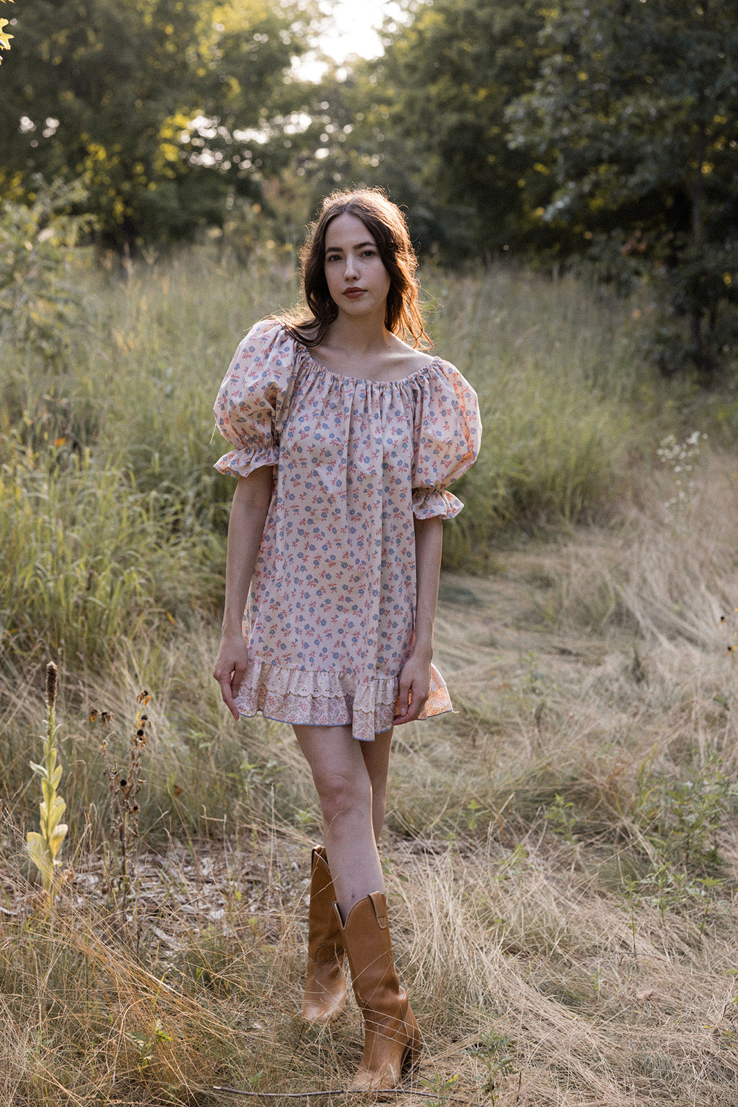 A truly perfect silhouette that has satisfied our every getting-dressed desire, the Cloud Dress speaks so gently and eloquently for herself. Designed as a seasonless hybrid to bridge summer and fall, winter and spring, a piece that offered both a cozy comfort and weightless landing was very much in need for hot days bookended by cool mornings and nights. With deep pockets to rest your arms in as you sway beneath the late summer sky and a flouncy babydoll style the begs for the tall boots of fall, each piece is made from charming found and salvaged textiles cut and sewn with the balloon sleeve drama of our dreams and an organic braided elastic neckline that can be worn on or off the shoulder. We have yet to take ours off.