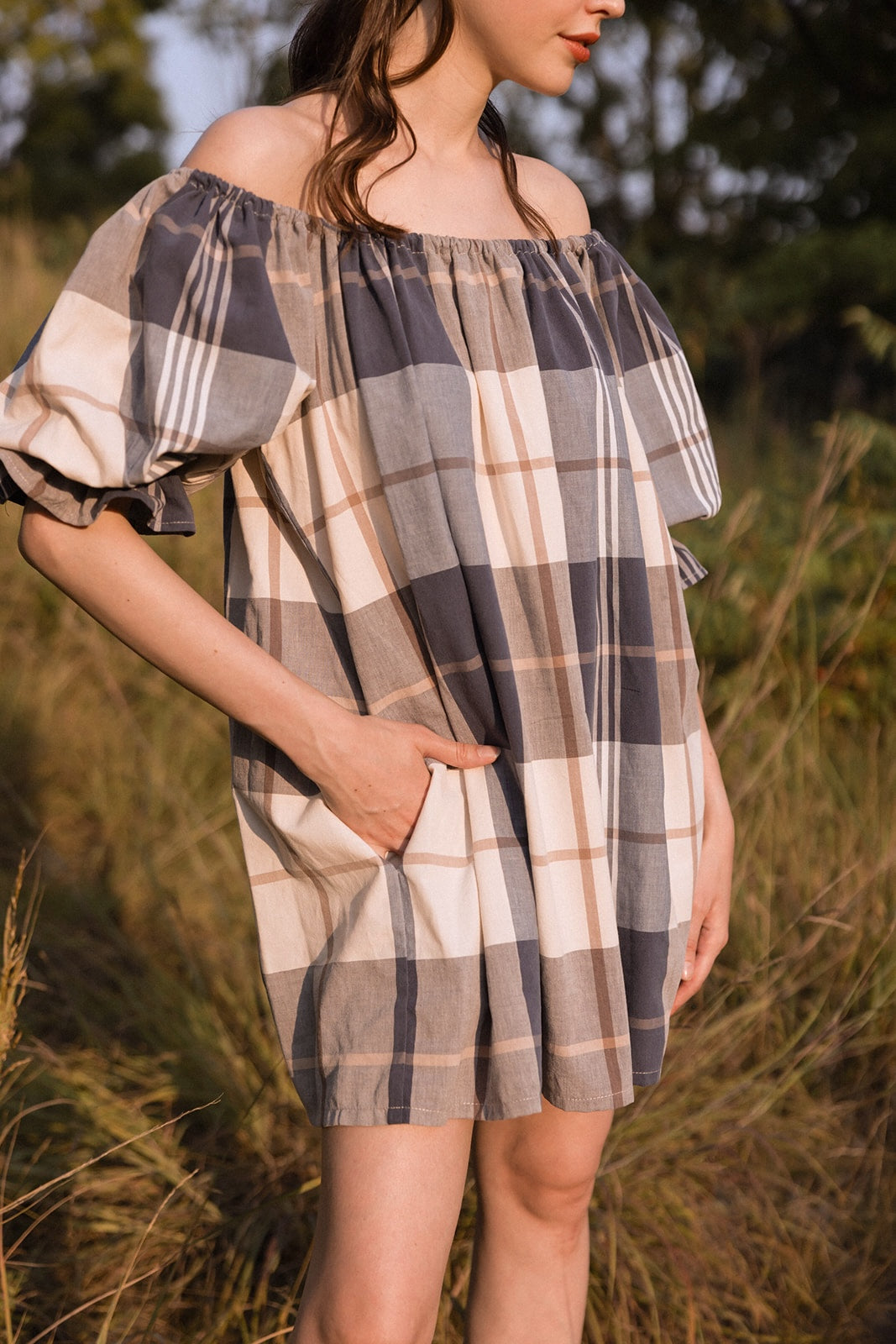 Deep in-seam pockets offer a comfortable feel alongside a relaxed, gathered neckline that can be worn on or off the shoulder.