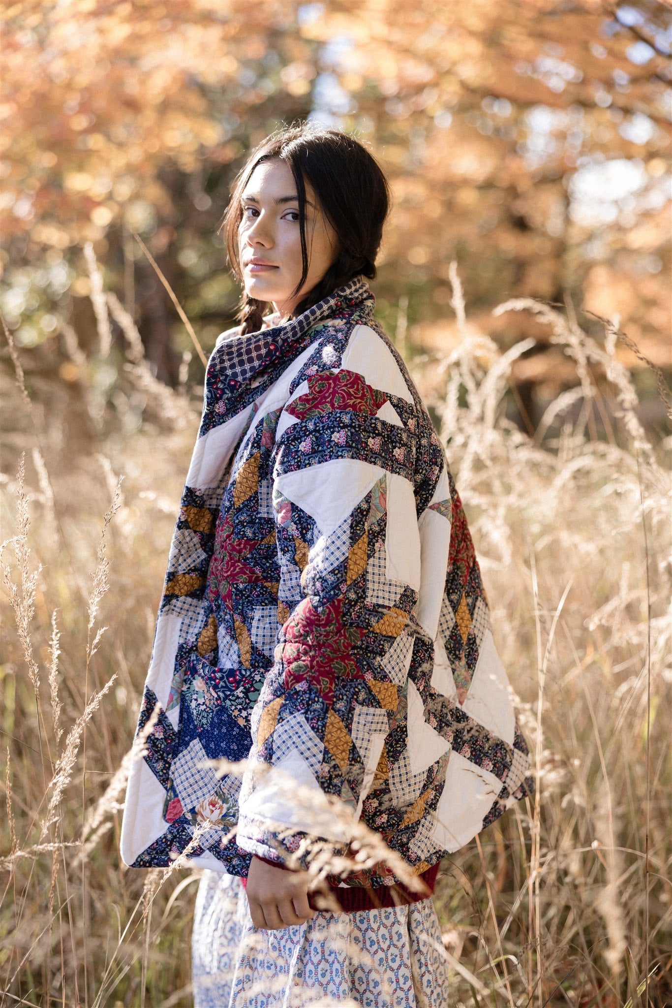 The ultimate grab-and-go layer piece, our Field Jacket is equipped with big pockets, a cozy oversized collar and a loop to live by the door. Combined in a quilted mosaic of soft nostalgic prints and lofty weathered patchwork, this ultra effortless handcrafted coat is one simple and elevated step above wearing the blanket it is made of. Designed in small, curated batches and lined in a supple lavender cotton, enjoy its comfort and warmth for cool morning walks with the dog or kids, hands-free to the market with a list in the pocket or away for a long weekend with family and friends. Low fuss and high function that styles beautifully with a belt, our Field jacket is at the ready for every outing.