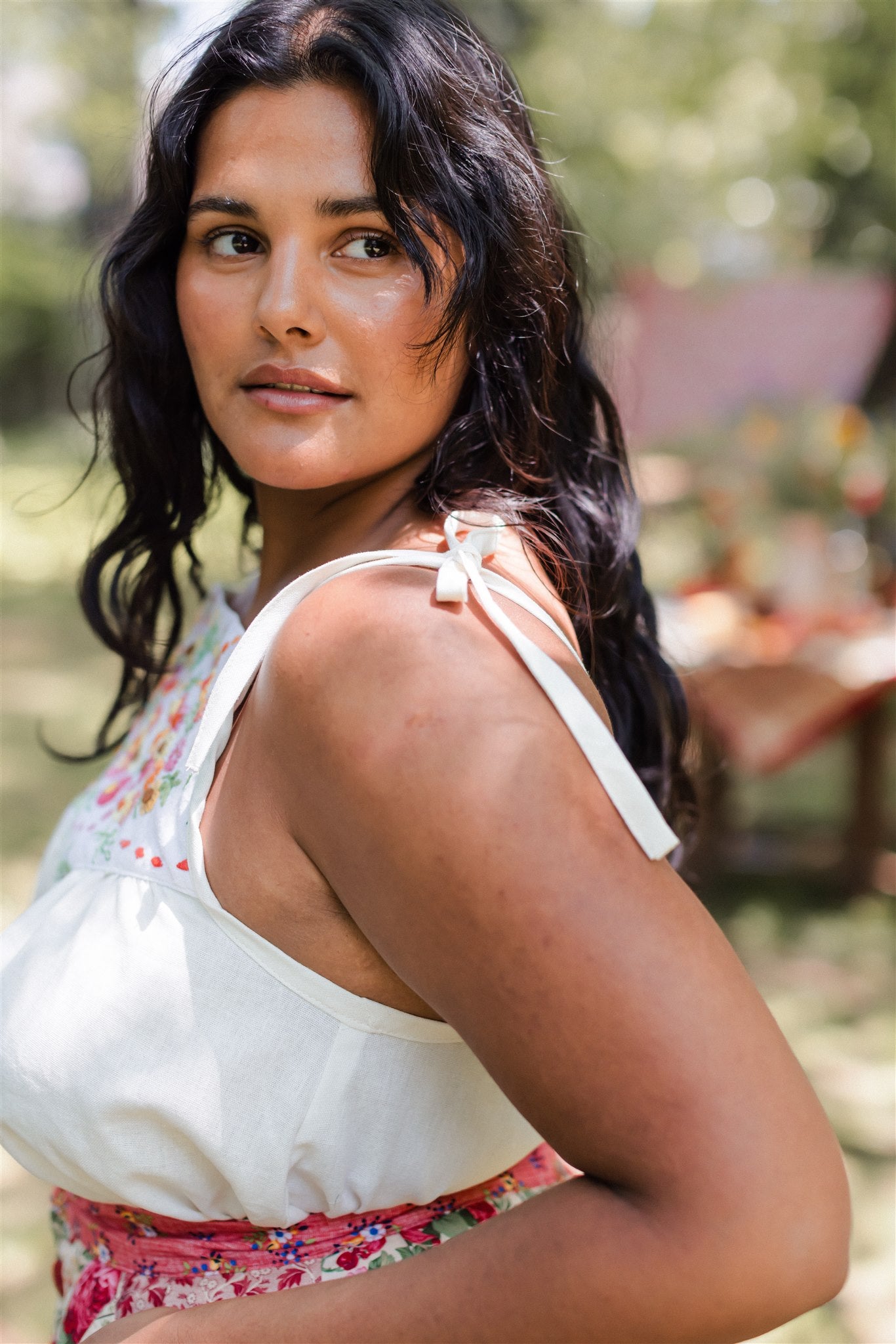 The epitome of classic summer style, our Marta Camisole is named after the queen of timeless beauty. Forever wearing a white tie-strap top, epic blue denim and a red bandana in my mind, my mom always knew how to keep it easy. With a assortment of lovingly salvaged embroidery at its heart and paired with a soft but gritty cotton-linen blend that you just know will get better with every wash, wrinkle and wear, this ultra relaxed and beautifully feminine top will be reached for on repeat with the other all time favourites in your closet.