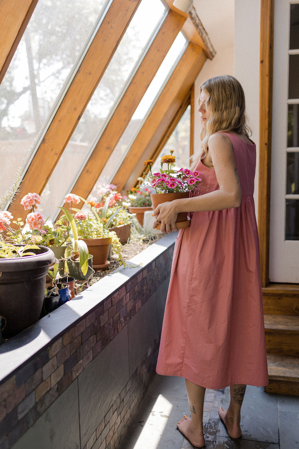 Friendly, familiar, loose and laid back, our Molly Lou Dress in classic Pink Polkadot is an unparalleled essential designed with simple, happy days in mind. Made for comfort in a beautifully baggy midi length silhouette and featuring a gathered empire waistline with double pockets, this everyday dress was made wears beautifully throughout the seasons
