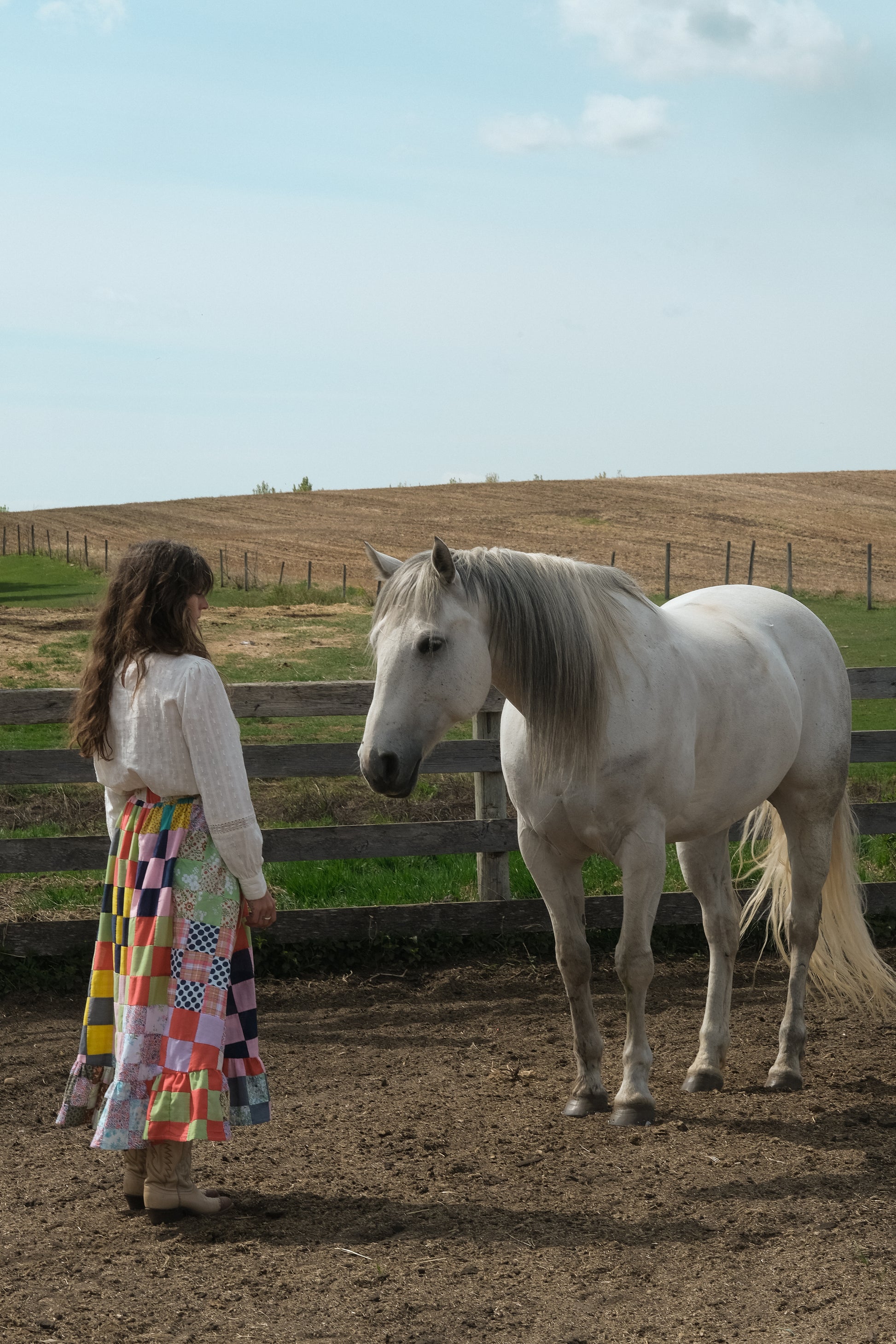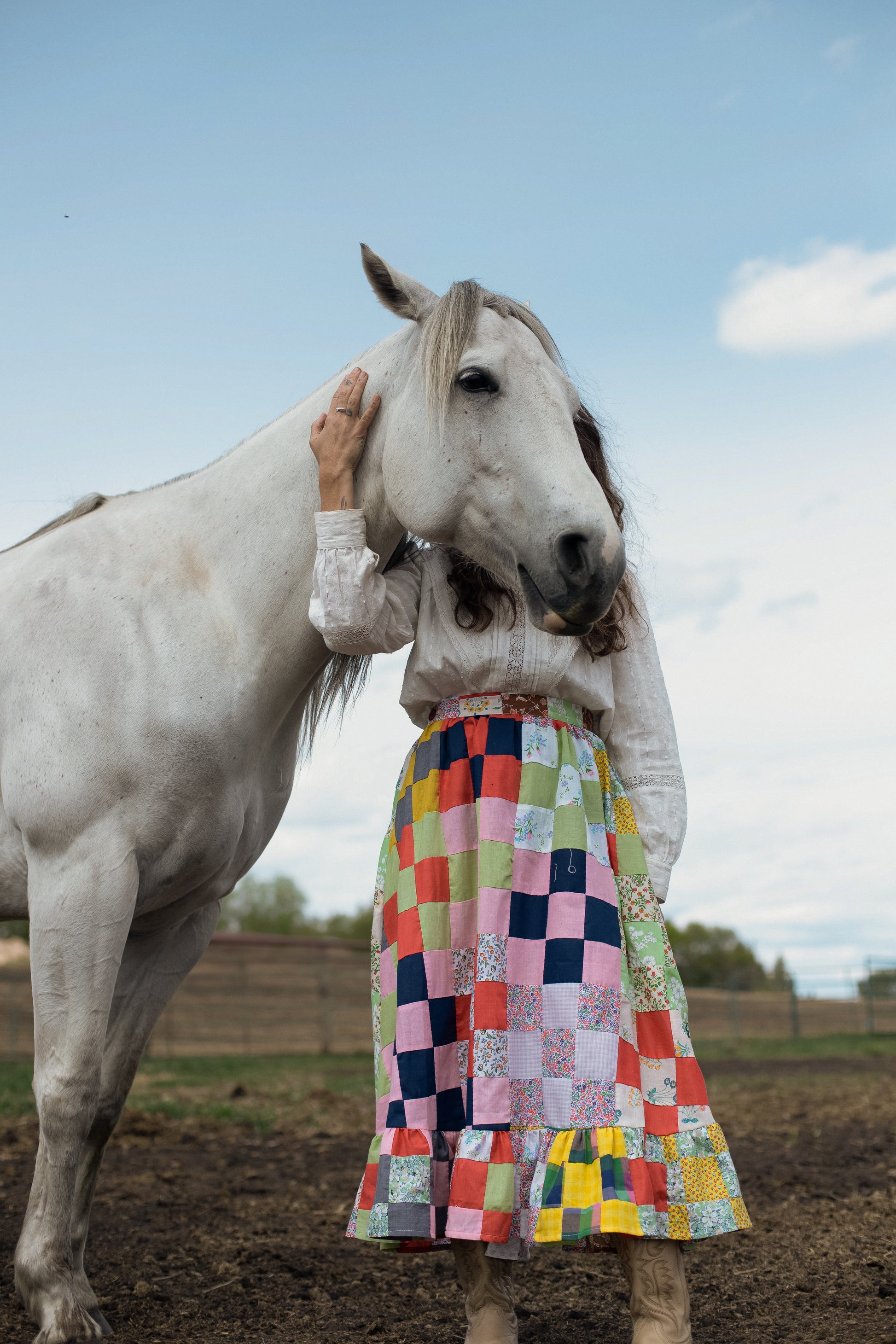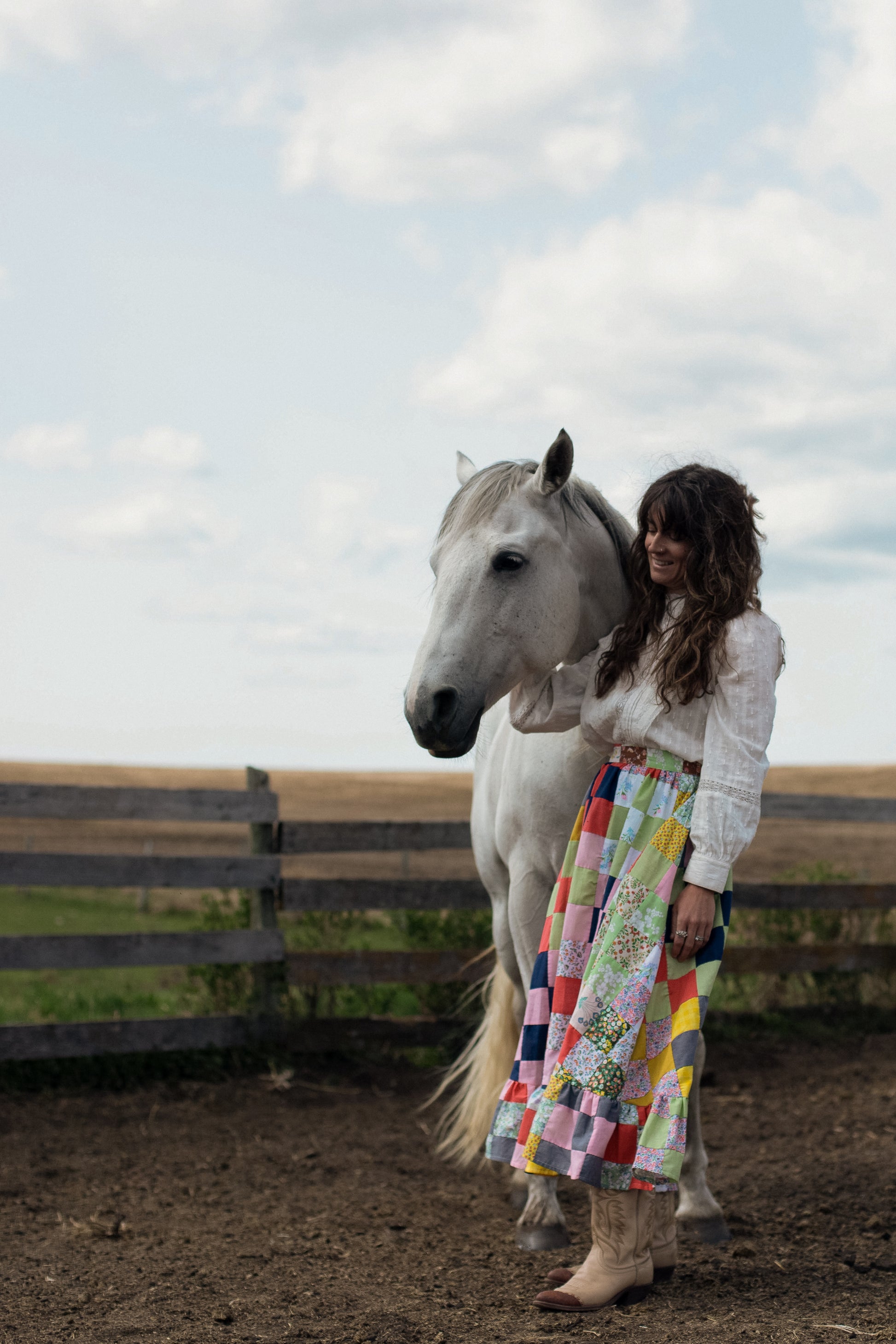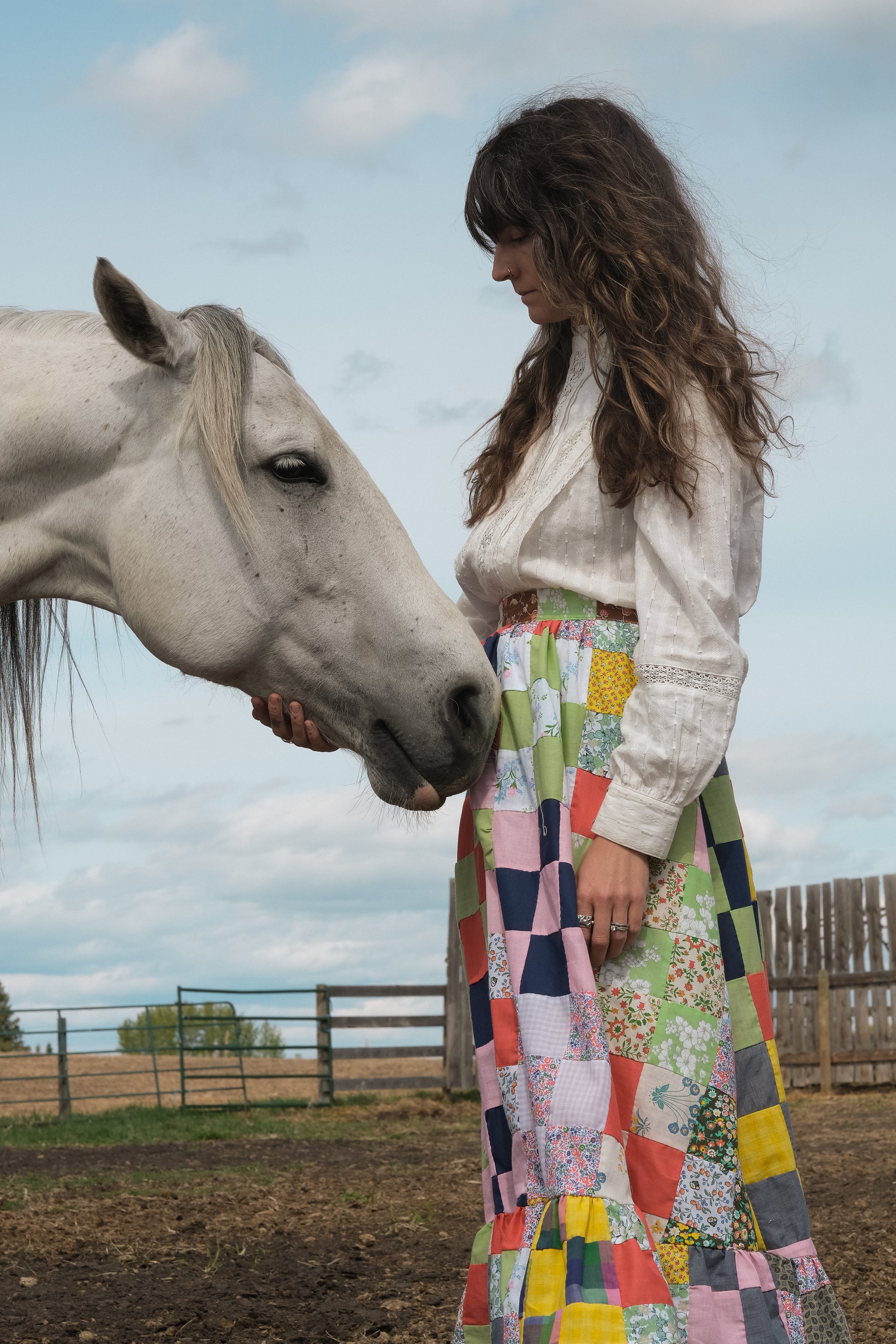 Made from the most achingly beautiful rescued heirloom patchwork left on the planet, our Vogue-worthy Patchwork Plough Skirt is an archive of love, resilience and the unrefined realness that inspires everything we do. A true museum piece made in an abundance of authentic antique textile history lost and found along the way, this remarkably full, petticoat-style silhouette has been immaculately designed with deep in-seam pockets, a custom dyed button and a flat waistband with soft knit elastic added discreetly in the back to allow for a relaxed high-waisted fit. Pair with a low-cut ballerina bodysuit, antique camisole or tight vintage knit throughout the seasons as you absorb the spectacular strength of this magnificent heirloom treasure.