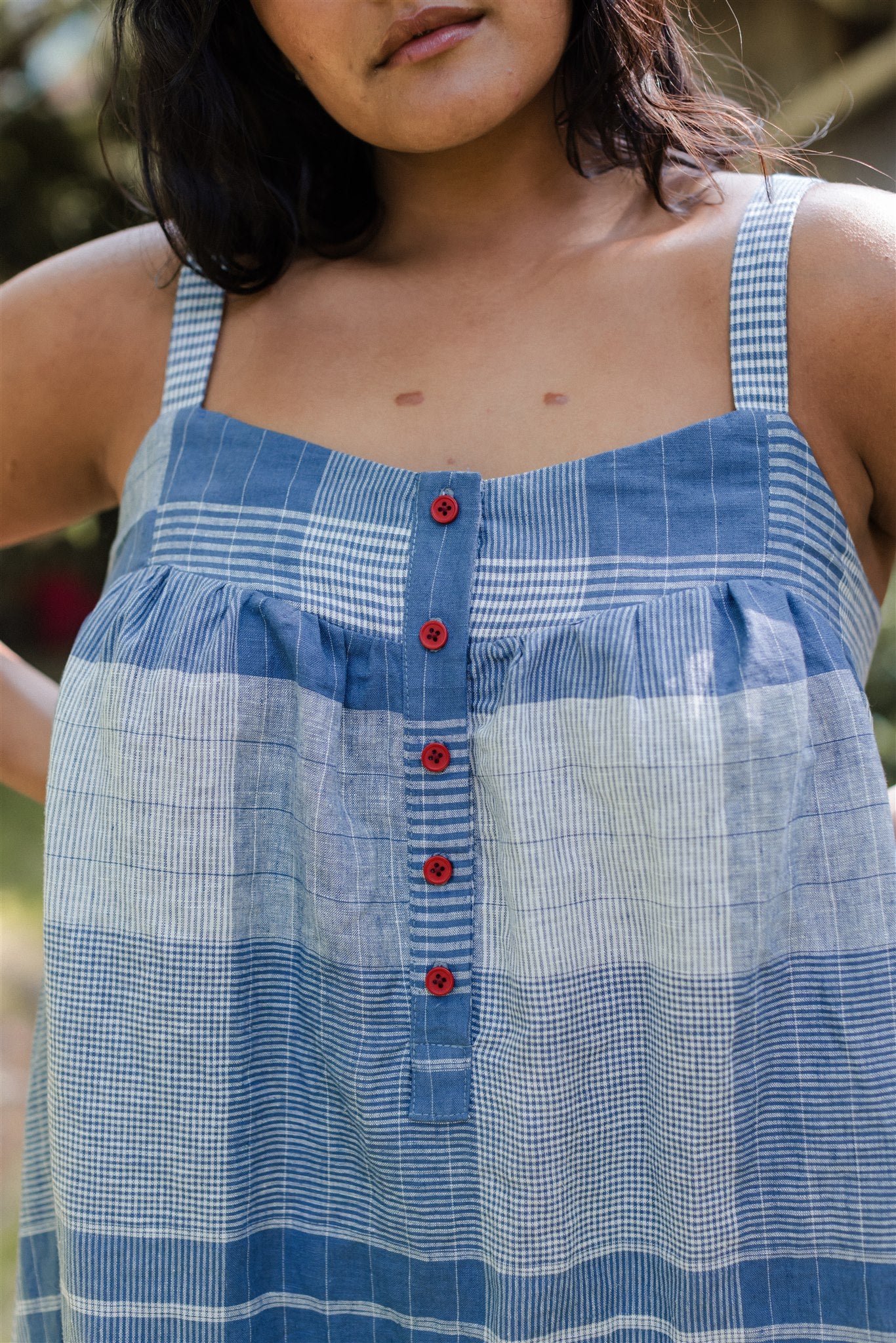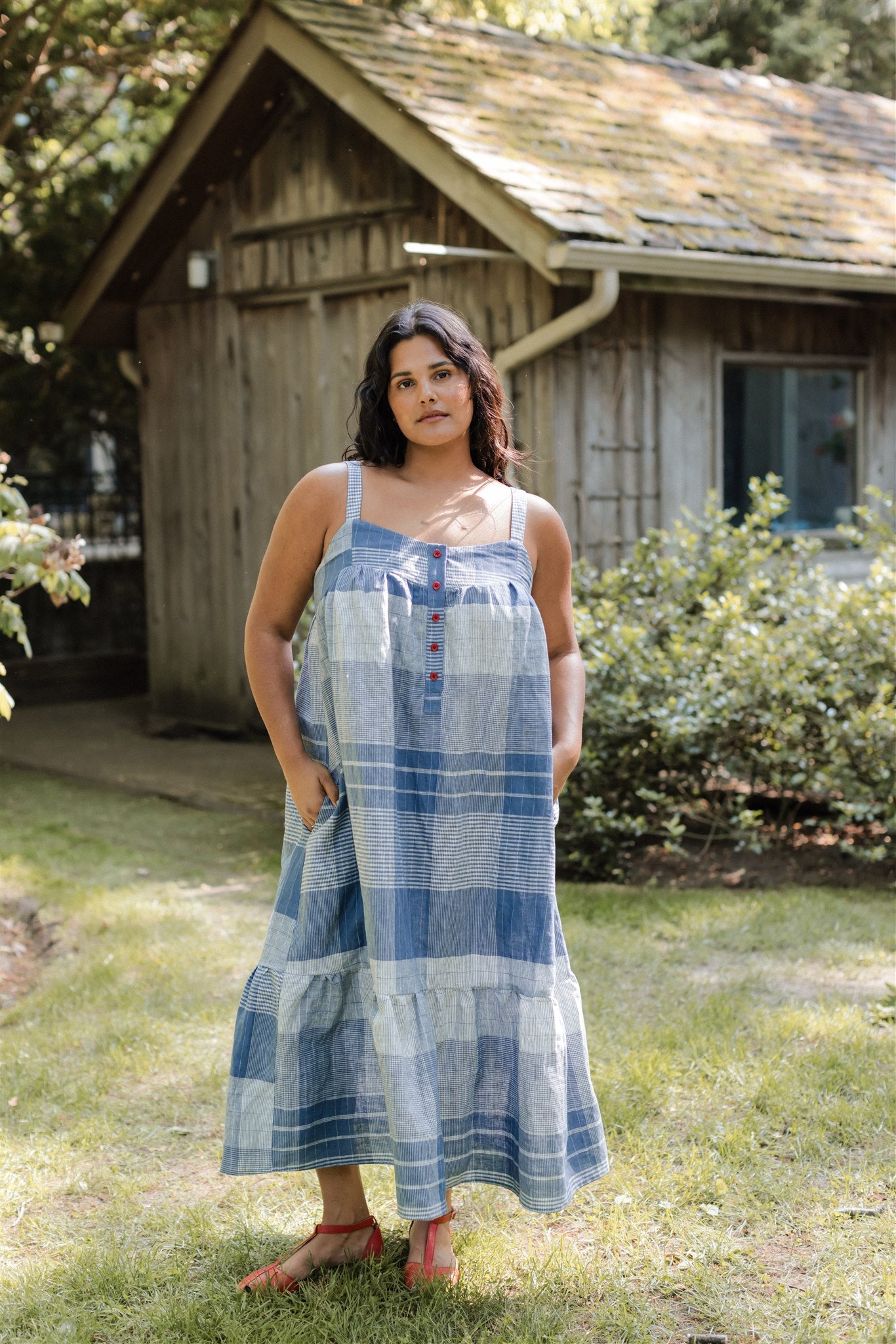 Sewn in a gorgeous cotton-linen blend or classic blue check, the weight and composition of this dress is made to be lived in, and washed and dried with ease.