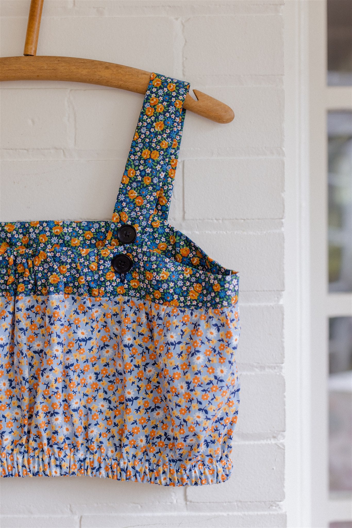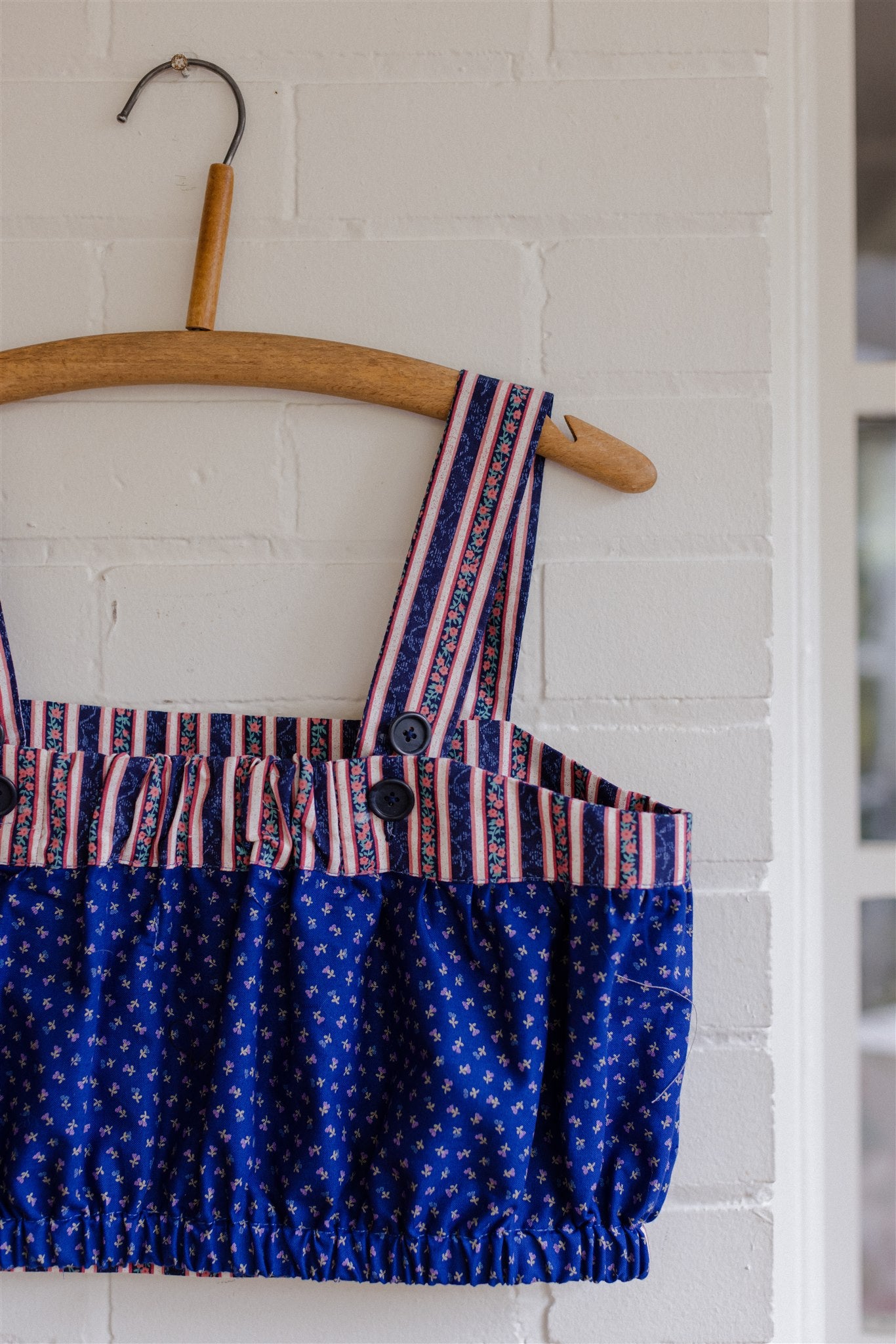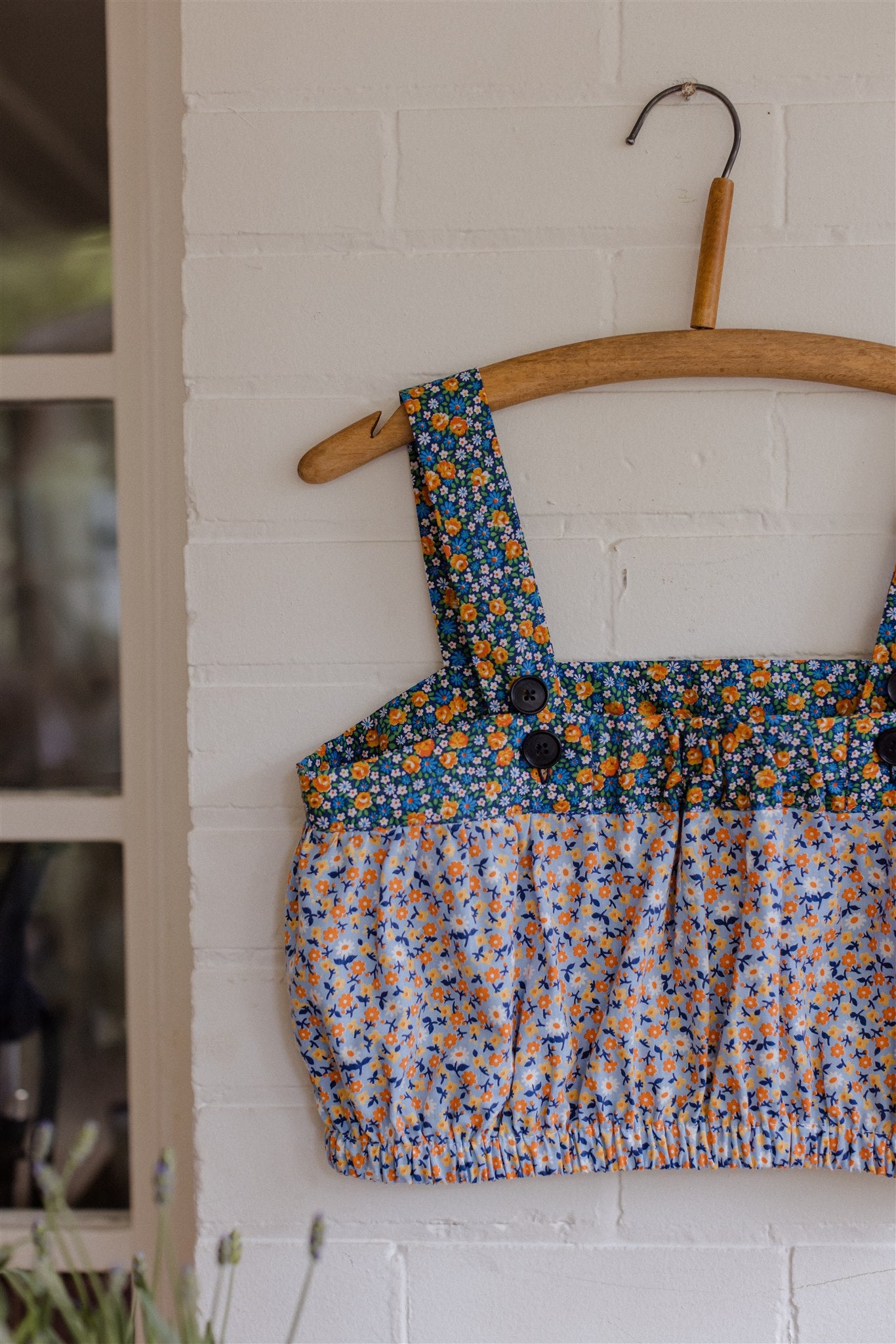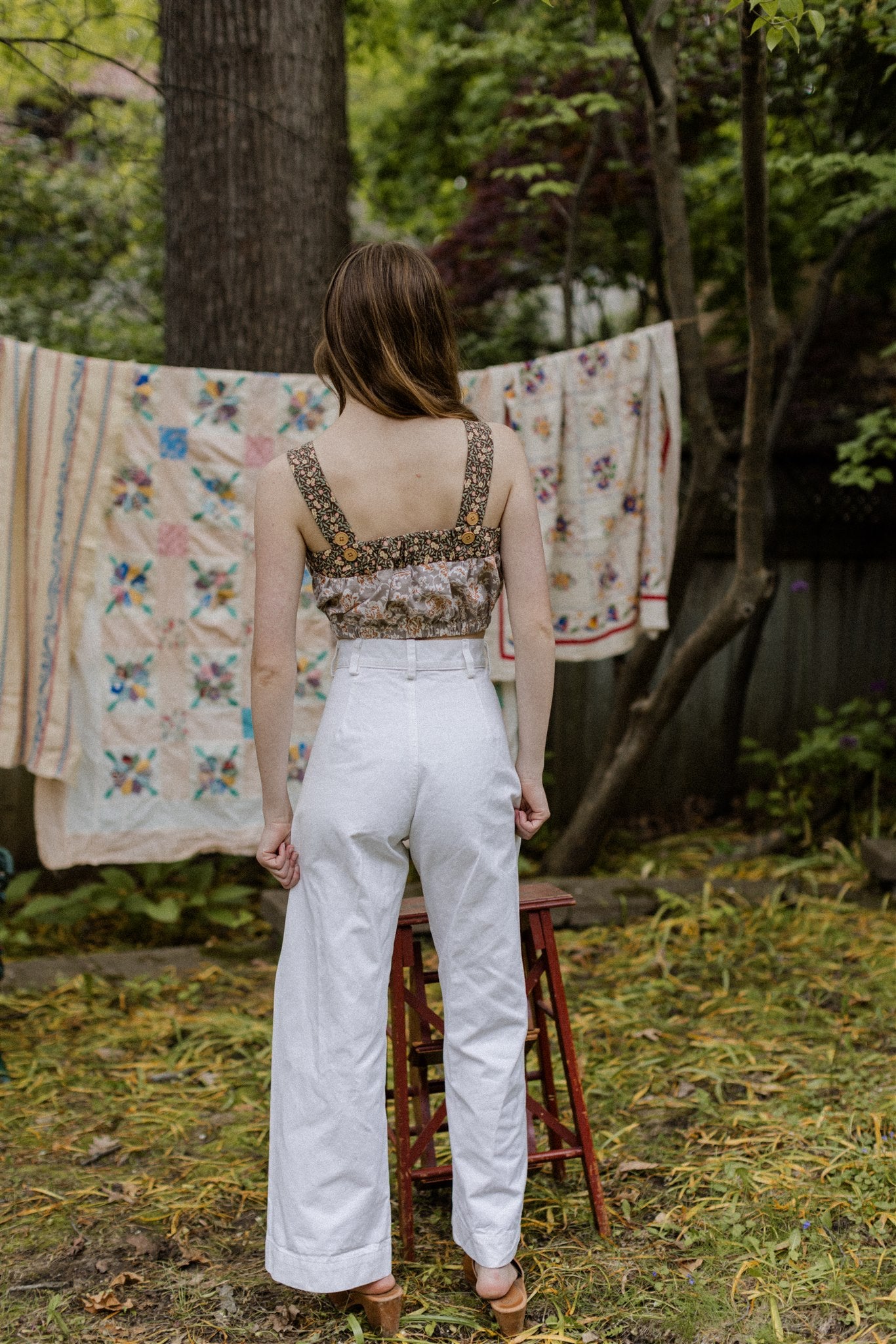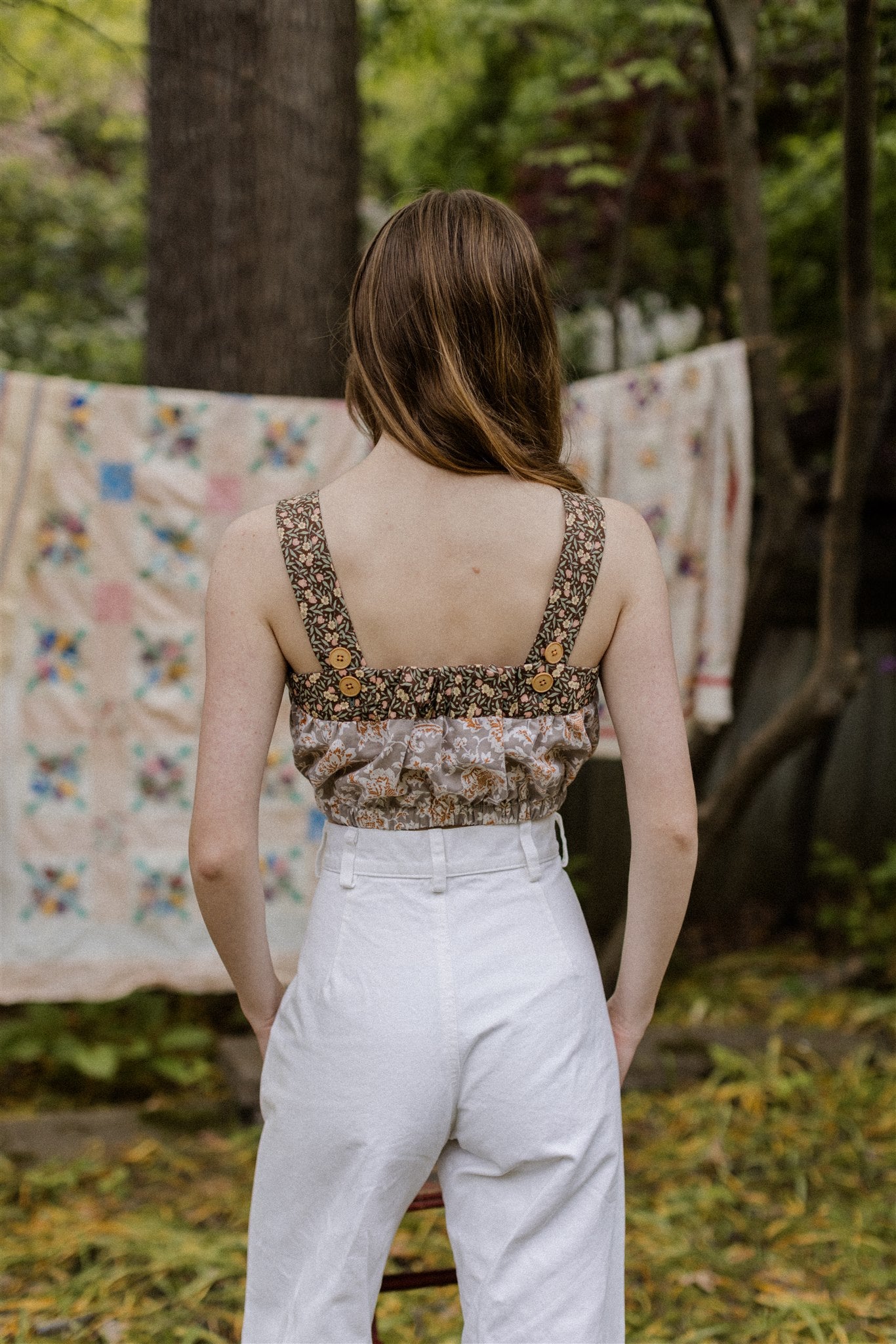 A cropped cut to pair with our Strawflower Skirt, high waisted bottoms and overalls.