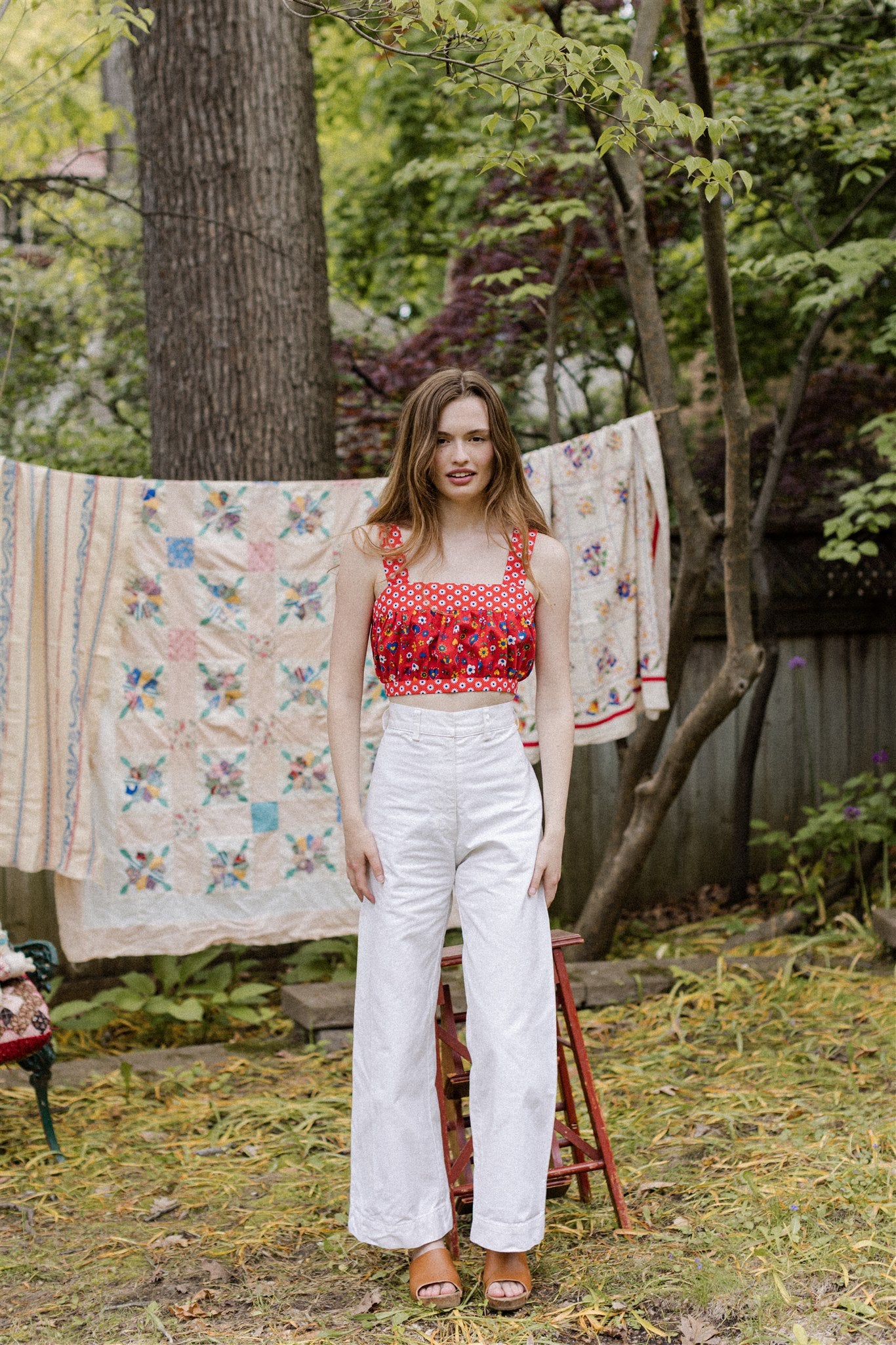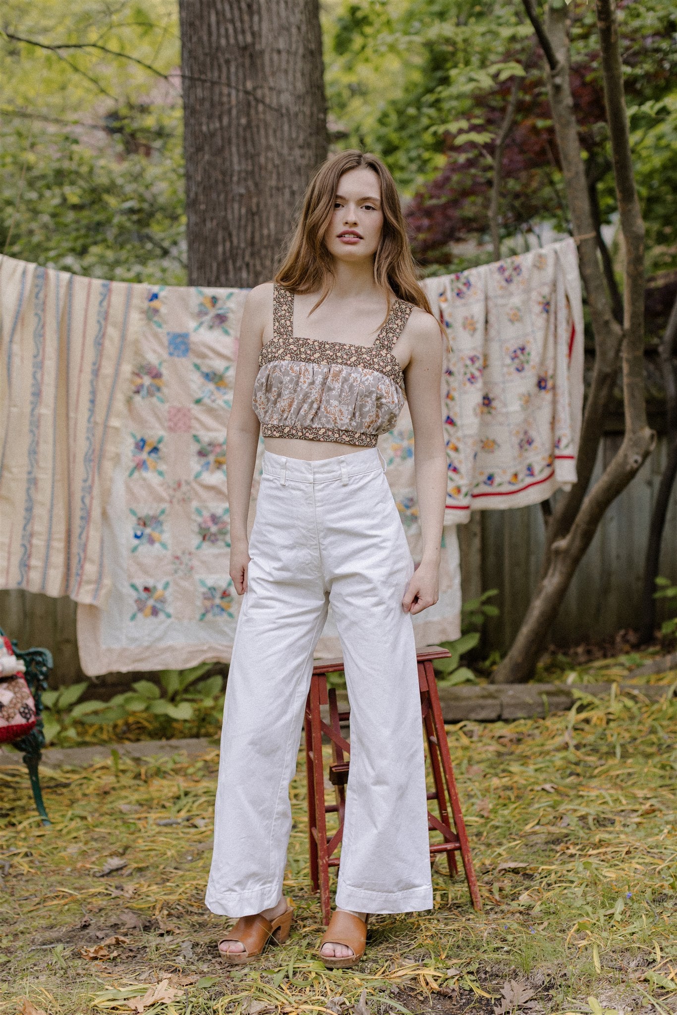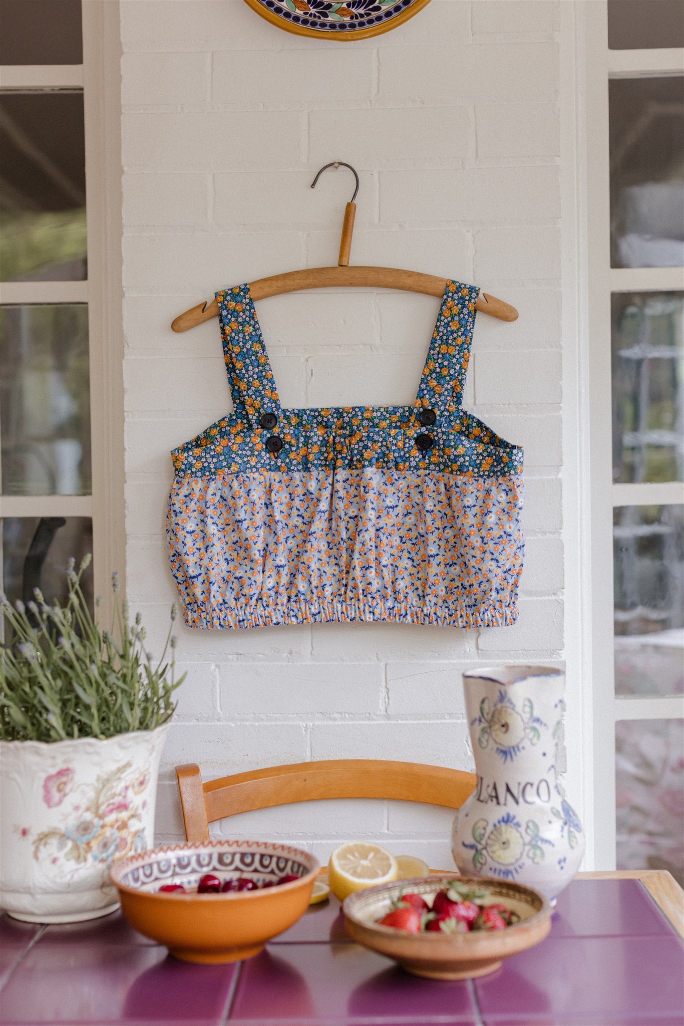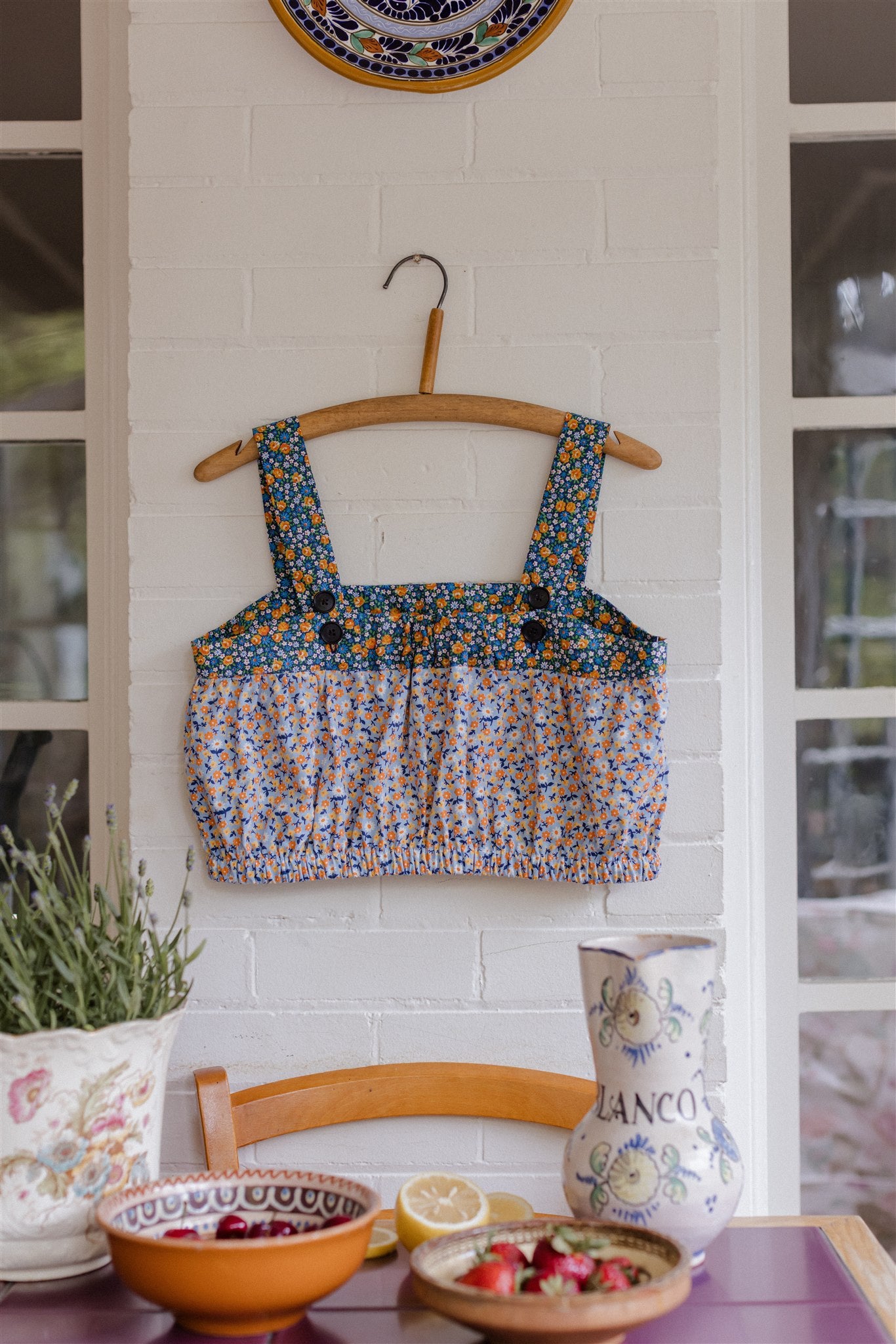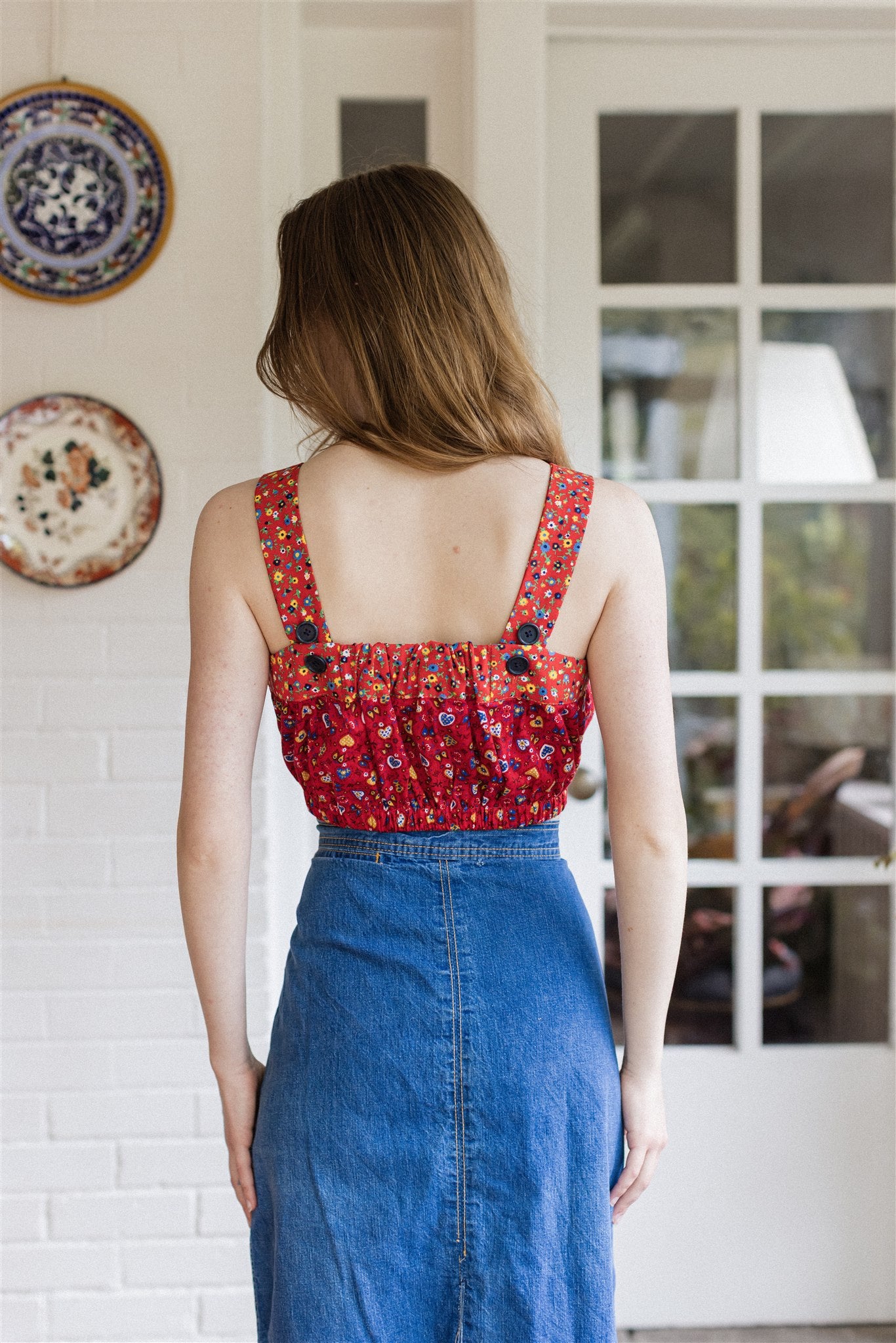 A cropped cut to pair with our Strawflower Skirt, high waisted bottoms and overalls.