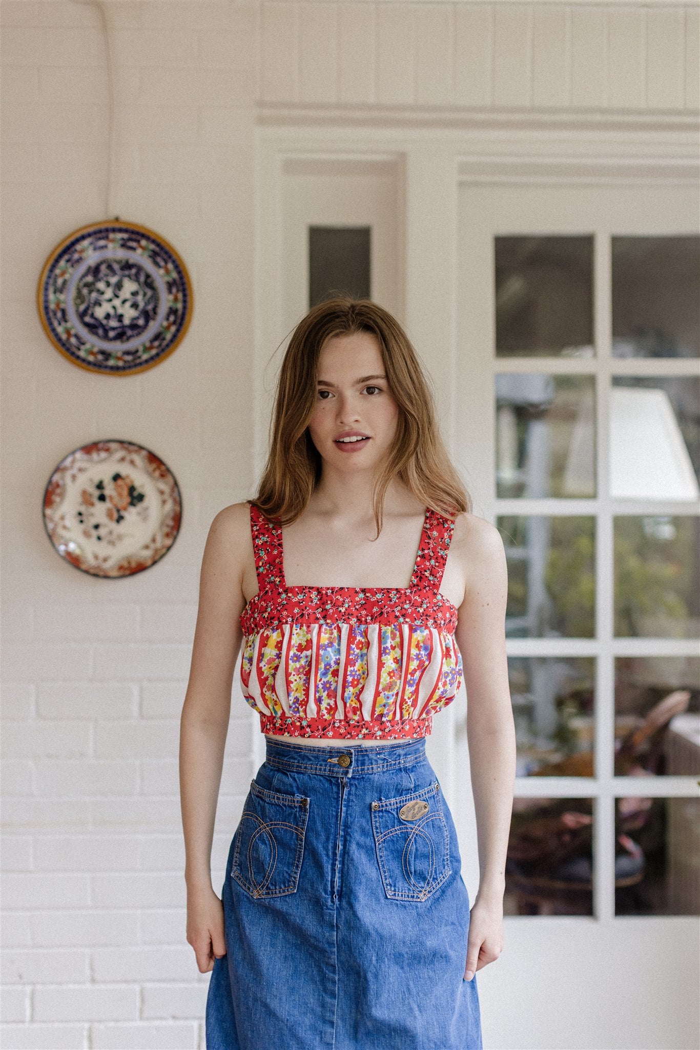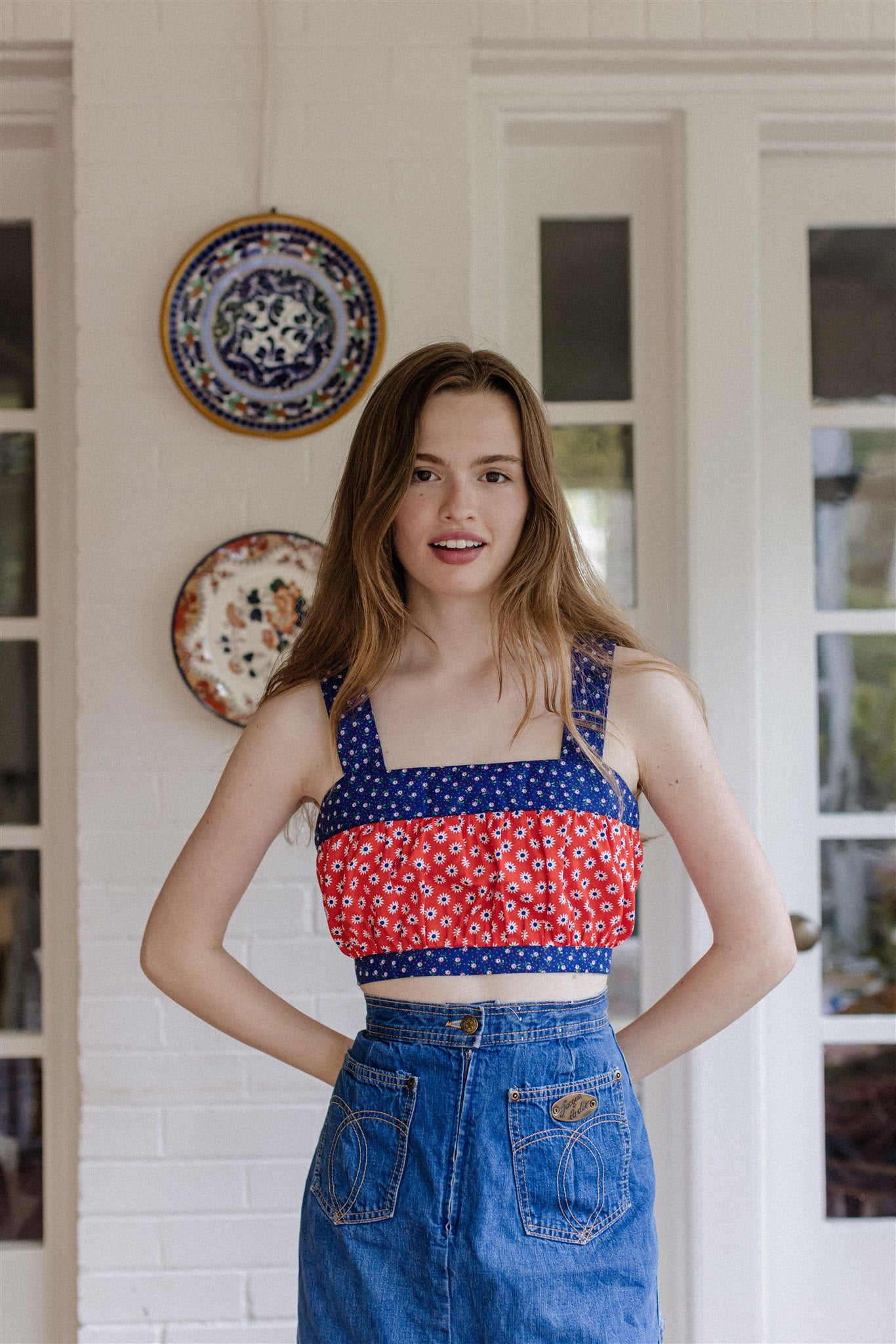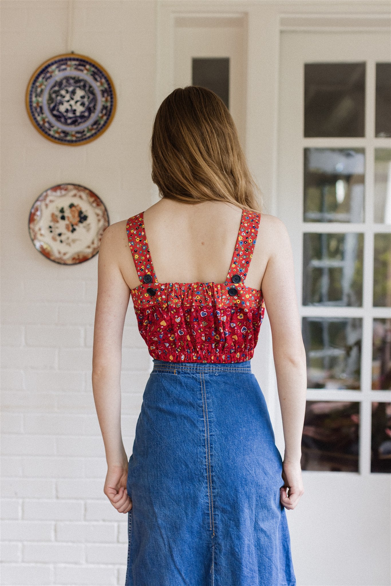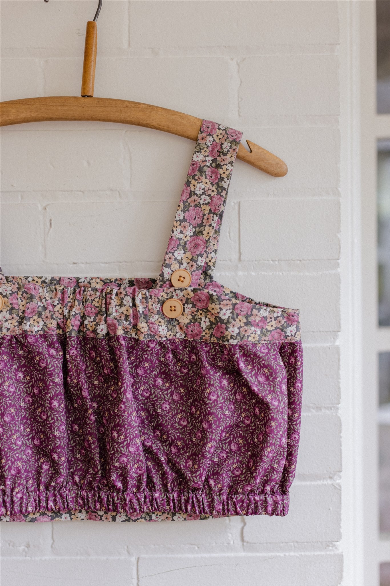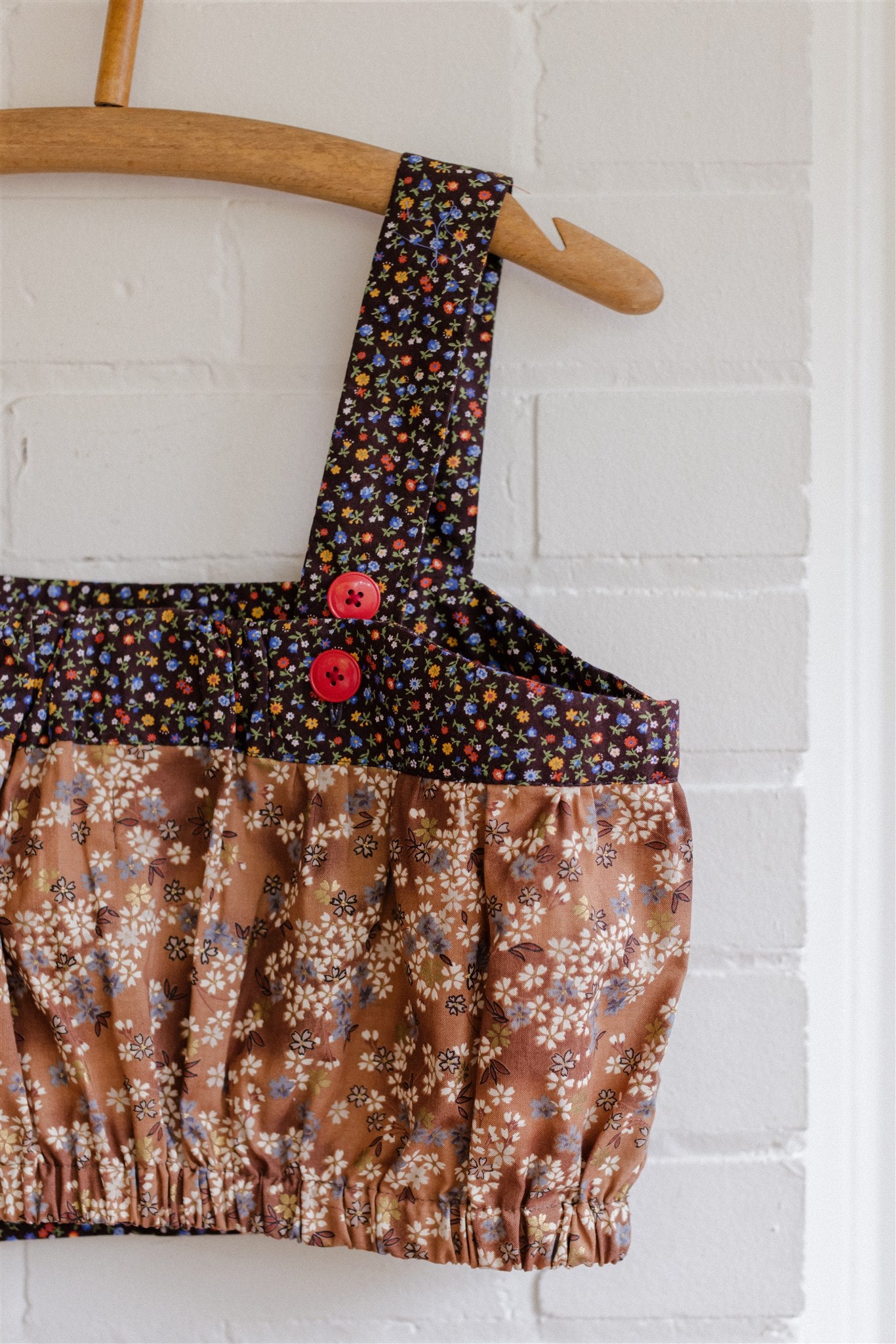 A cropped cut to pair with our Strawflower Skirt, high waisted bottoms and overalls.