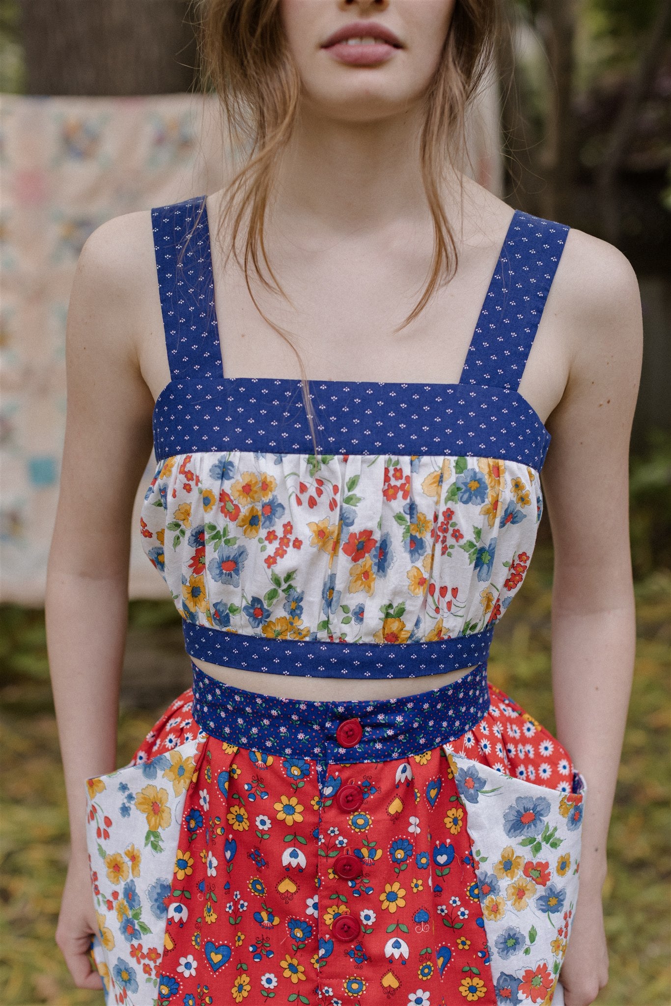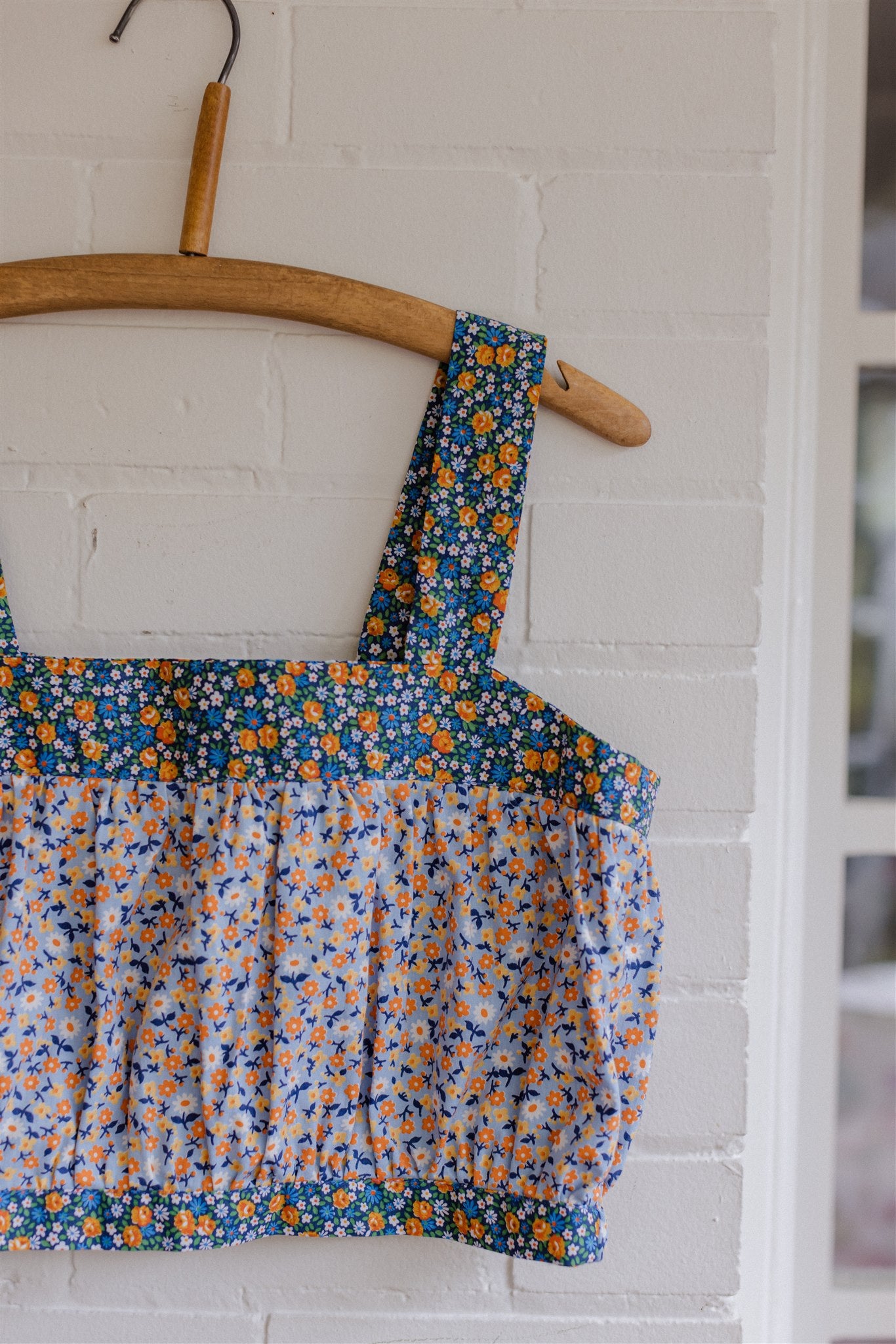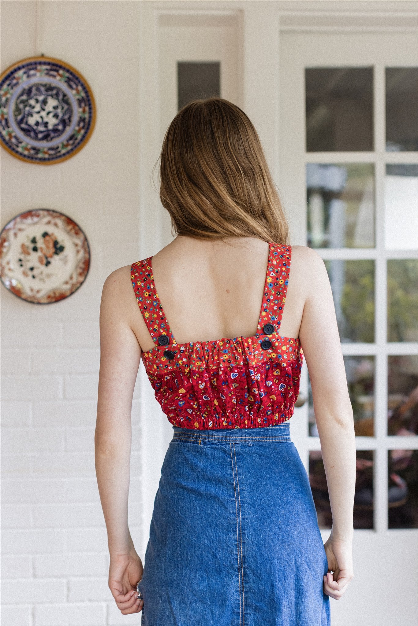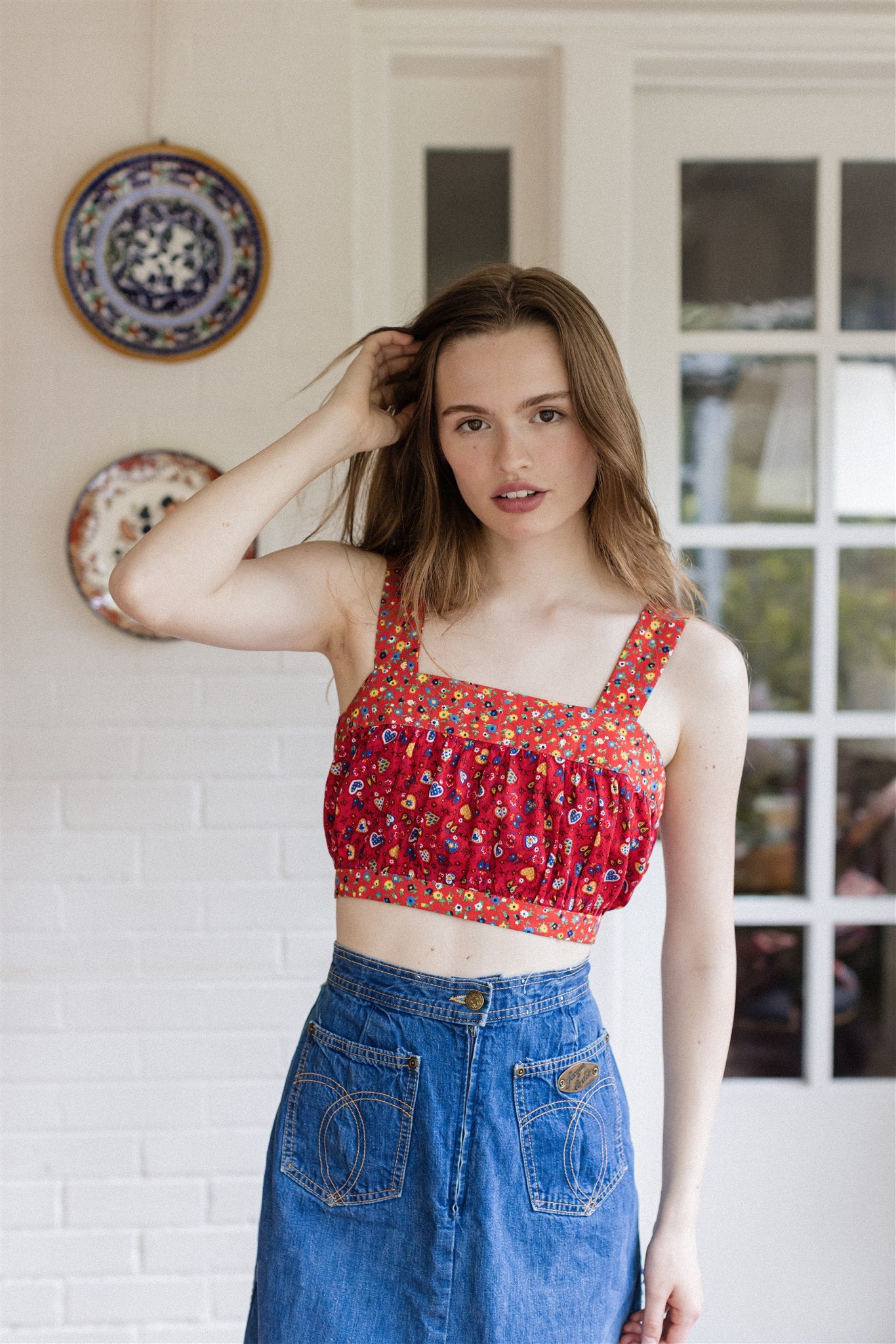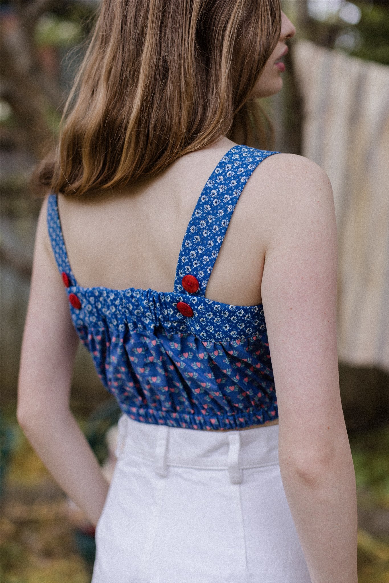 A cropped cut to pair with our Strawflower Skirt, high waisted bottoms and overalls.