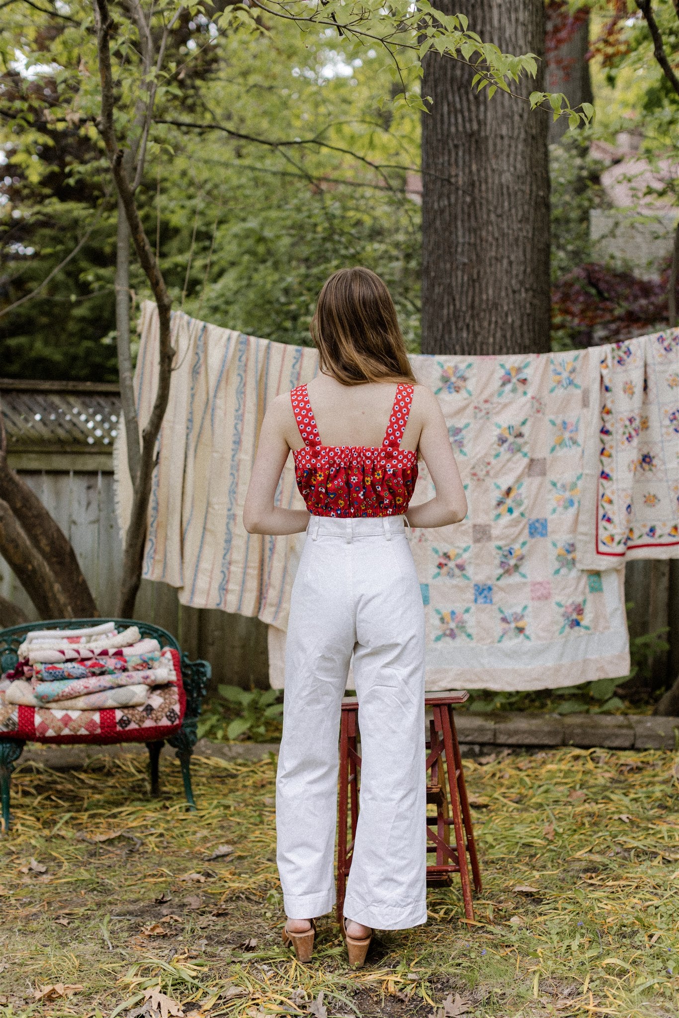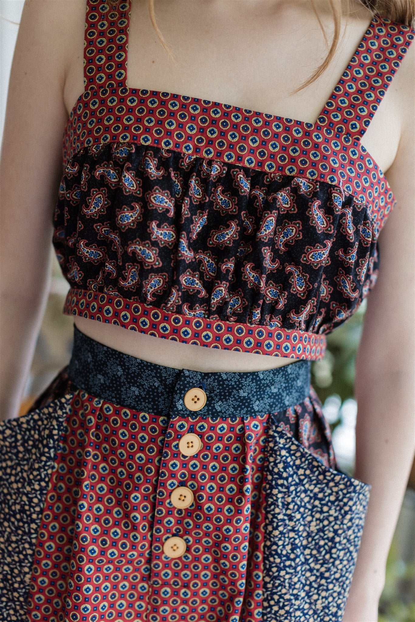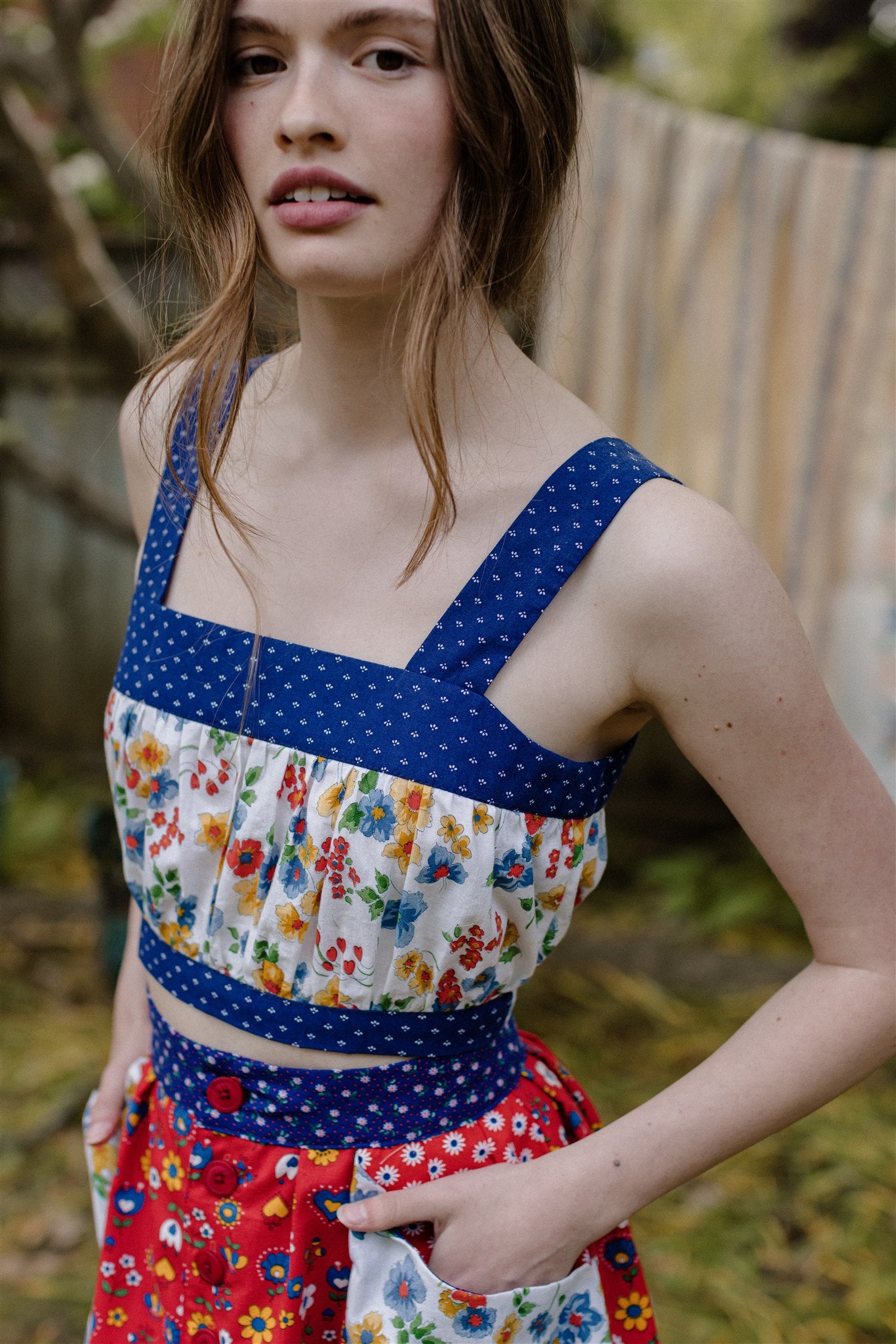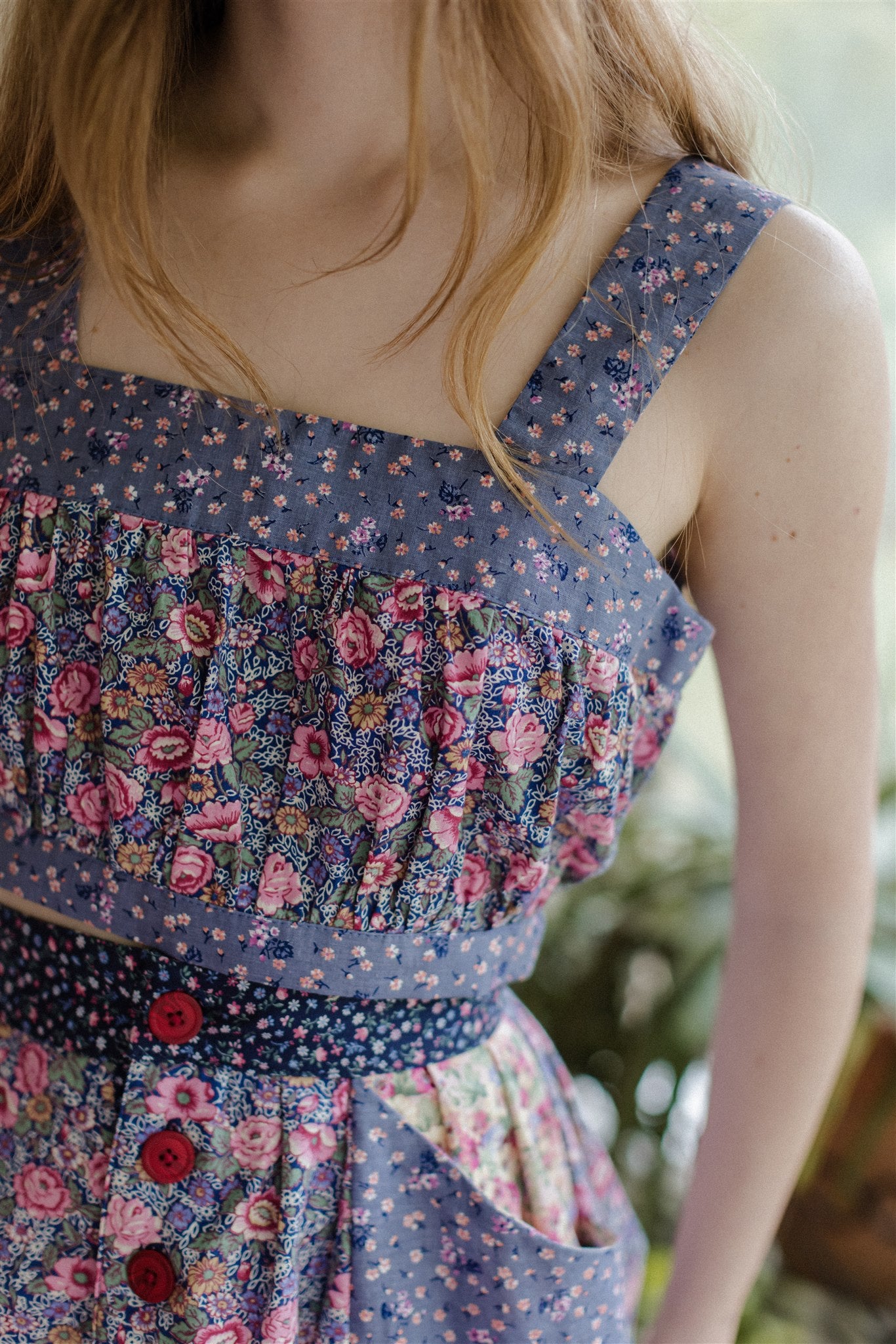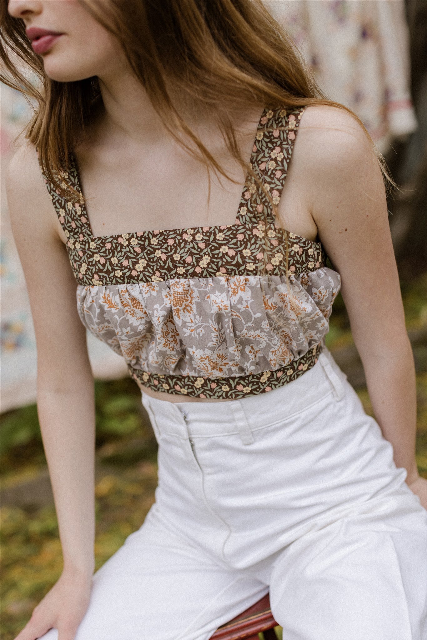 A cropped cut to pair with our Strawflower Skirt, high waisted bottoms and overalls.