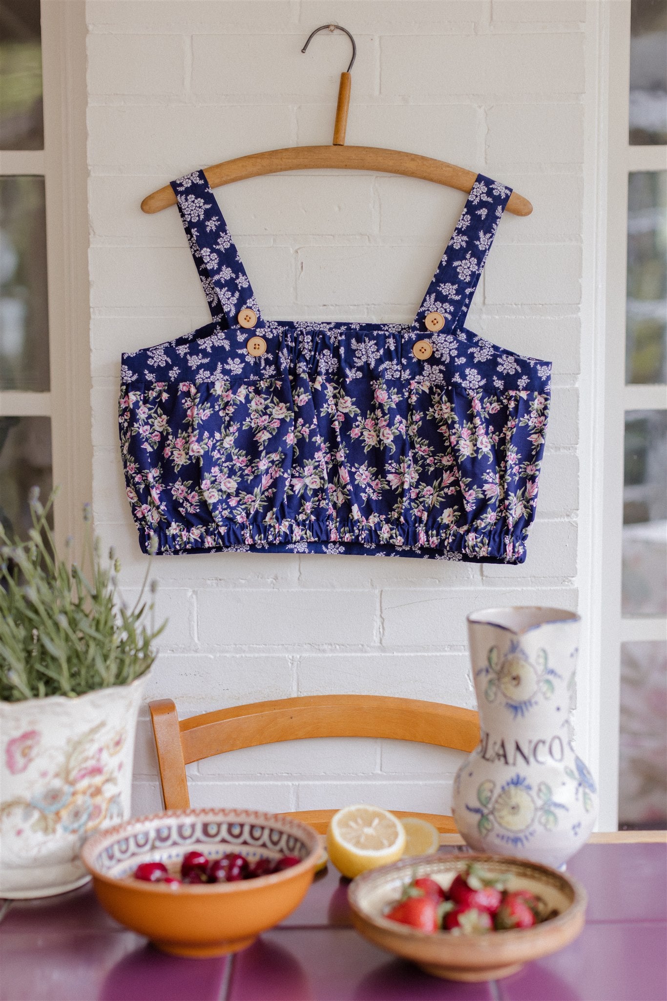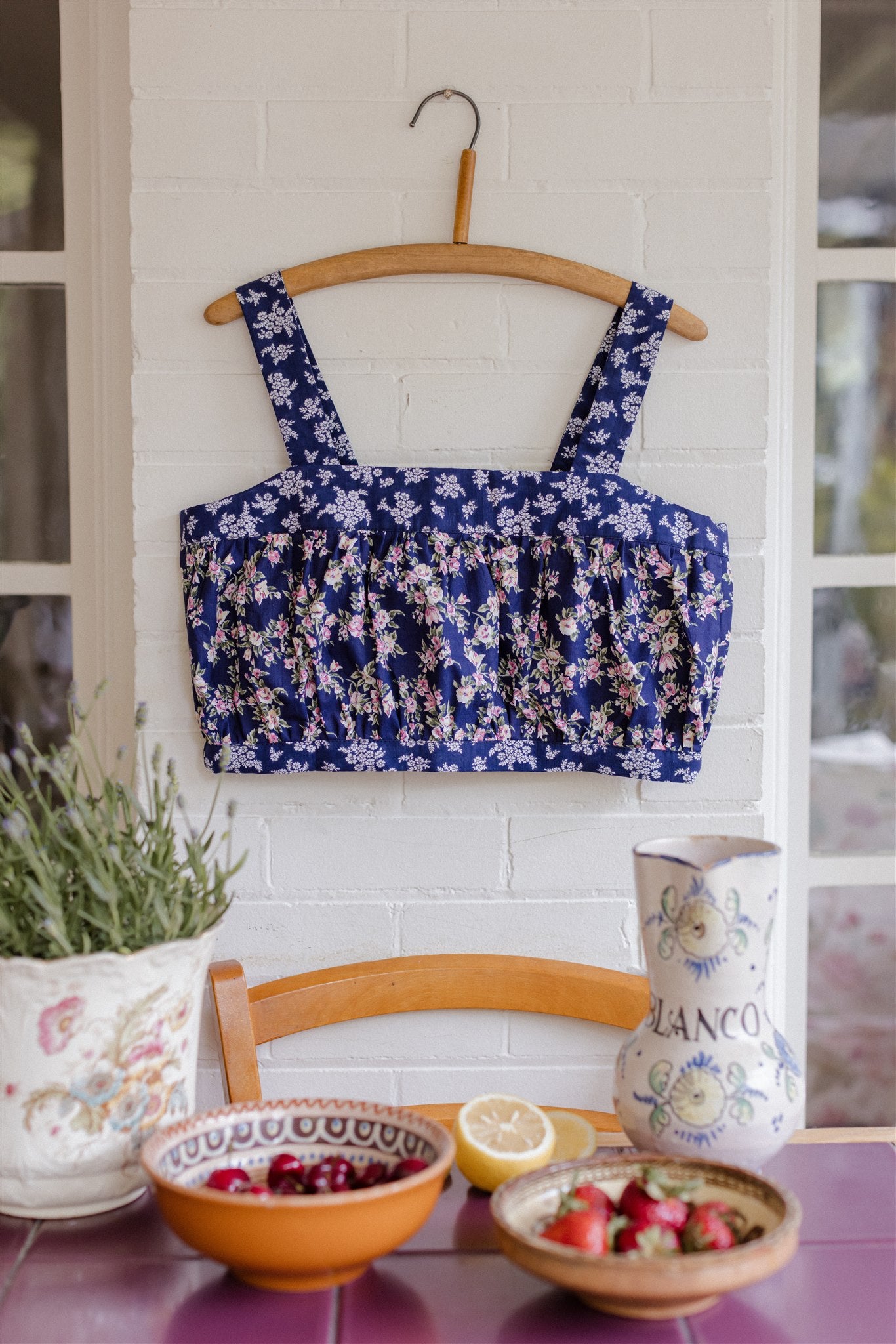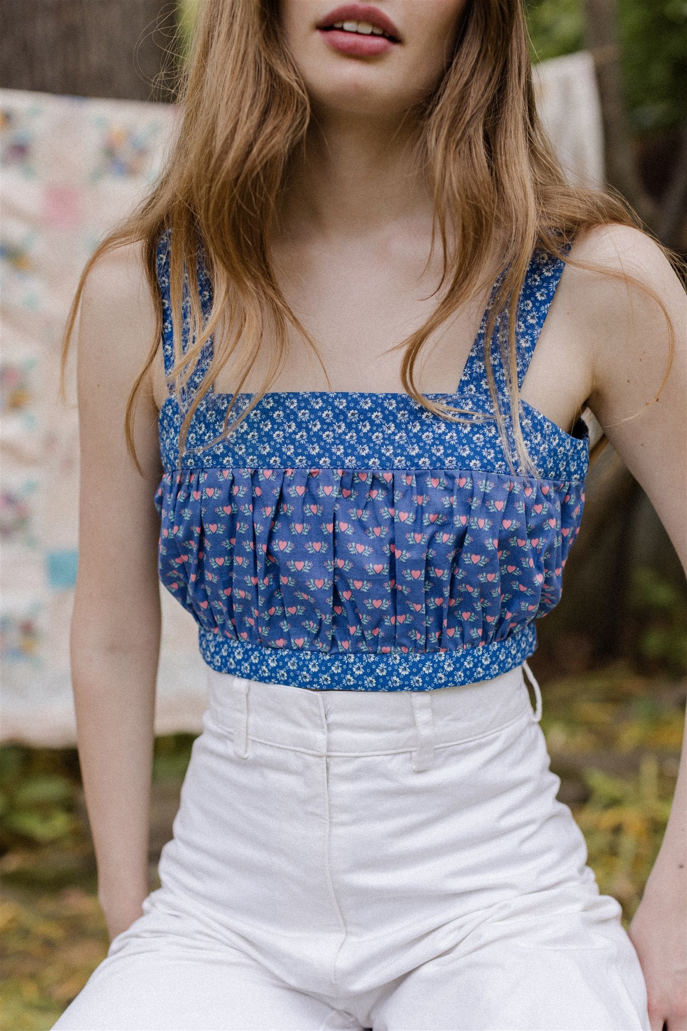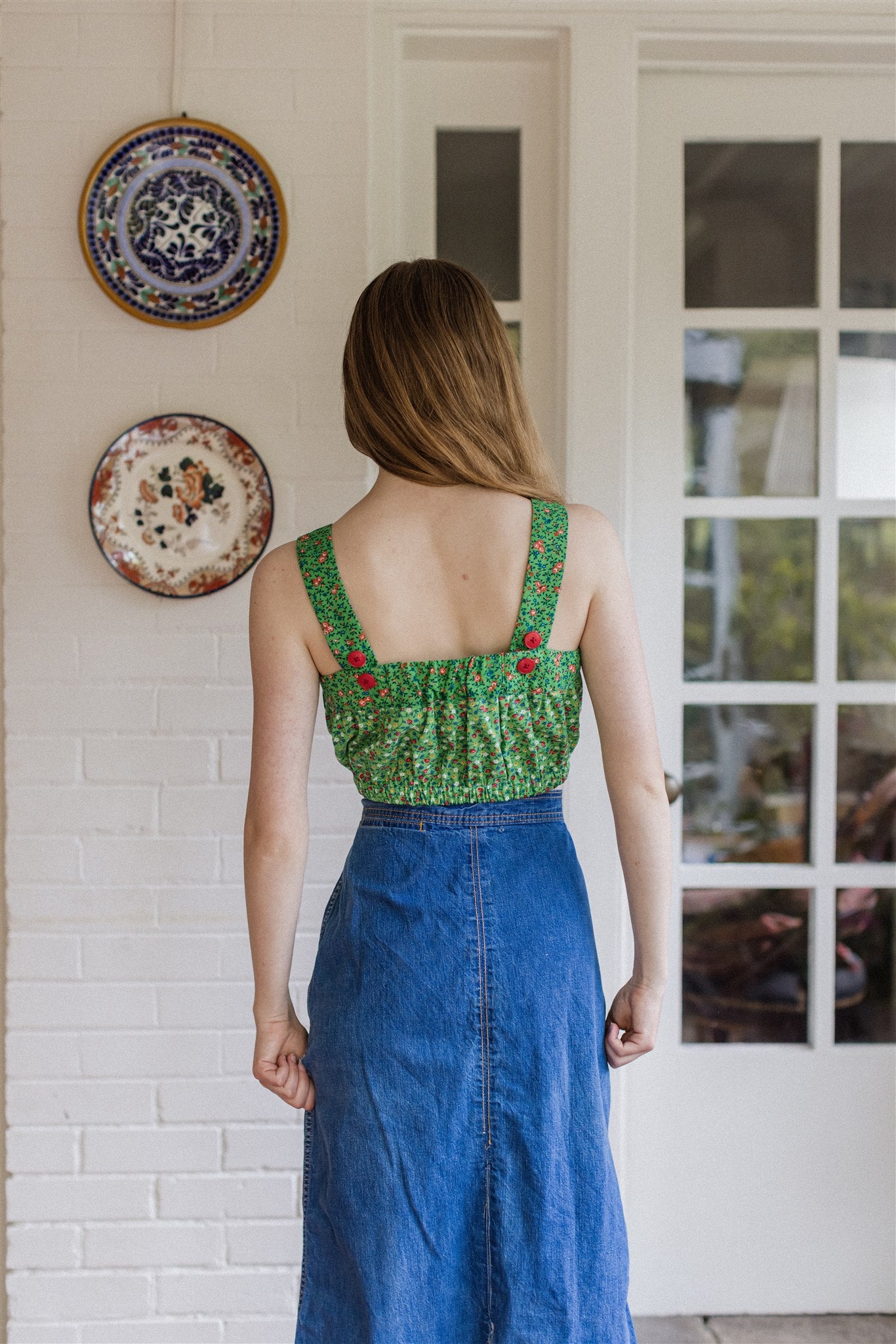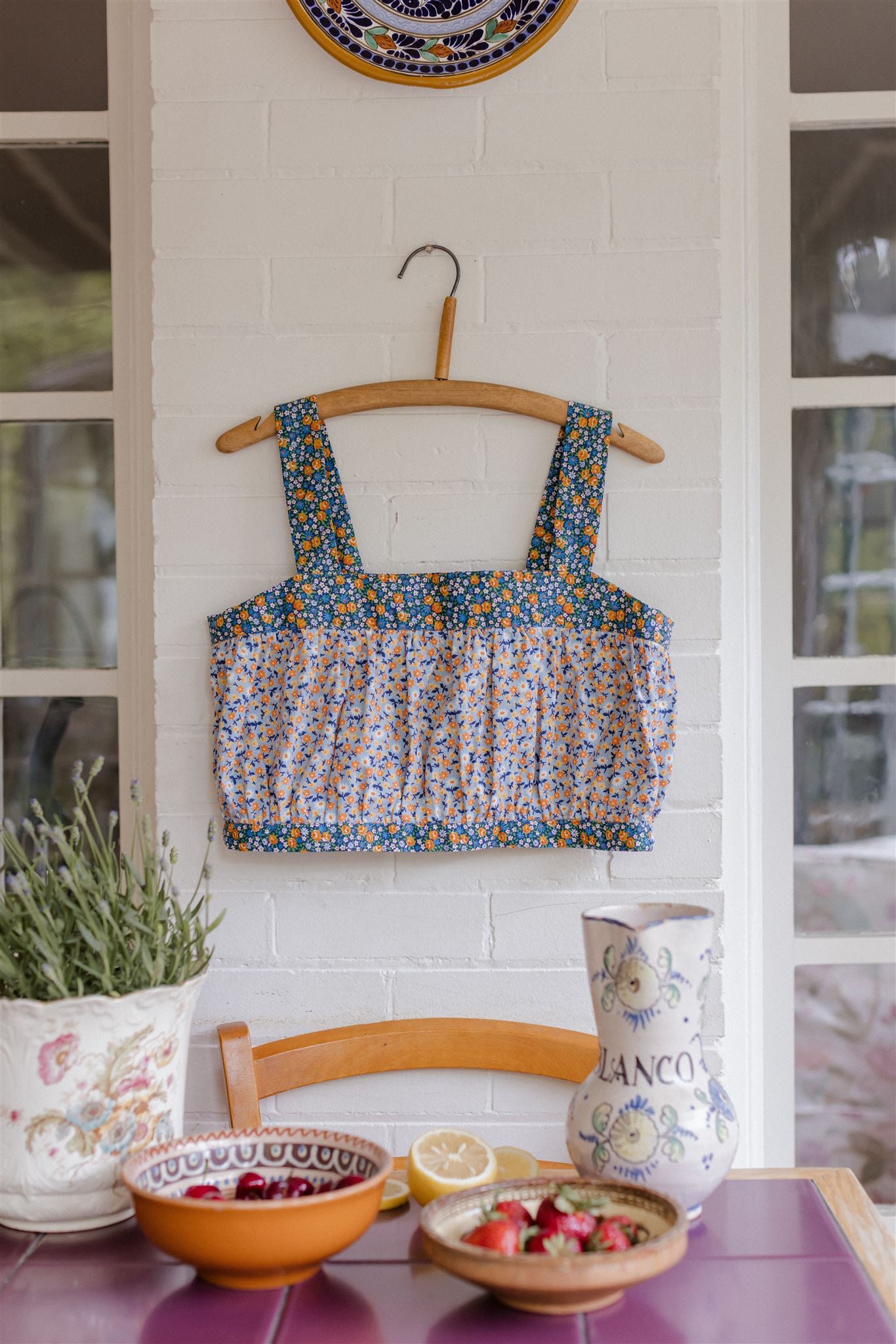 A cropped cut to pair with our Strawflower Skirt, high waisted bottoms and overalls.