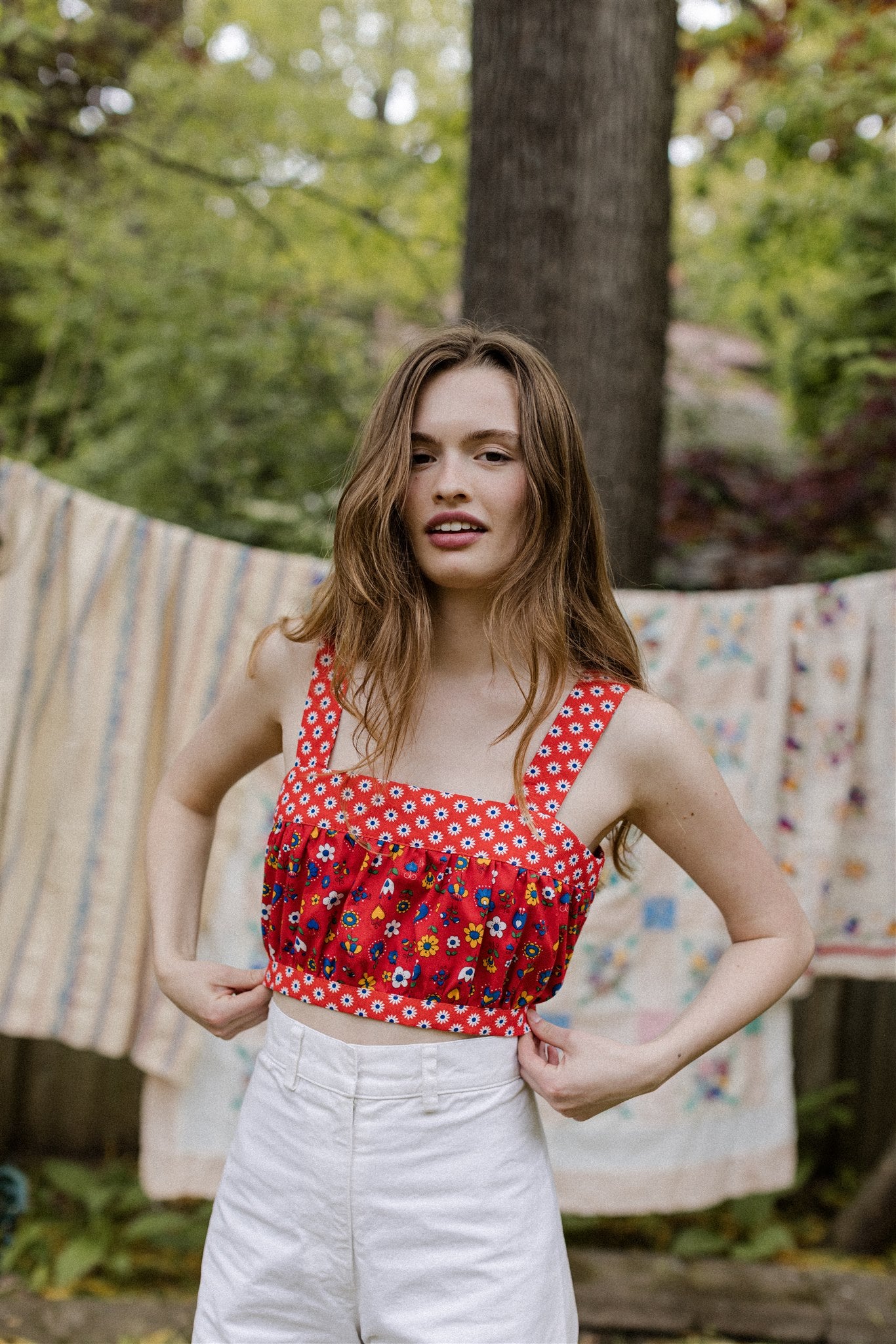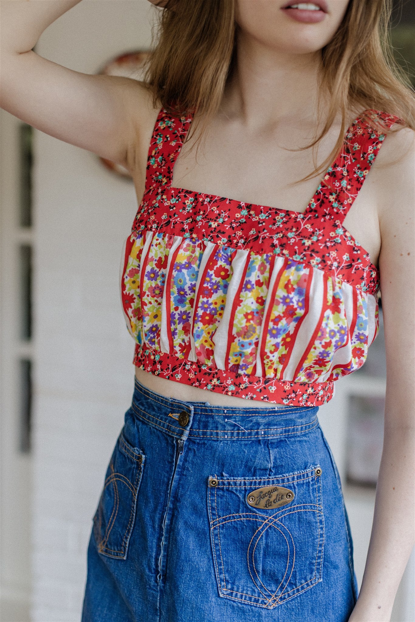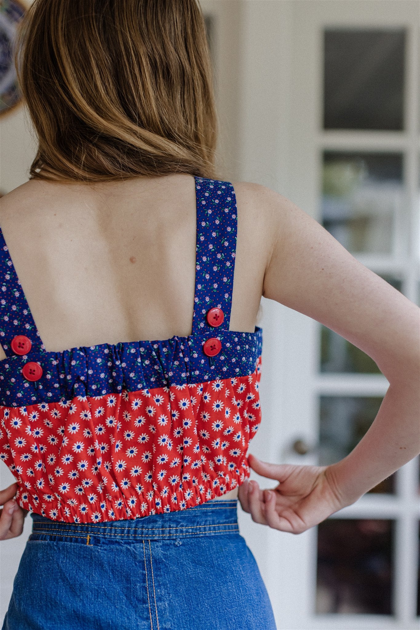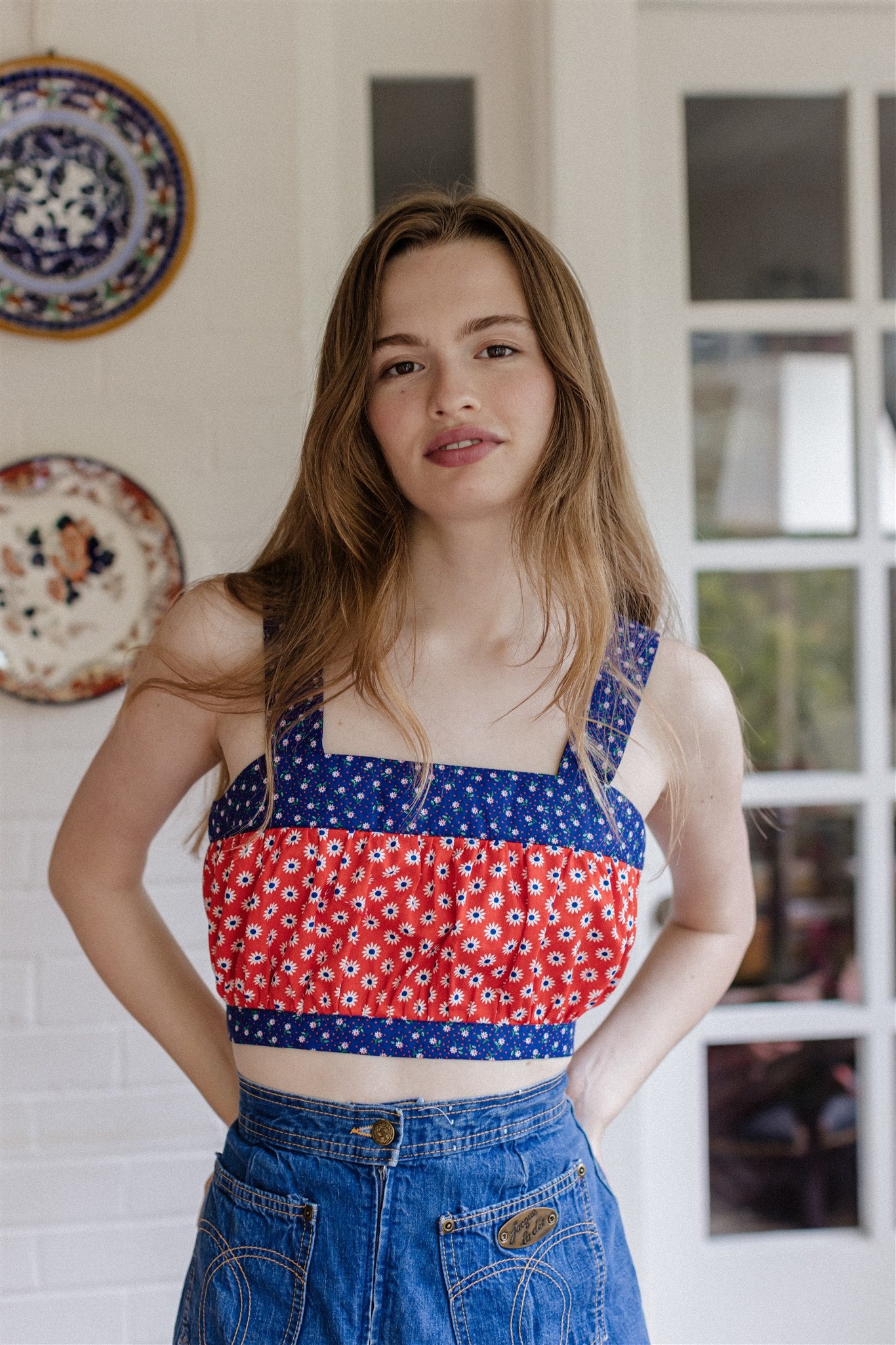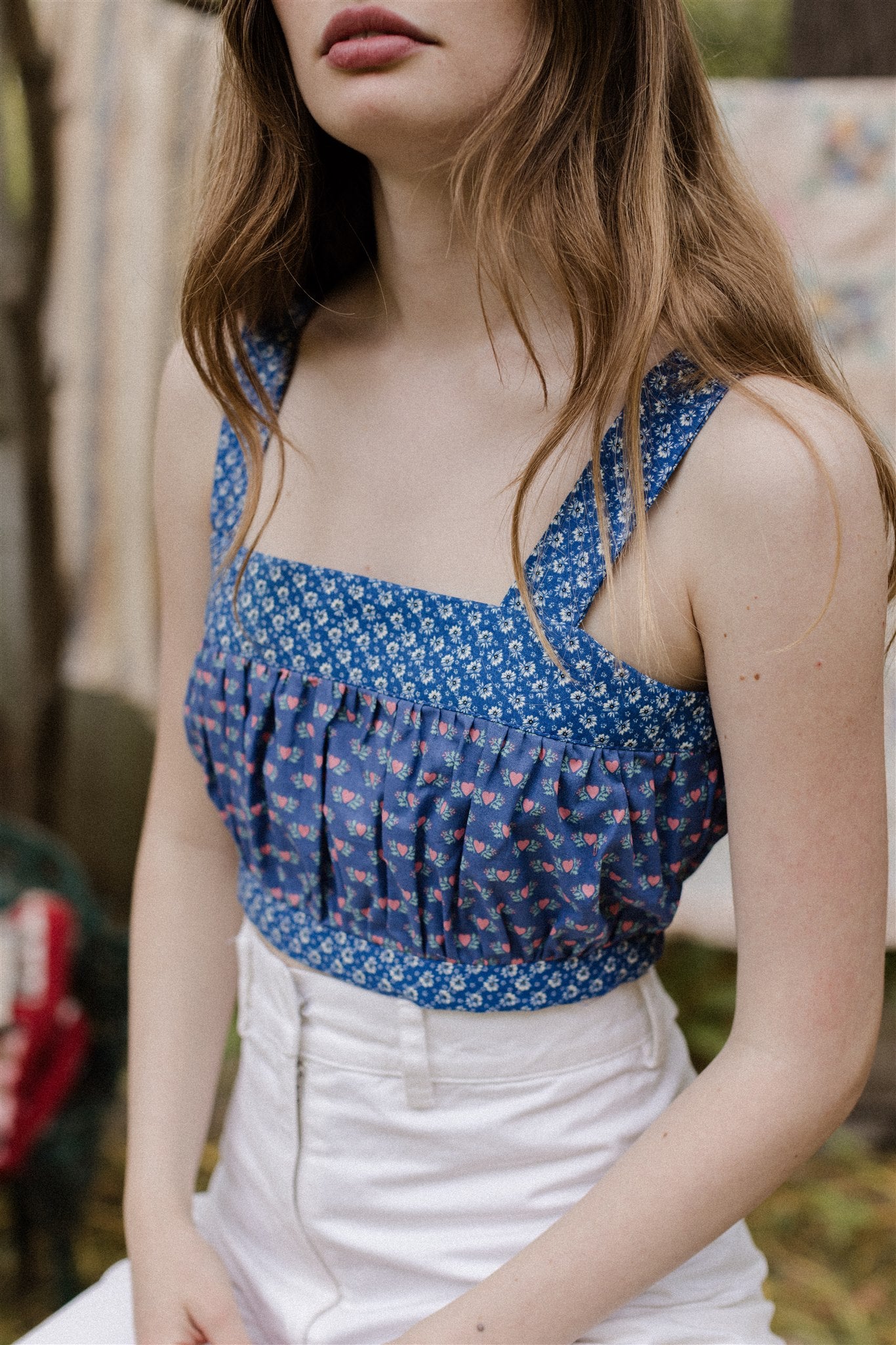 A cropped cut to pair with our Strawflower Skirt, high waisted bottoms and overalls.