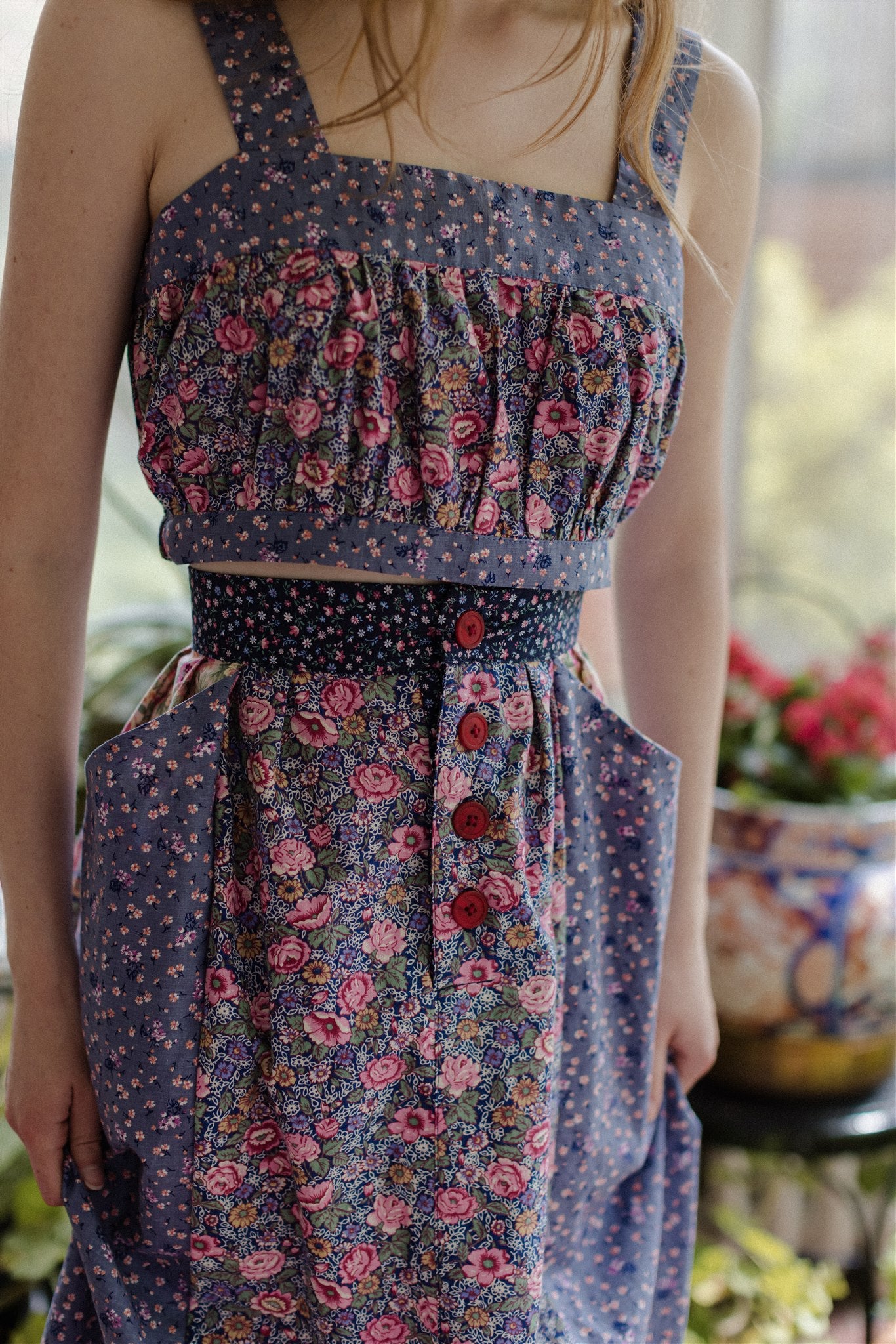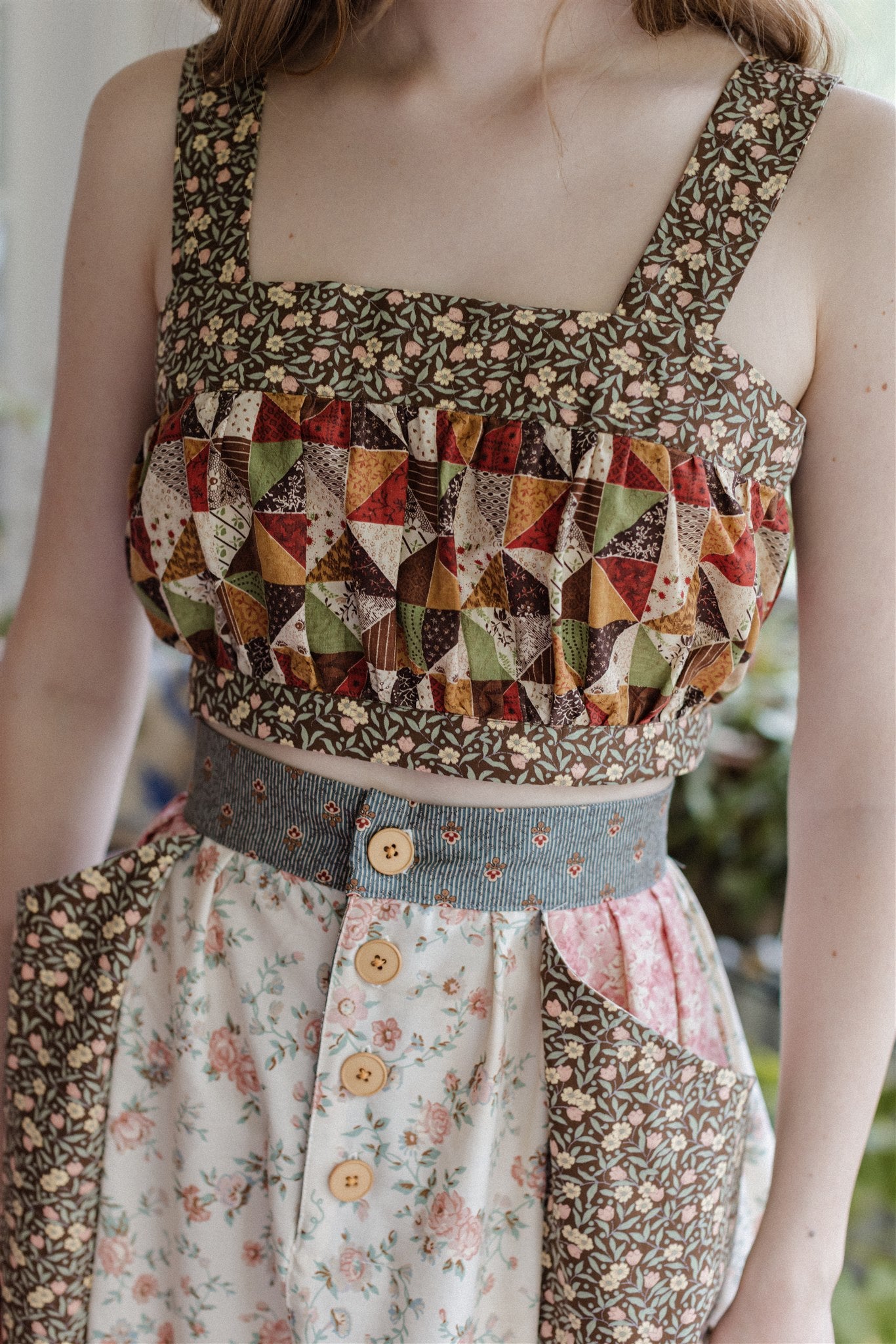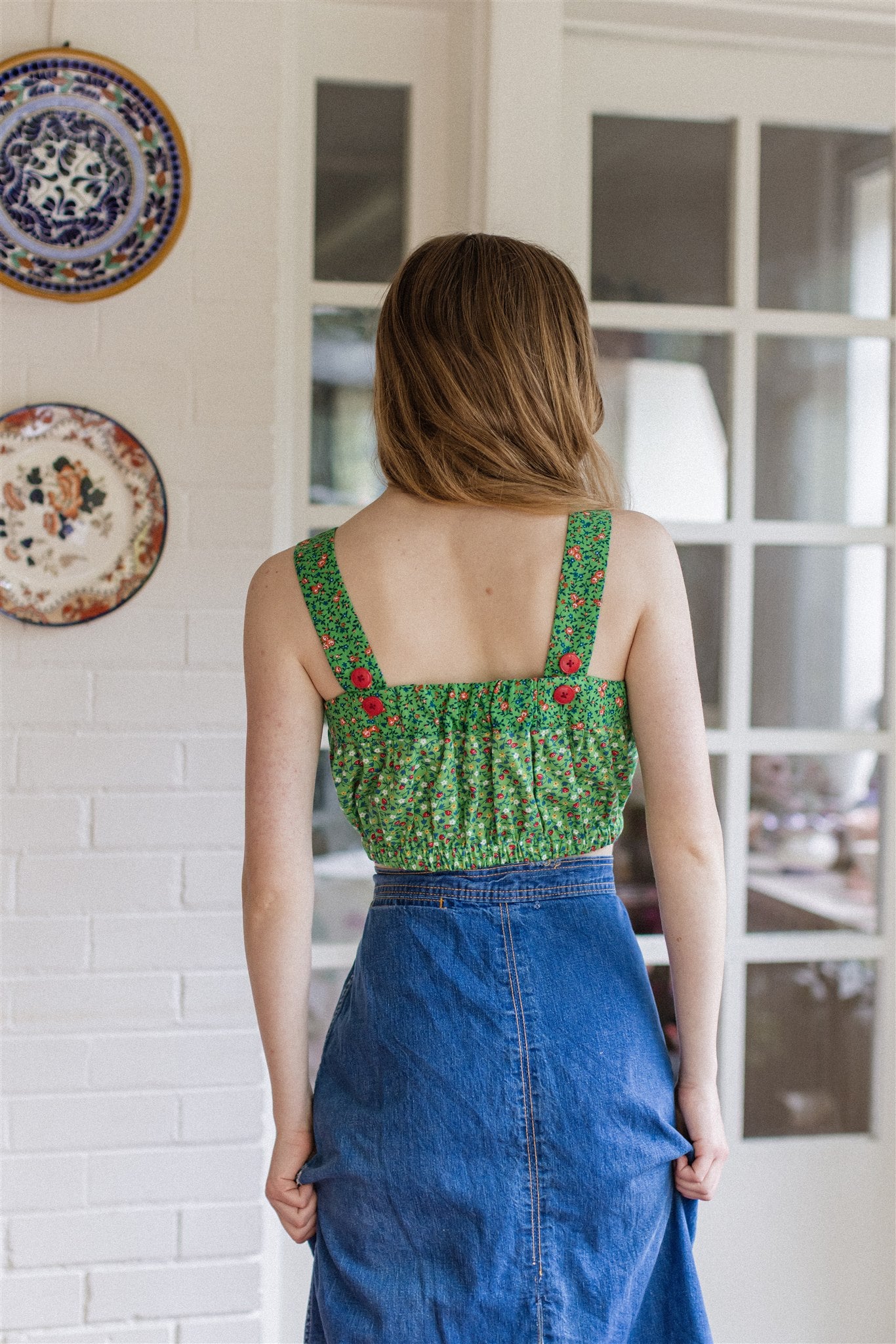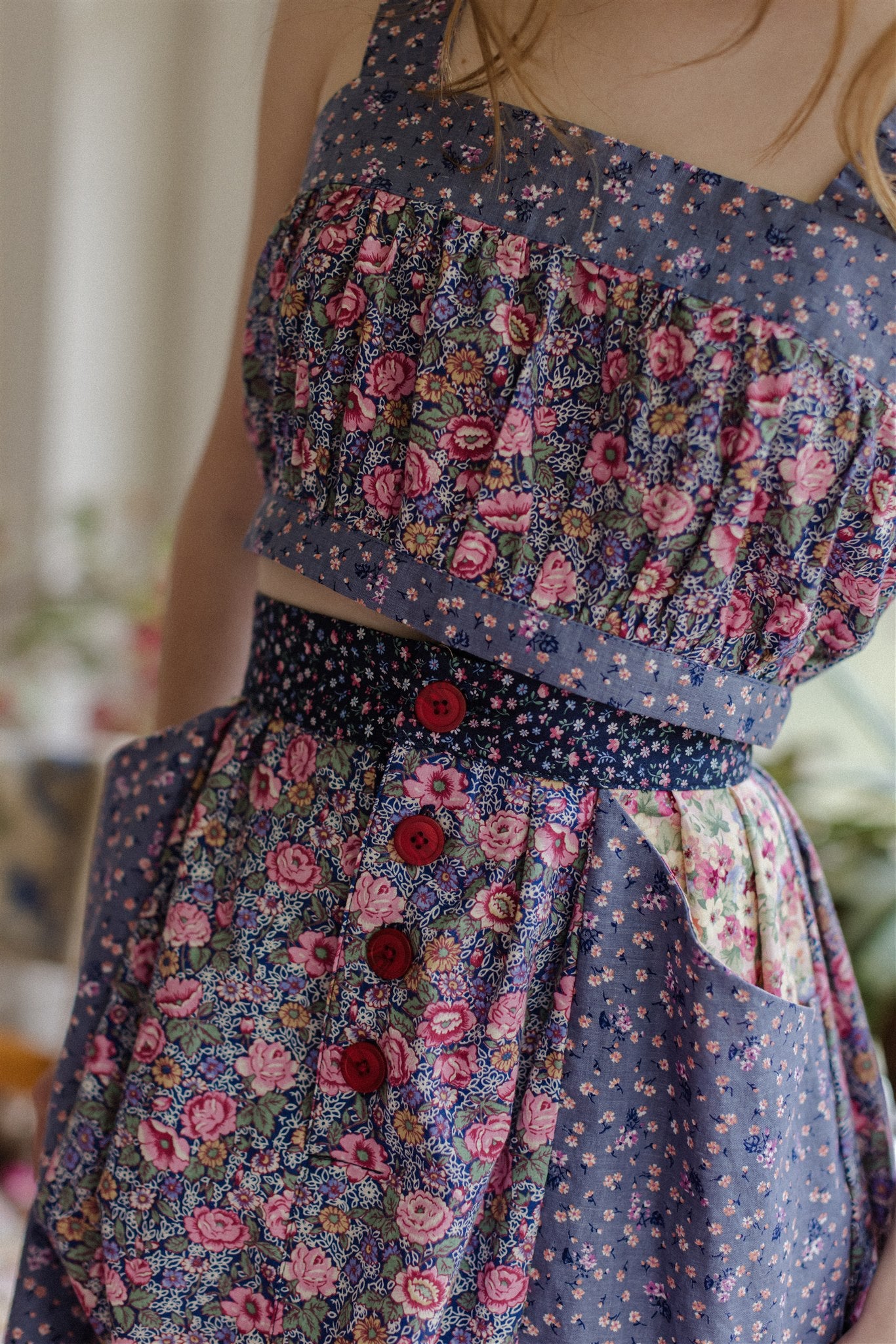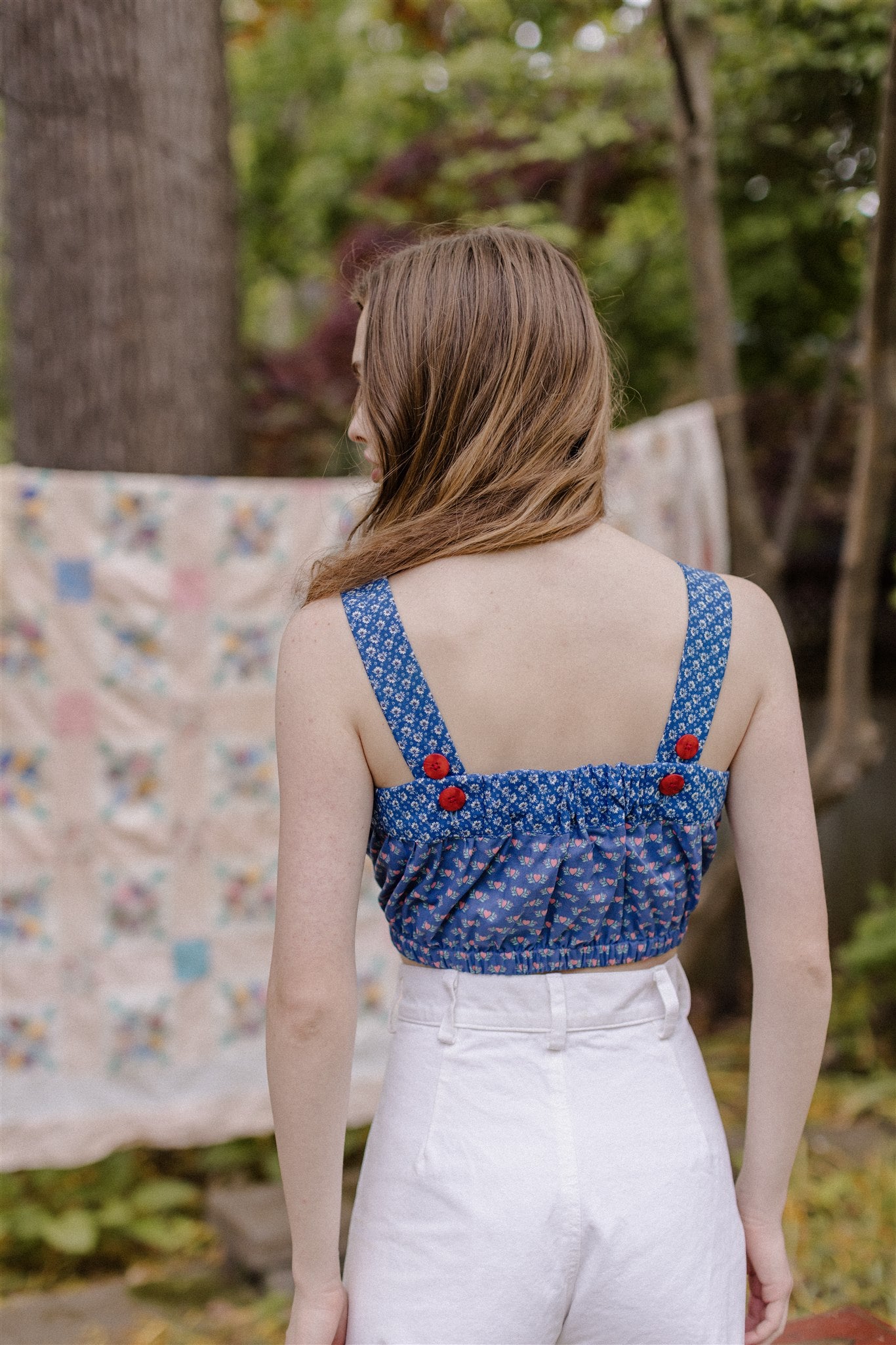 A cropped cut to pair with our Strawflower Skirt, high waisted bottoms and overalls.