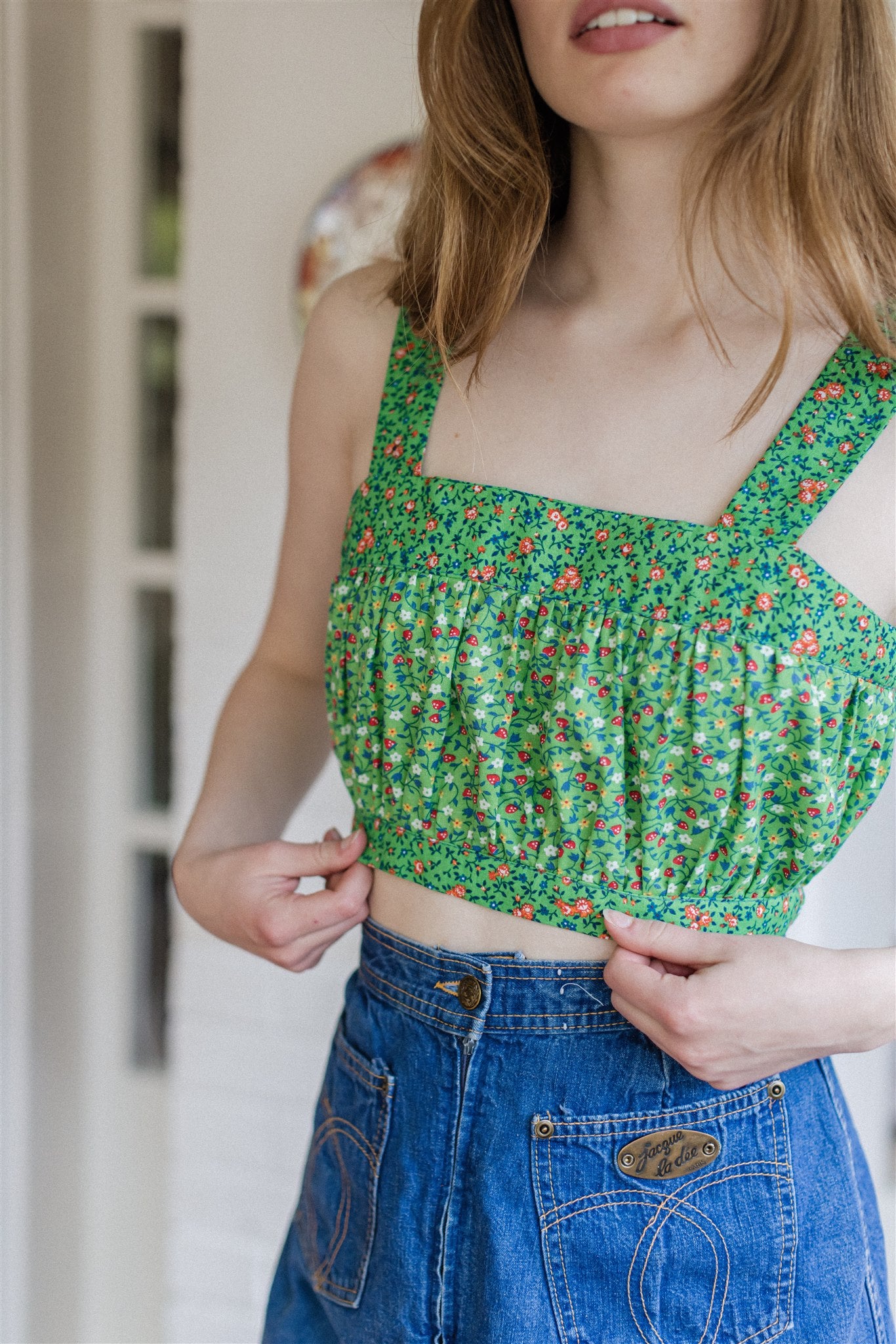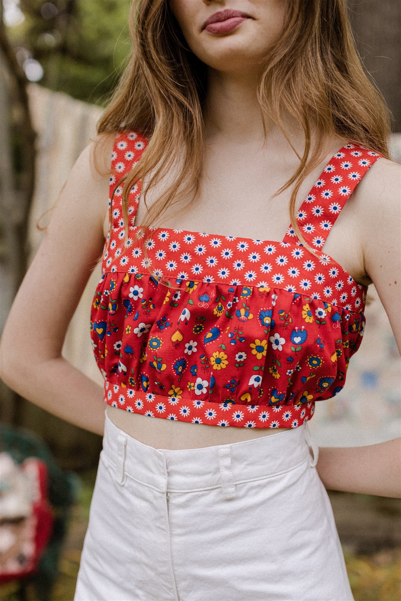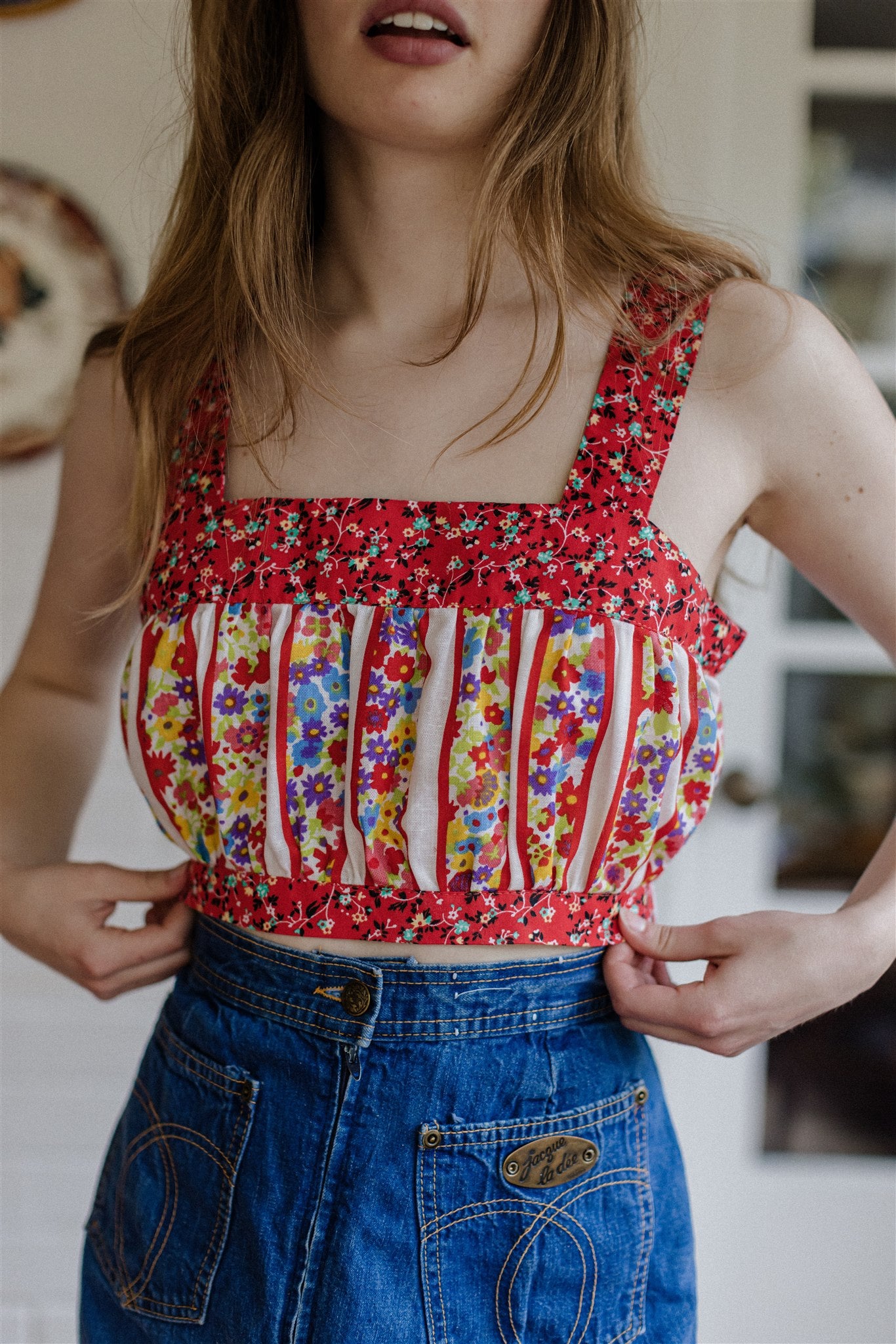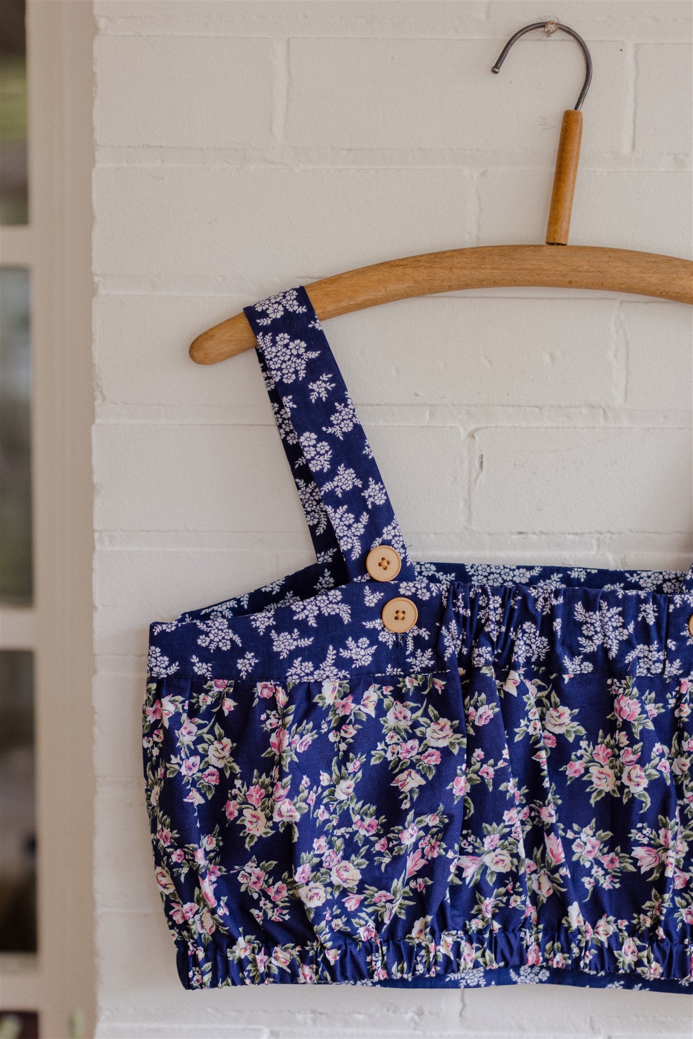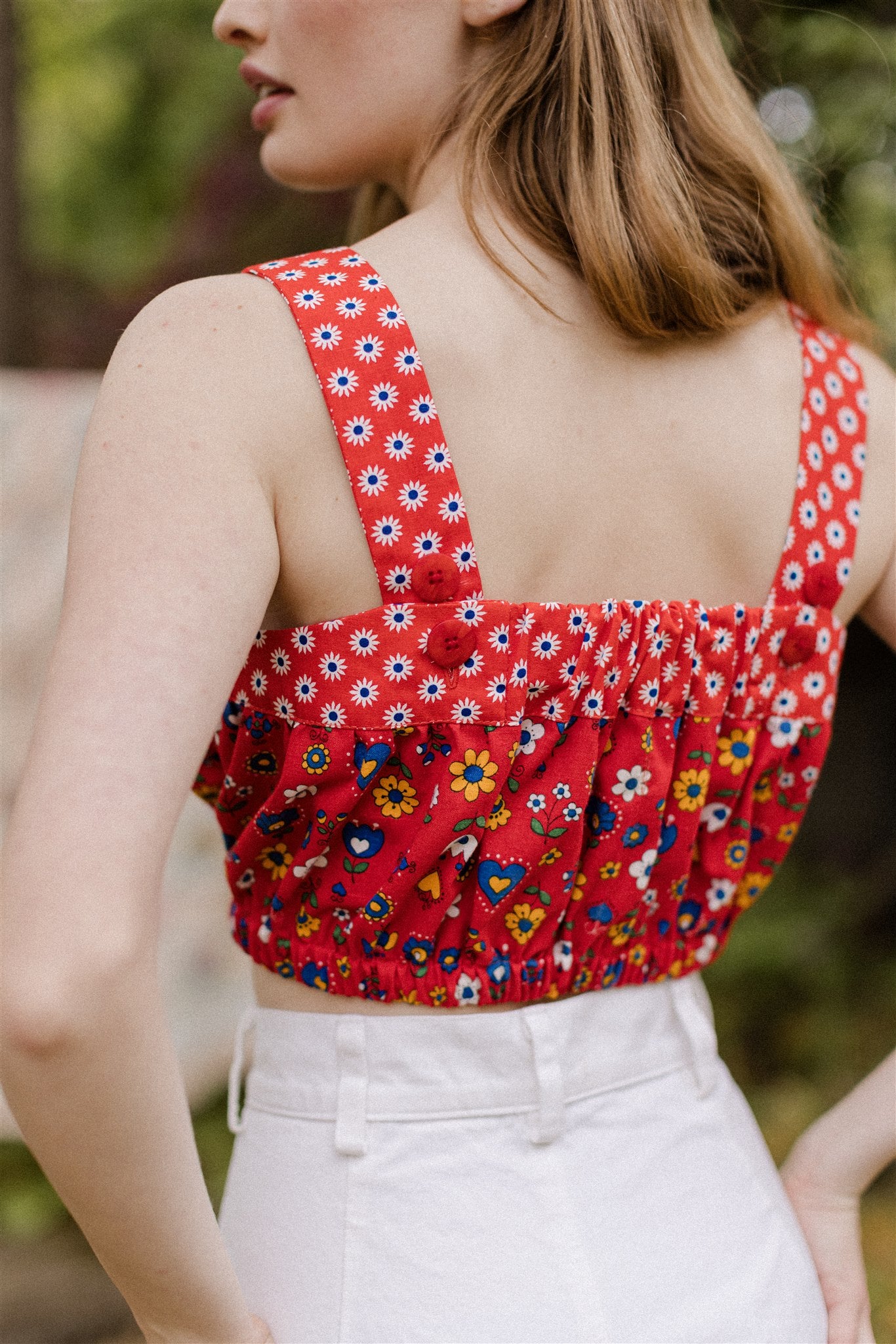 A cropped cut to pair with our Strawflower Skirt, high waisted bottoms and overalls.