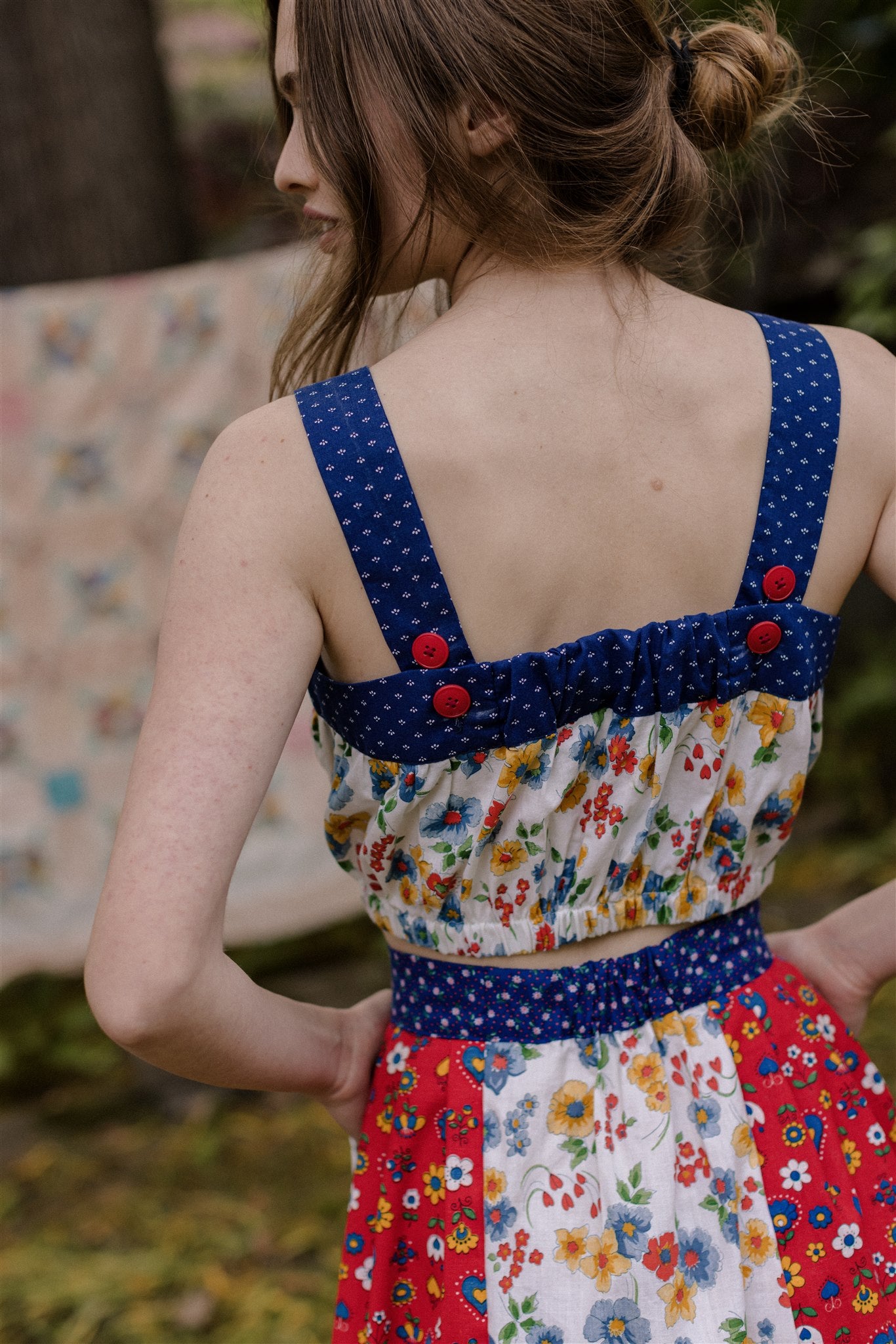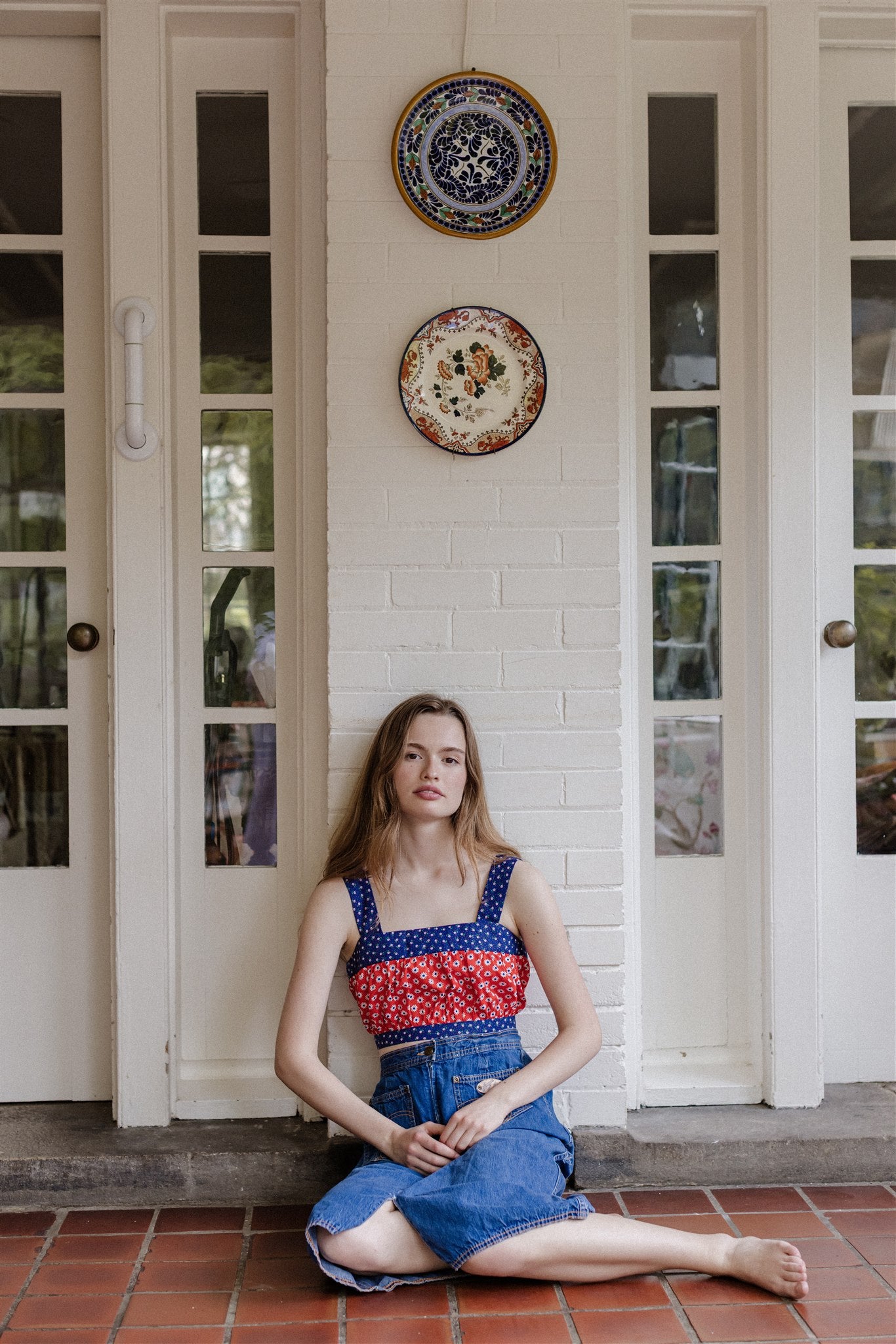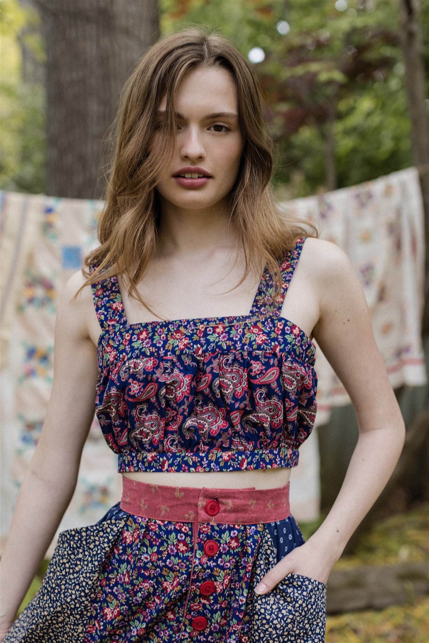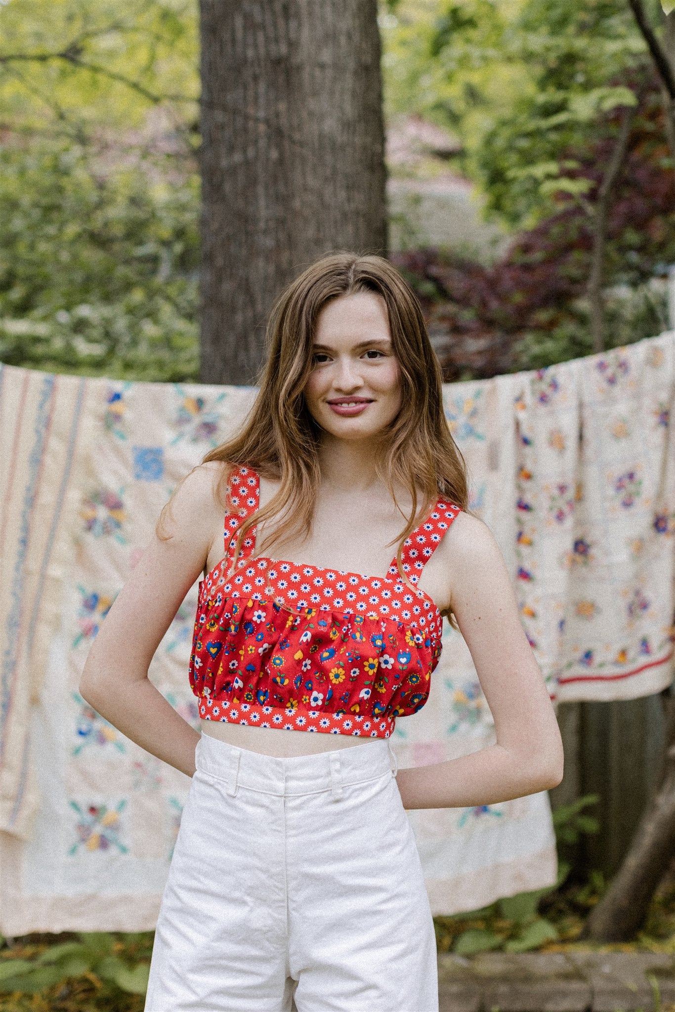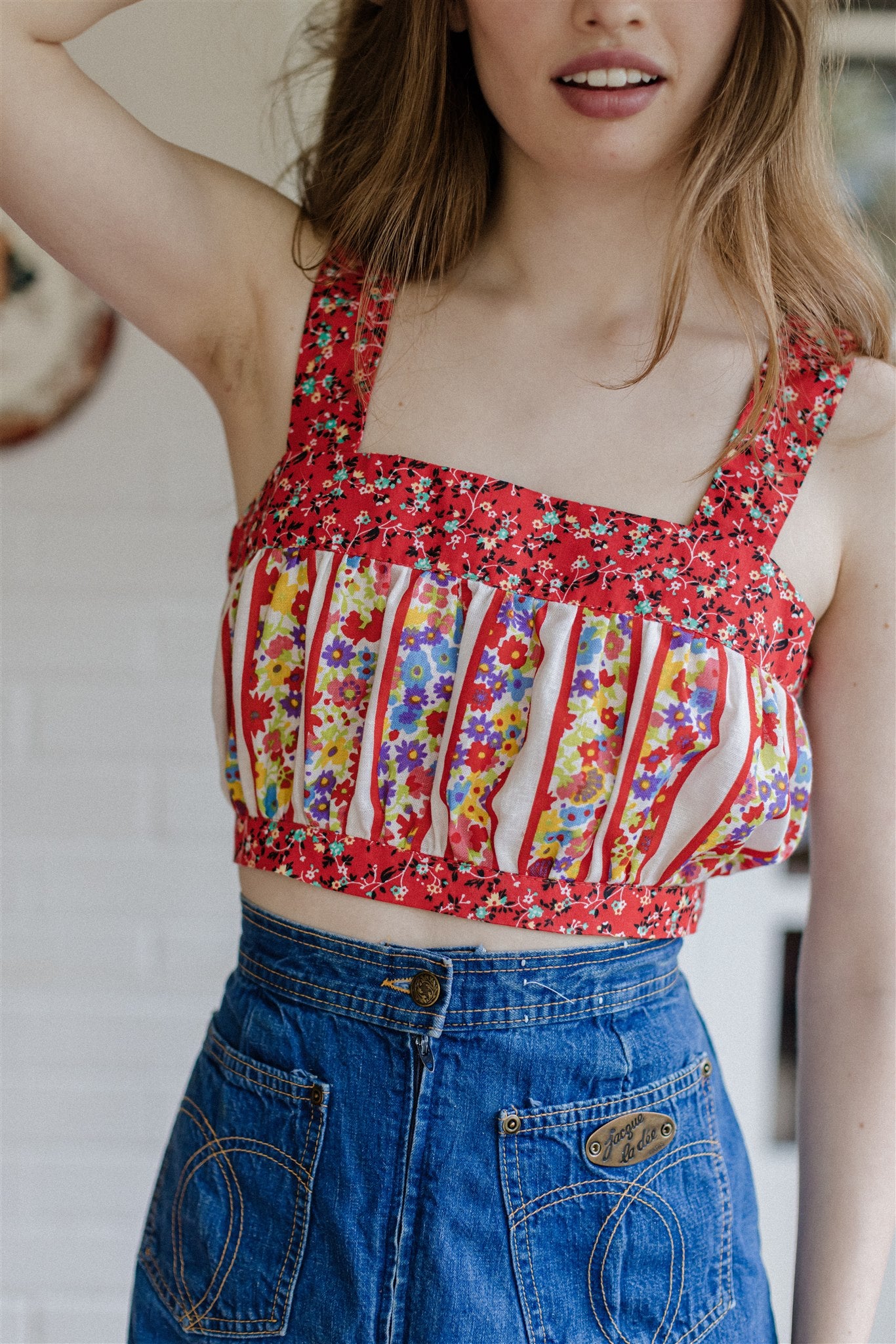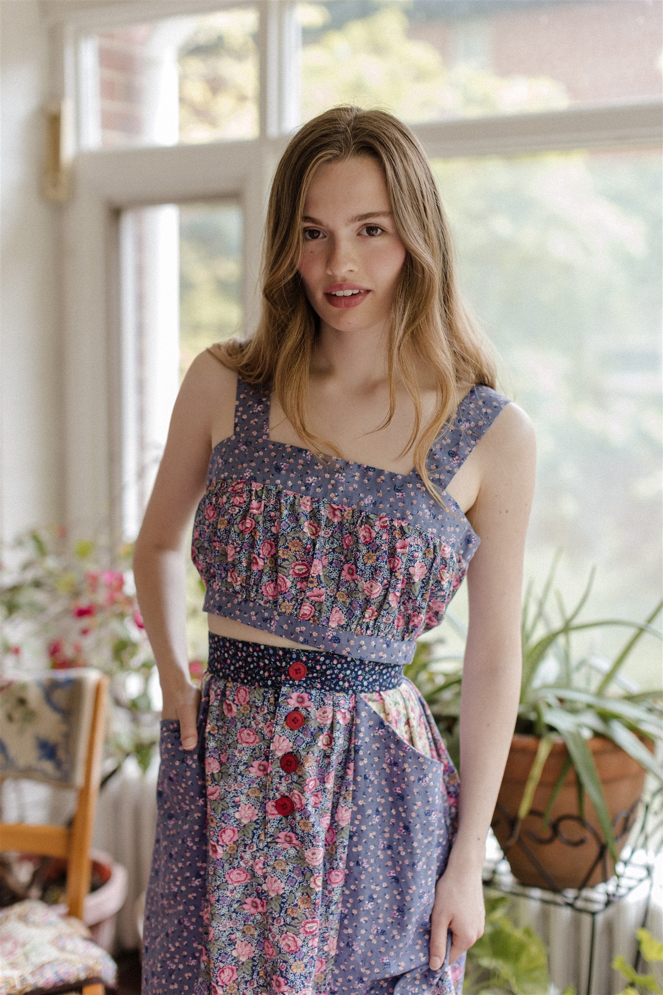 A cropped cut to pair with our Strawflower Skirt, high waisted bottoms and overalls.