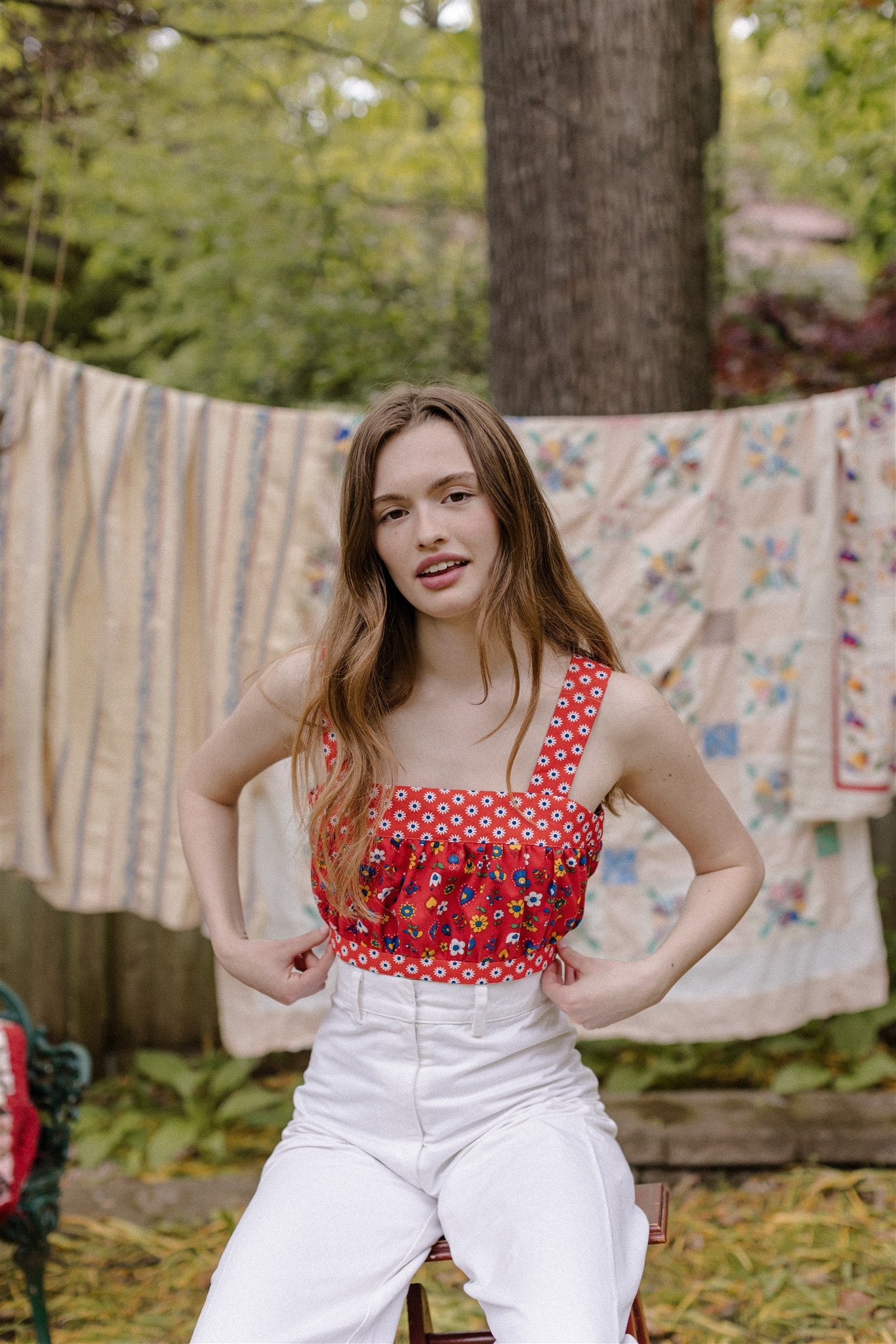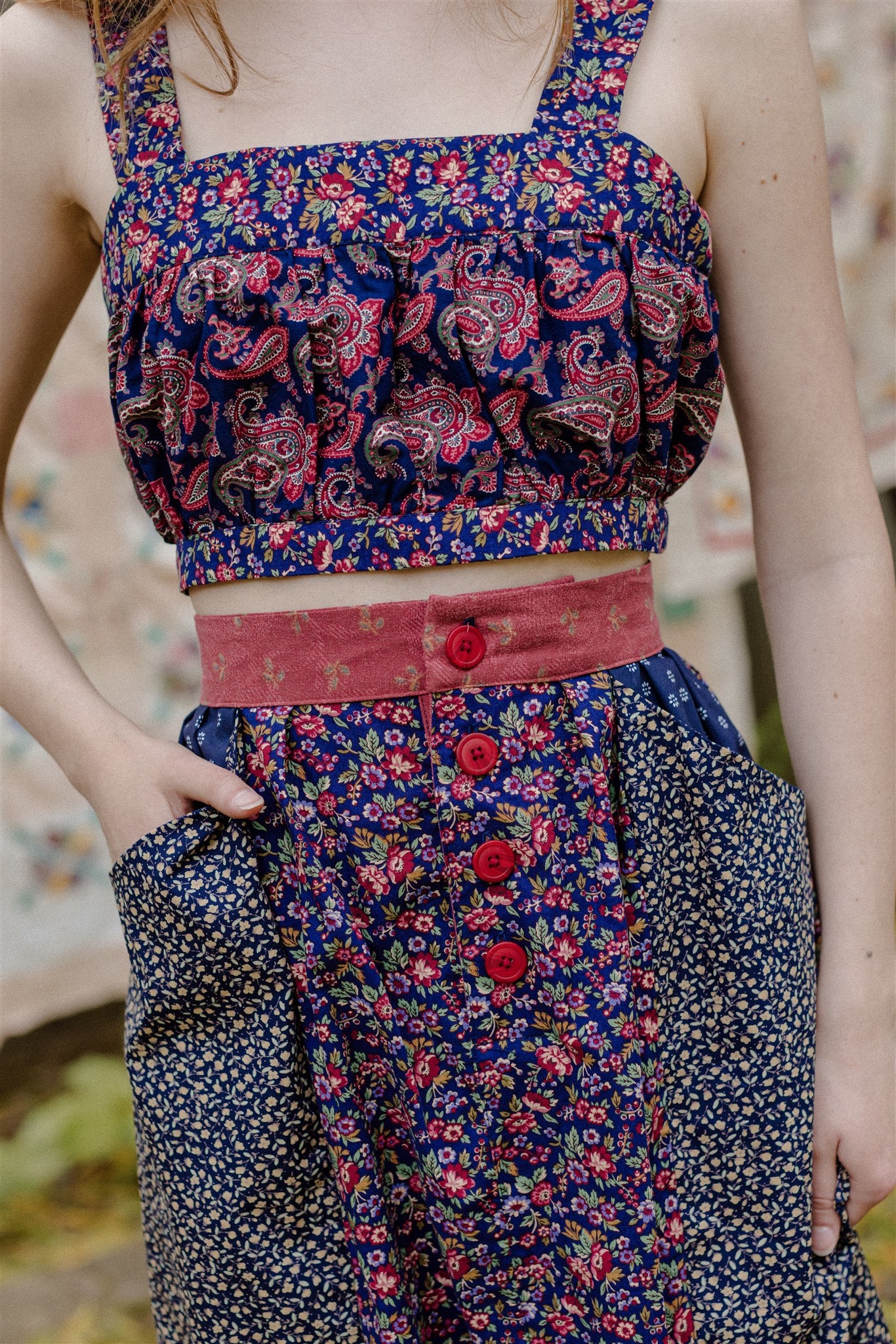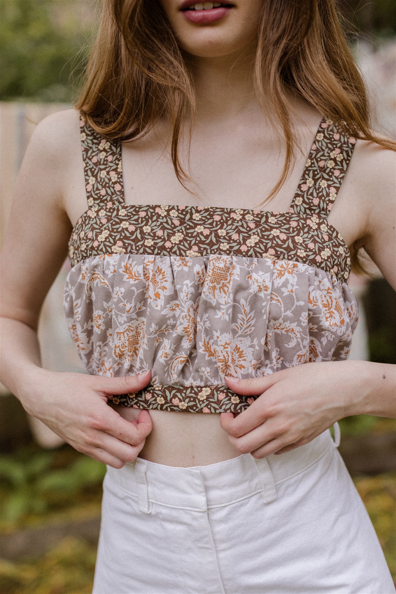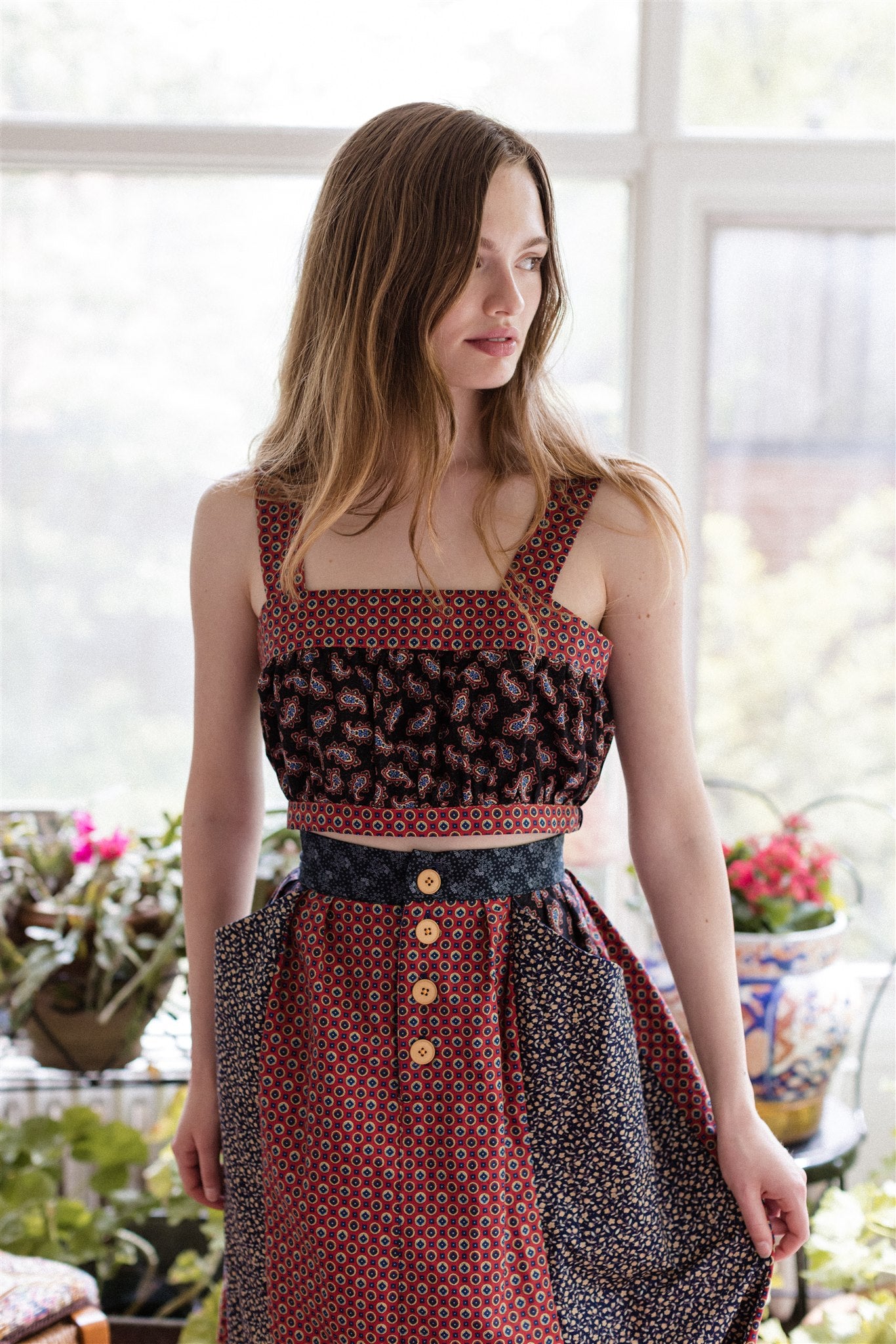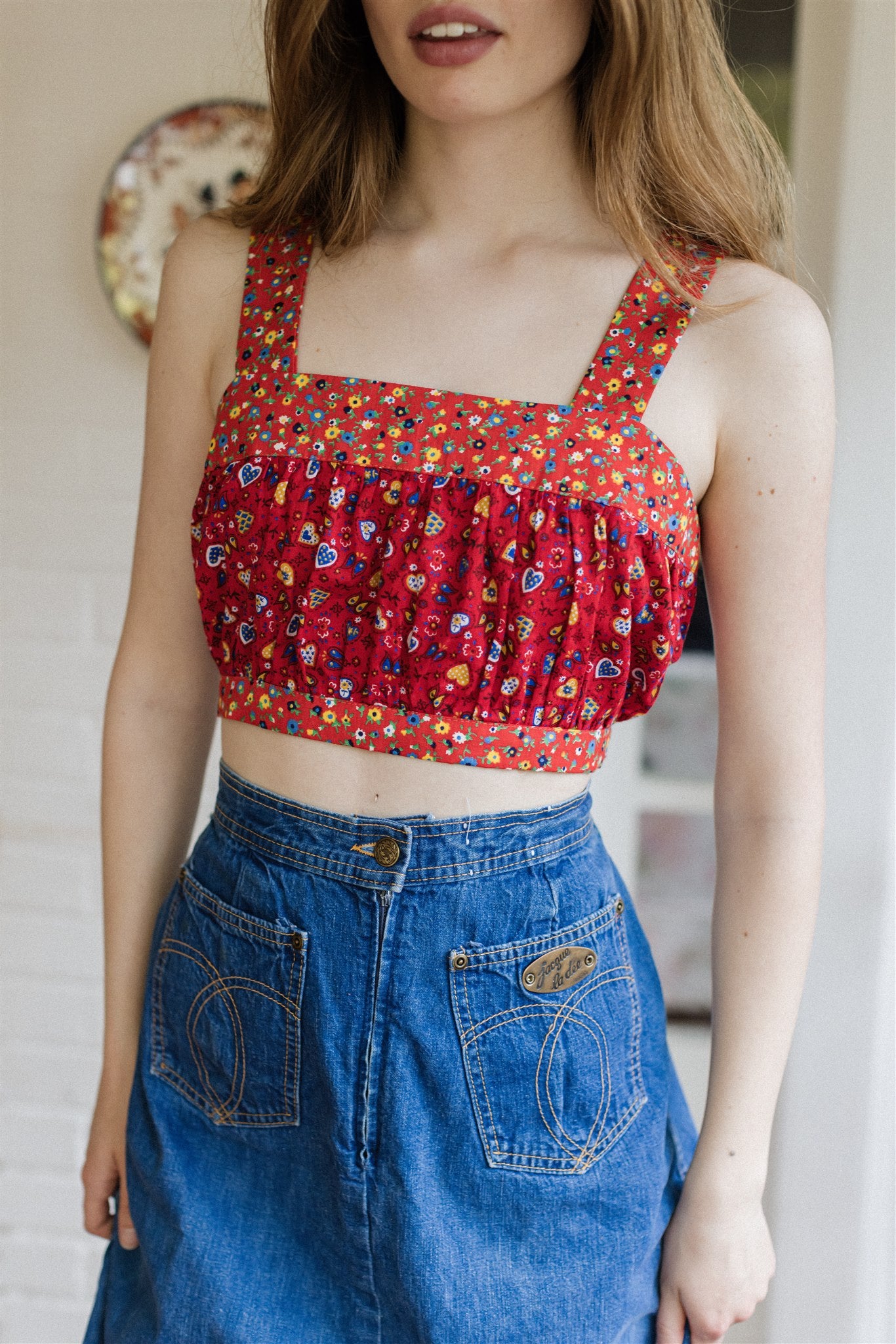 A cropped cut to pair with our Strawflower Skirt, high waisted bottoms and overalls.