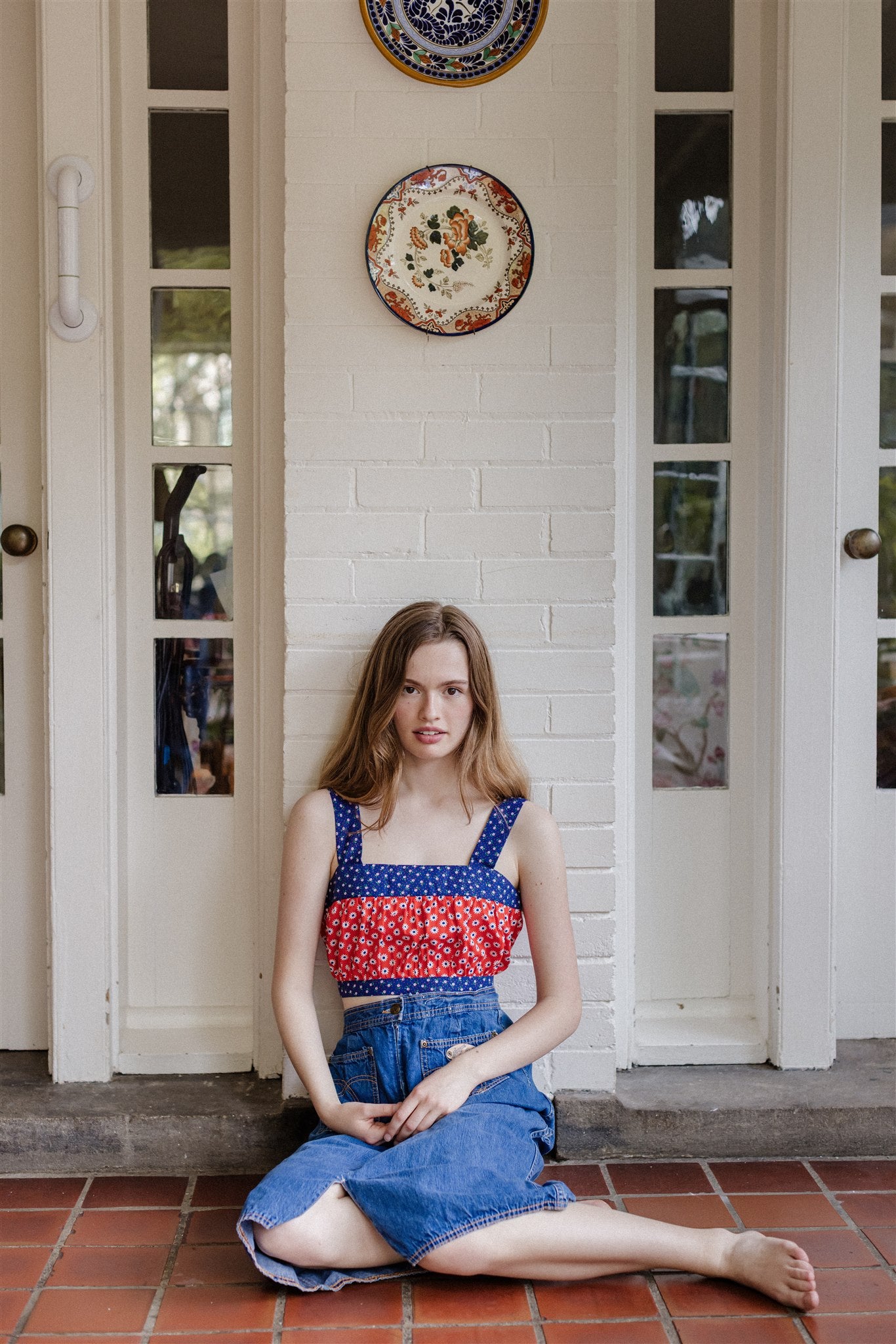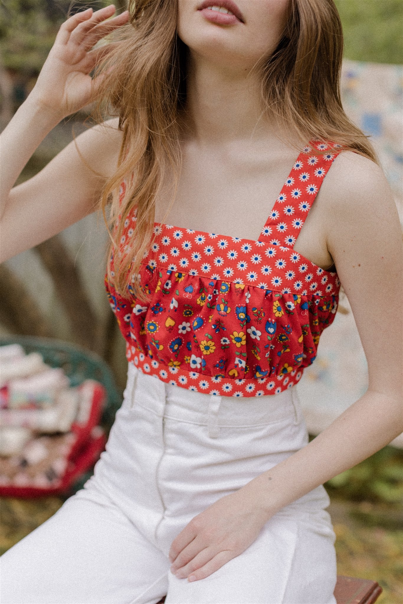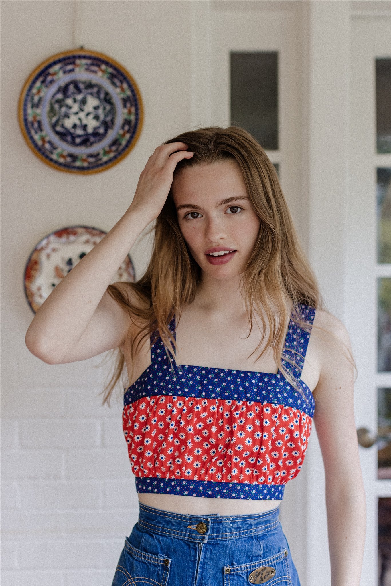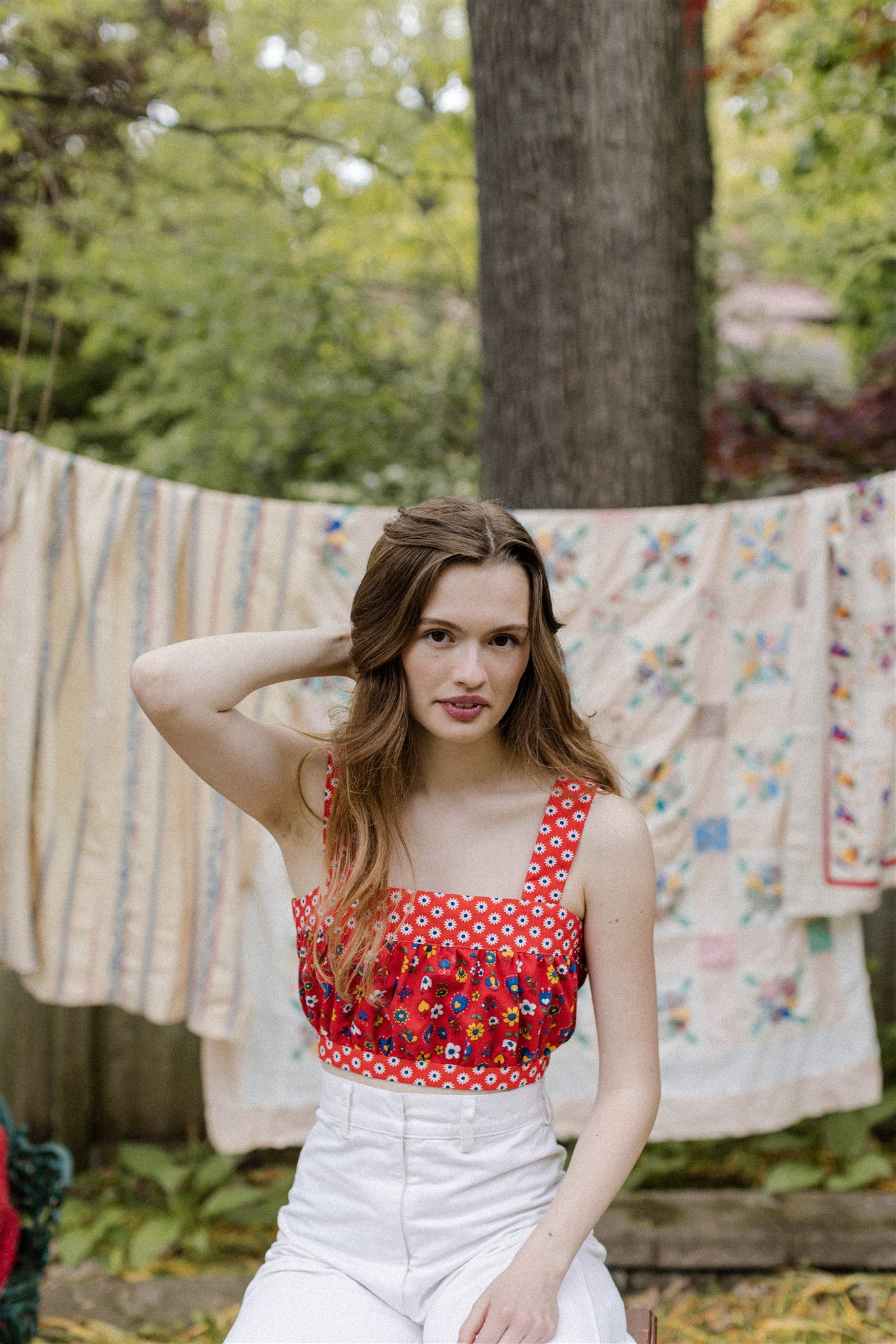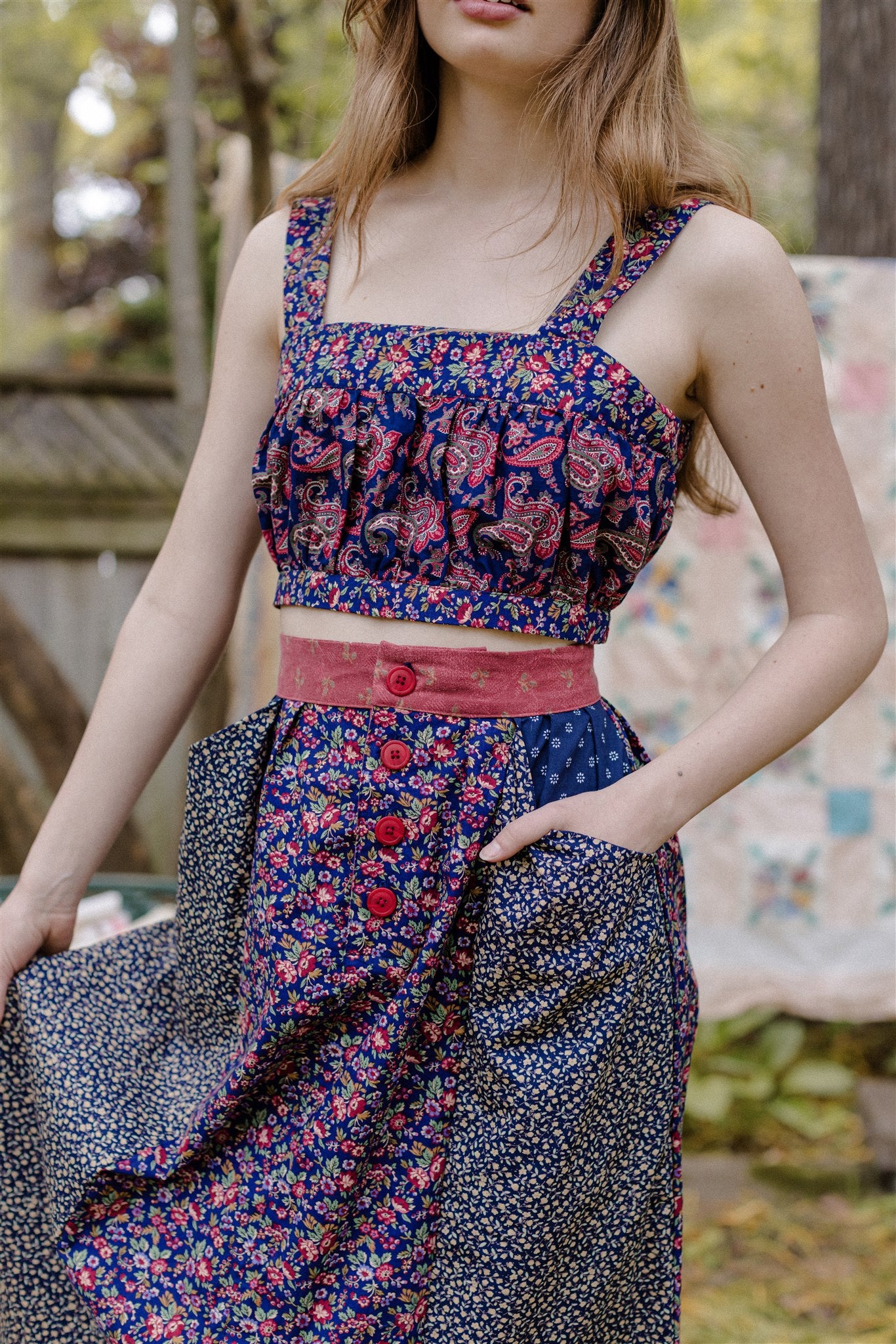 A cropped cut to pair with our Strawflower Skirt, high waisted bottoms and overalls.
