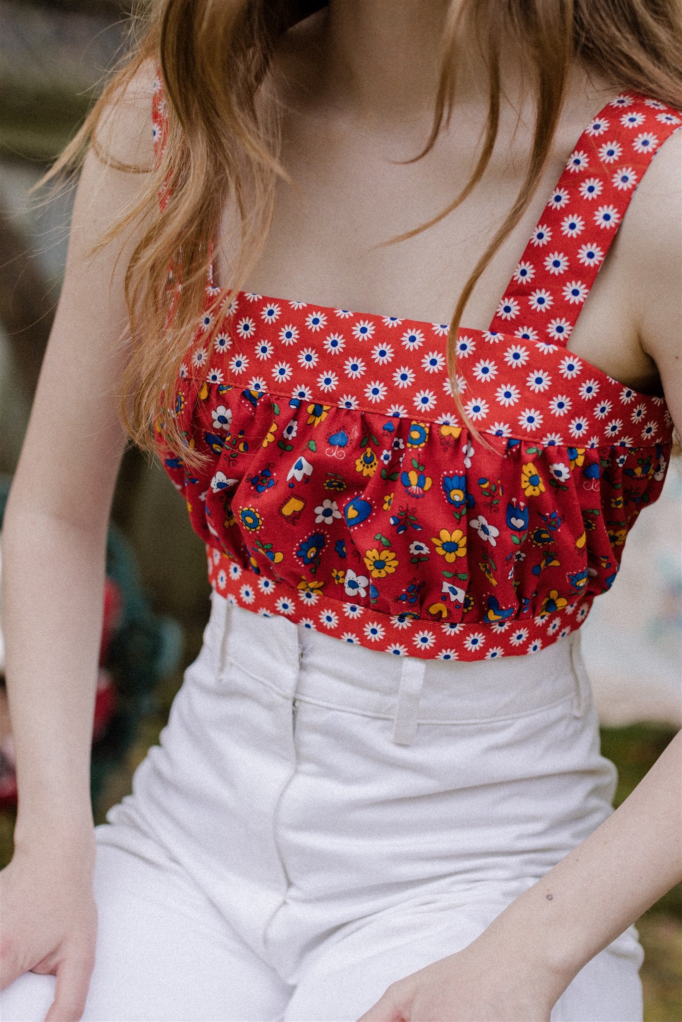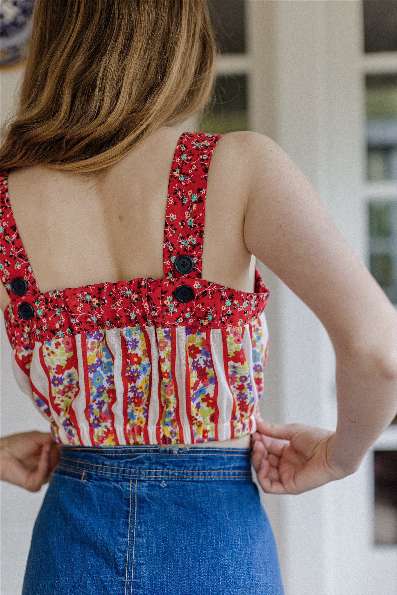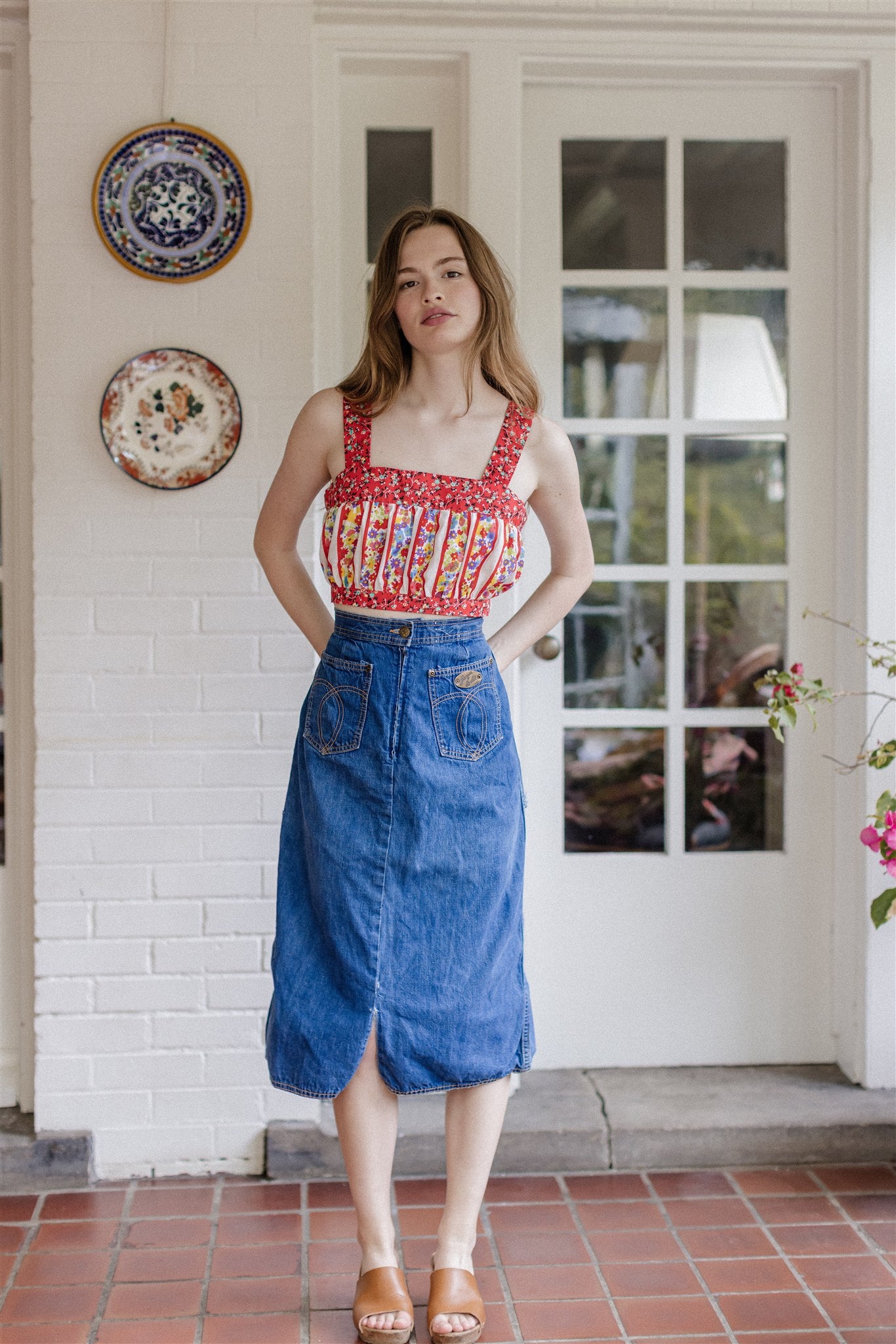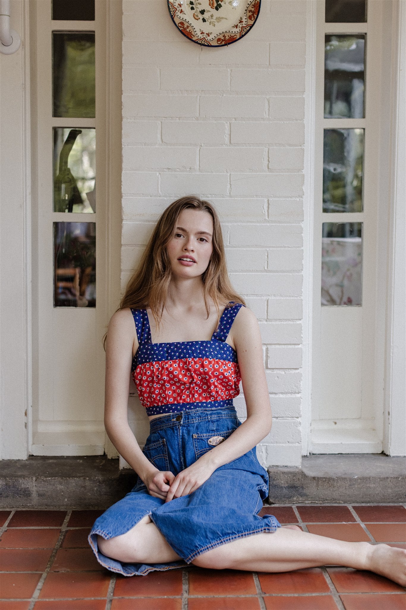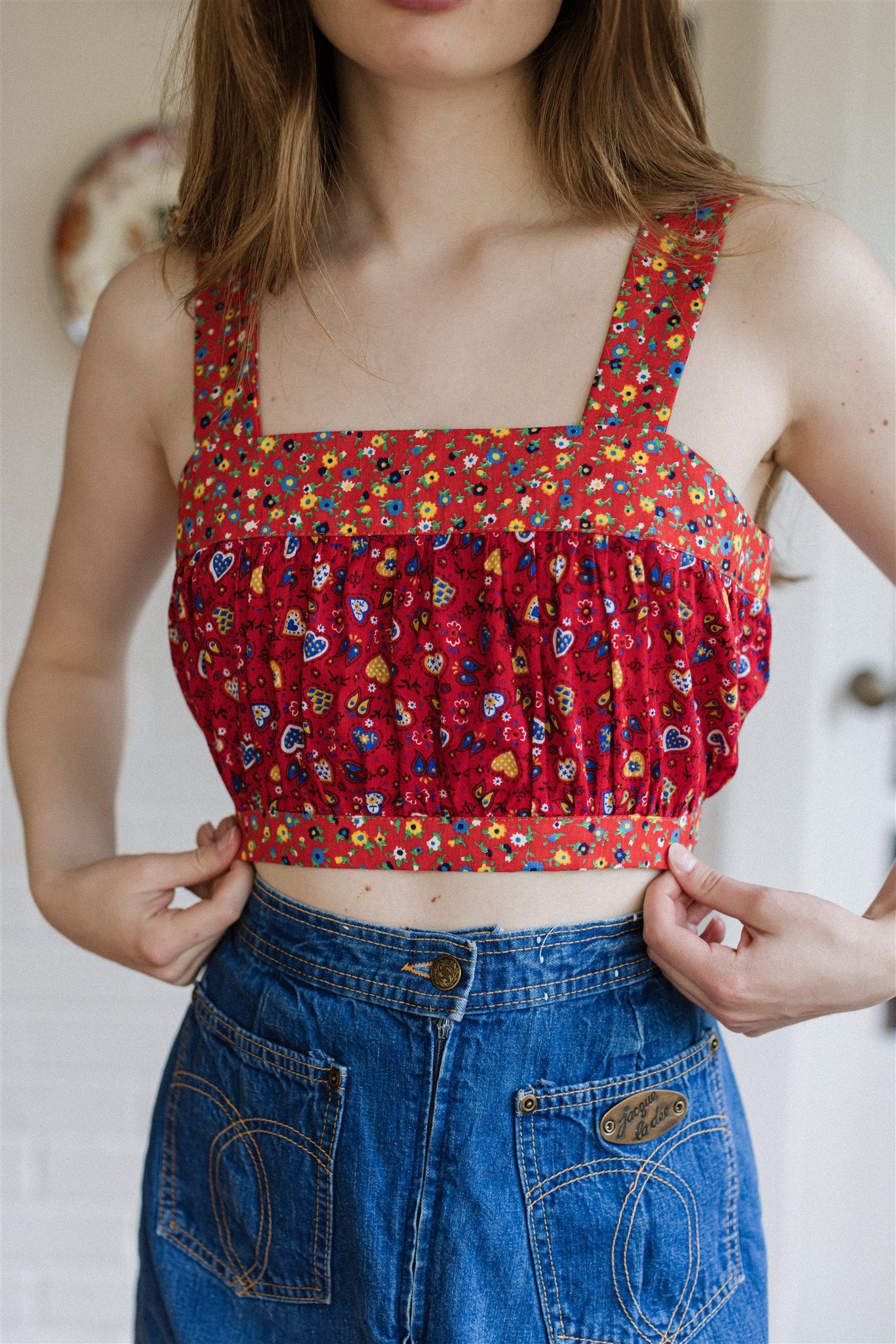A cropped cut to pair with our Strawflower Skirt, high waisted bottoms and overalls.