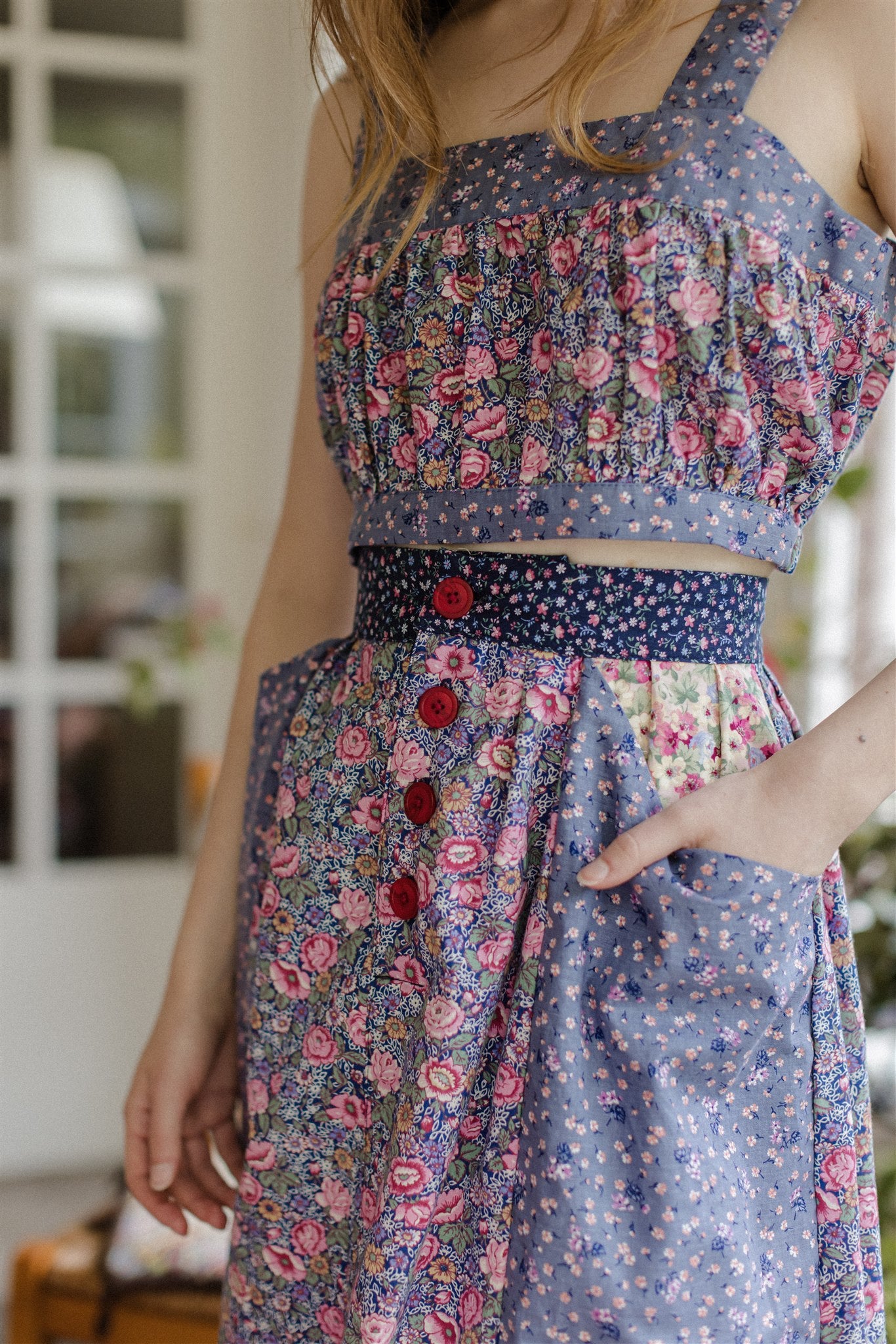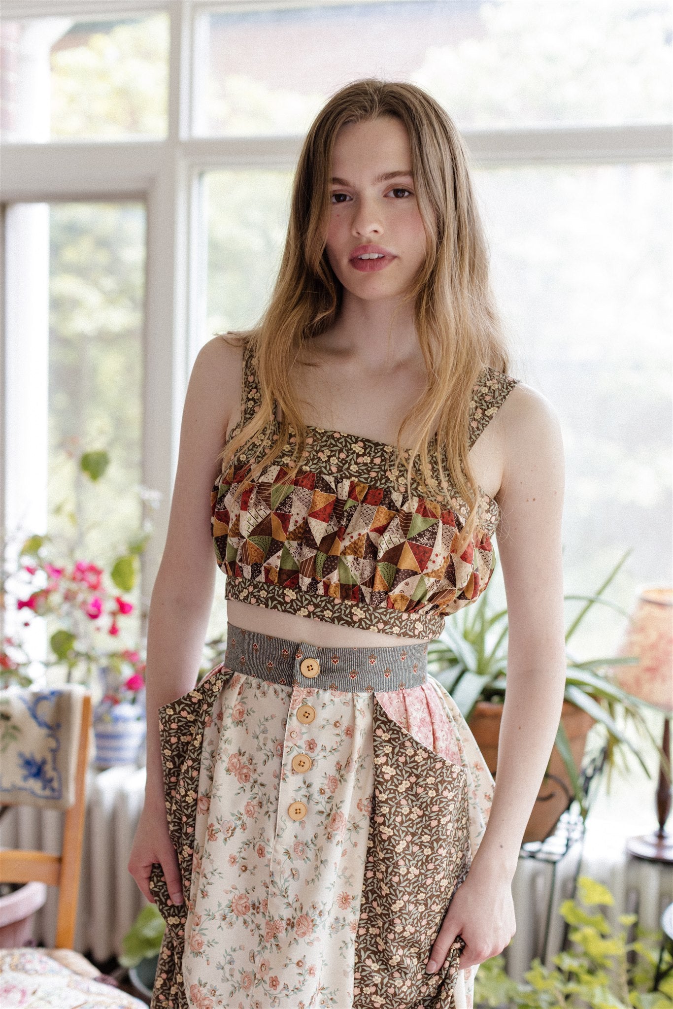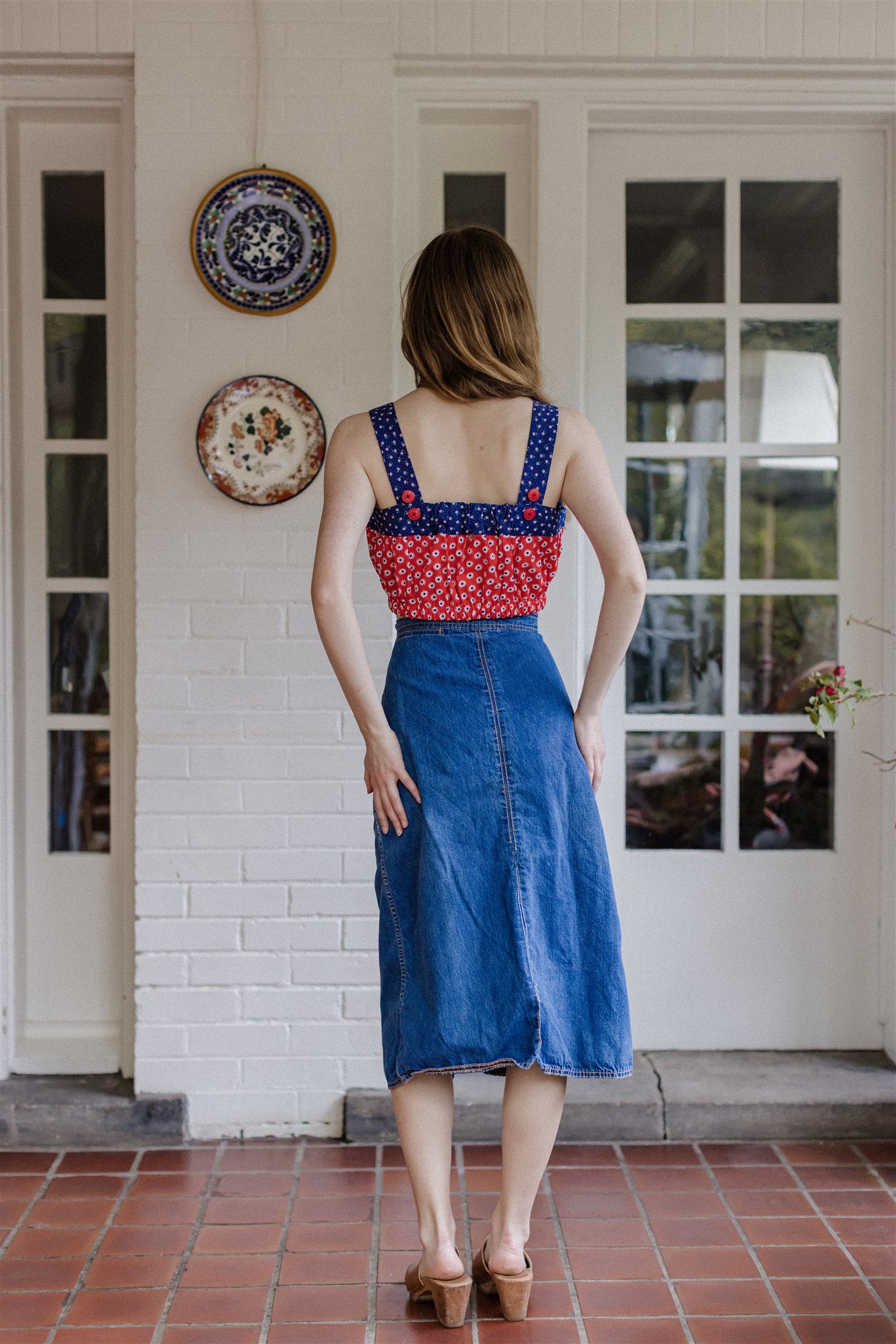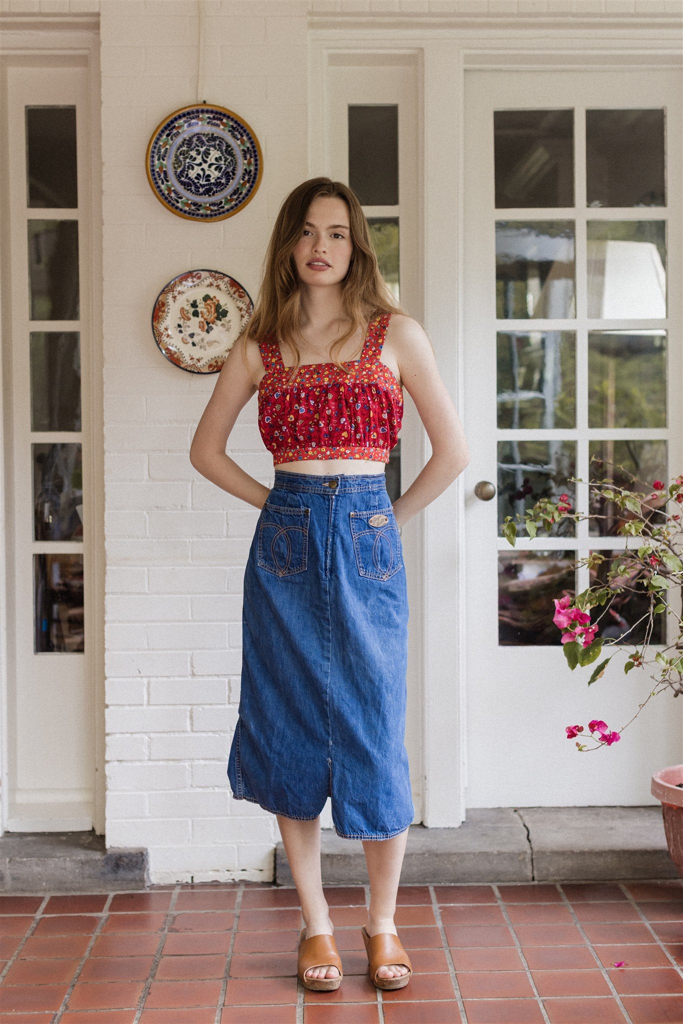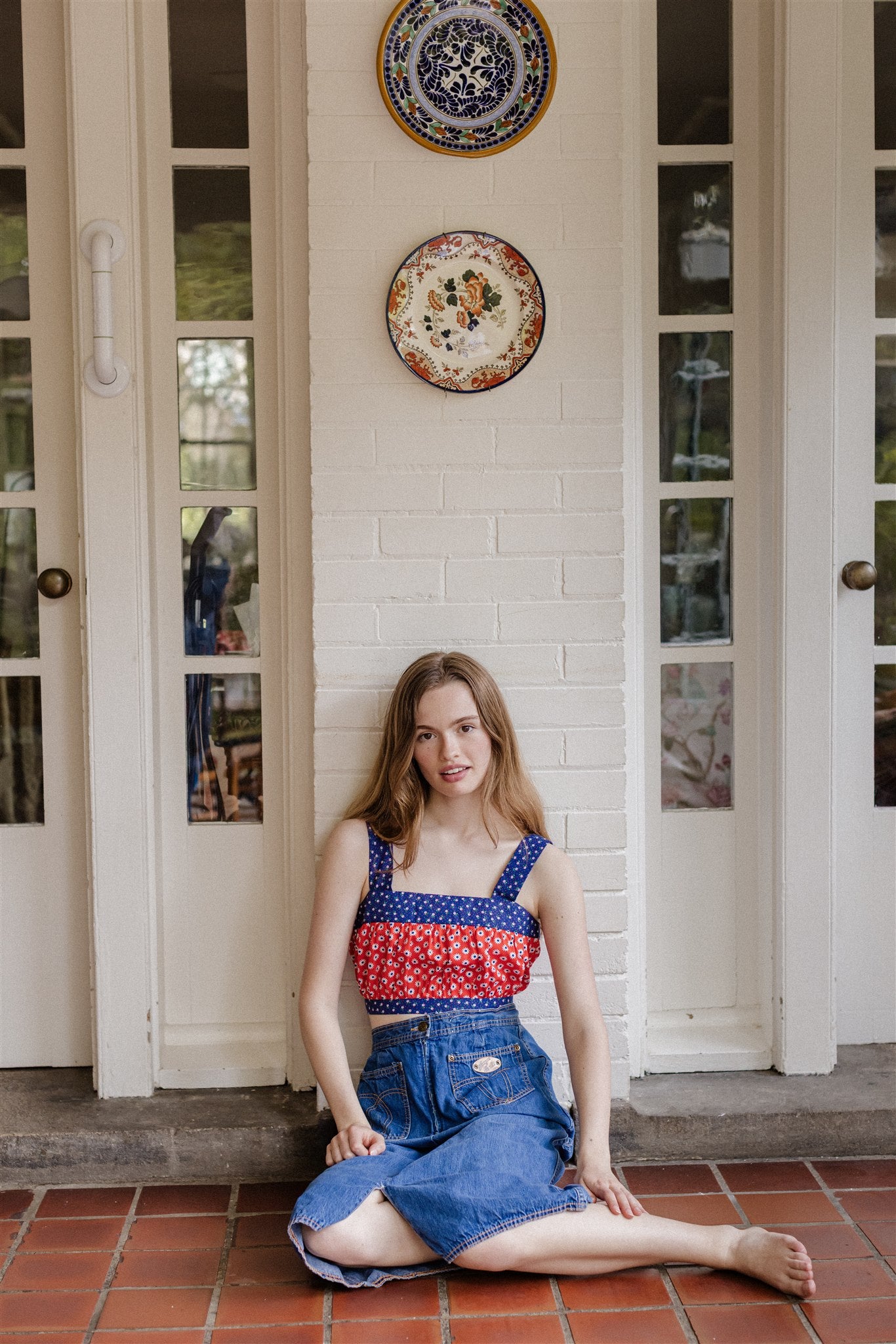 A cropped cut to pair with our Strawflower Skirt, high waisted bottoms and overalls.