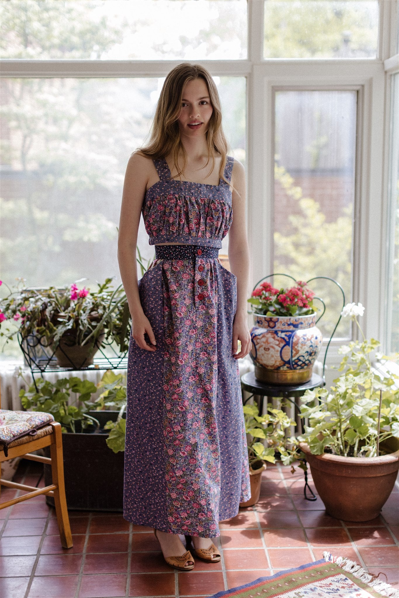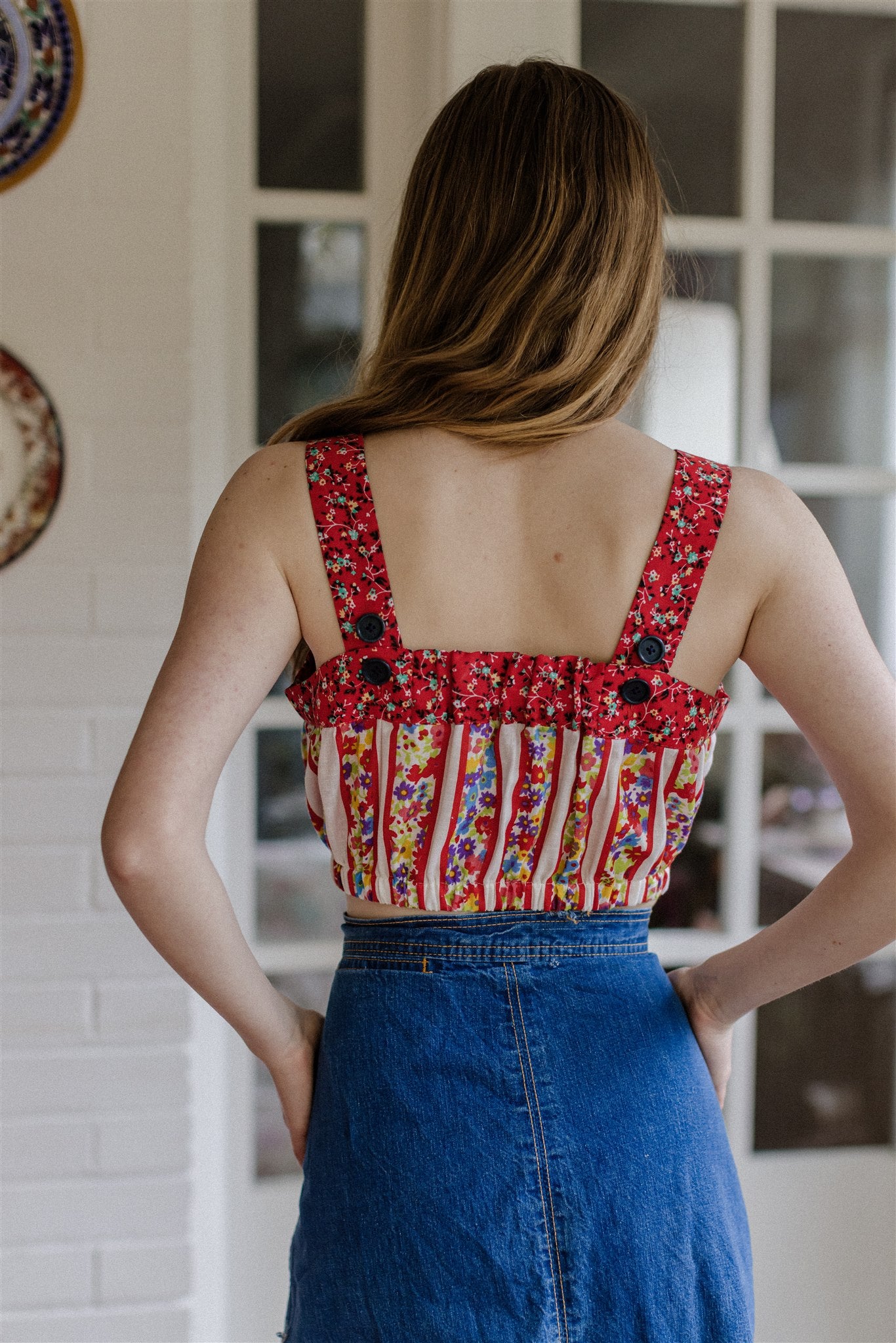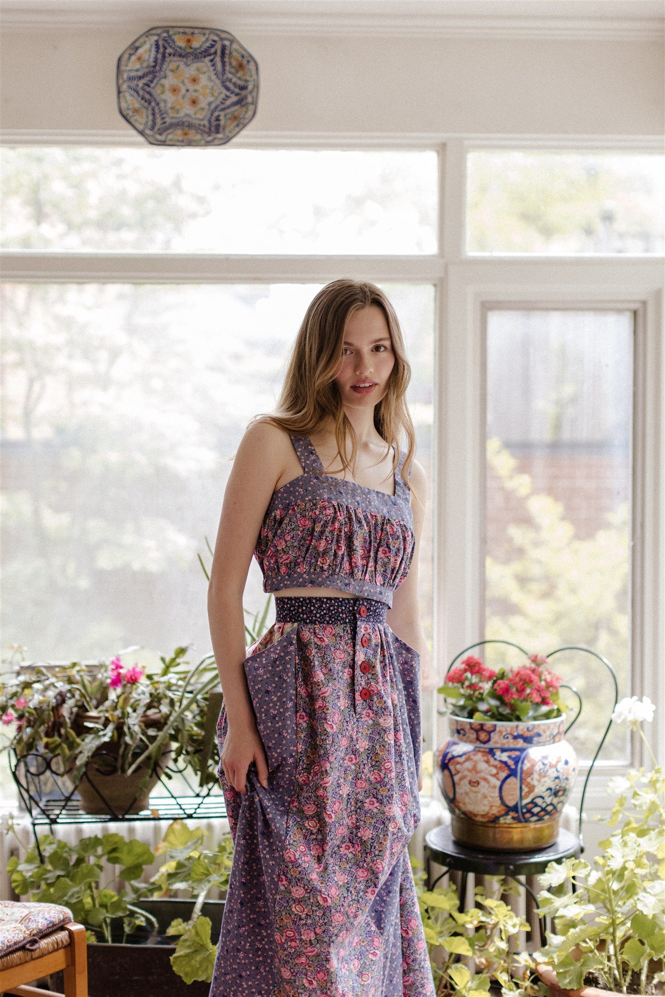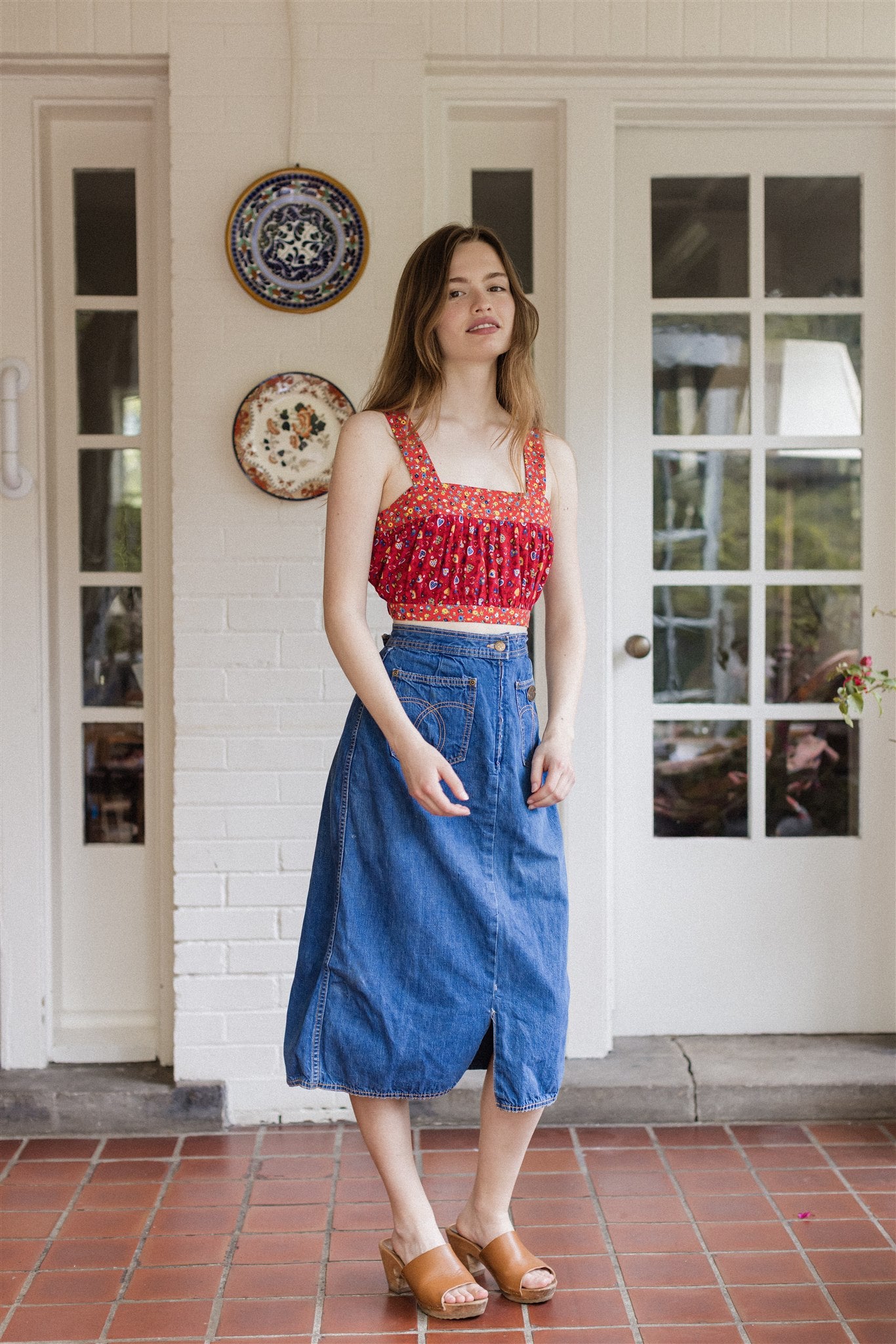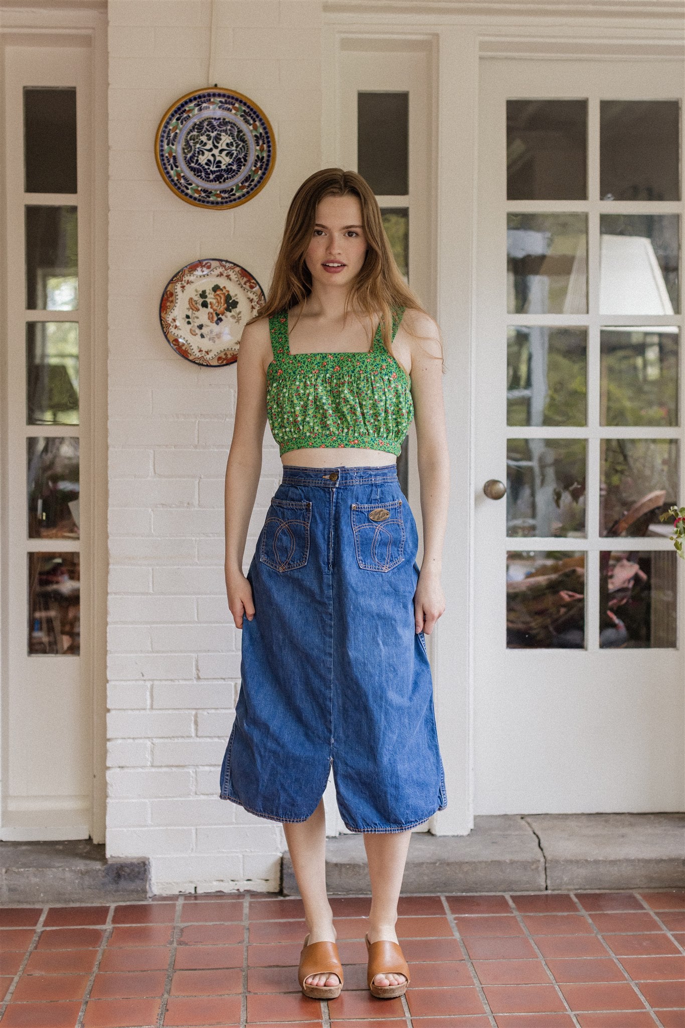 A cropped cut to pair with our Strawflower Skirt, high waisted bottoms and overalls.