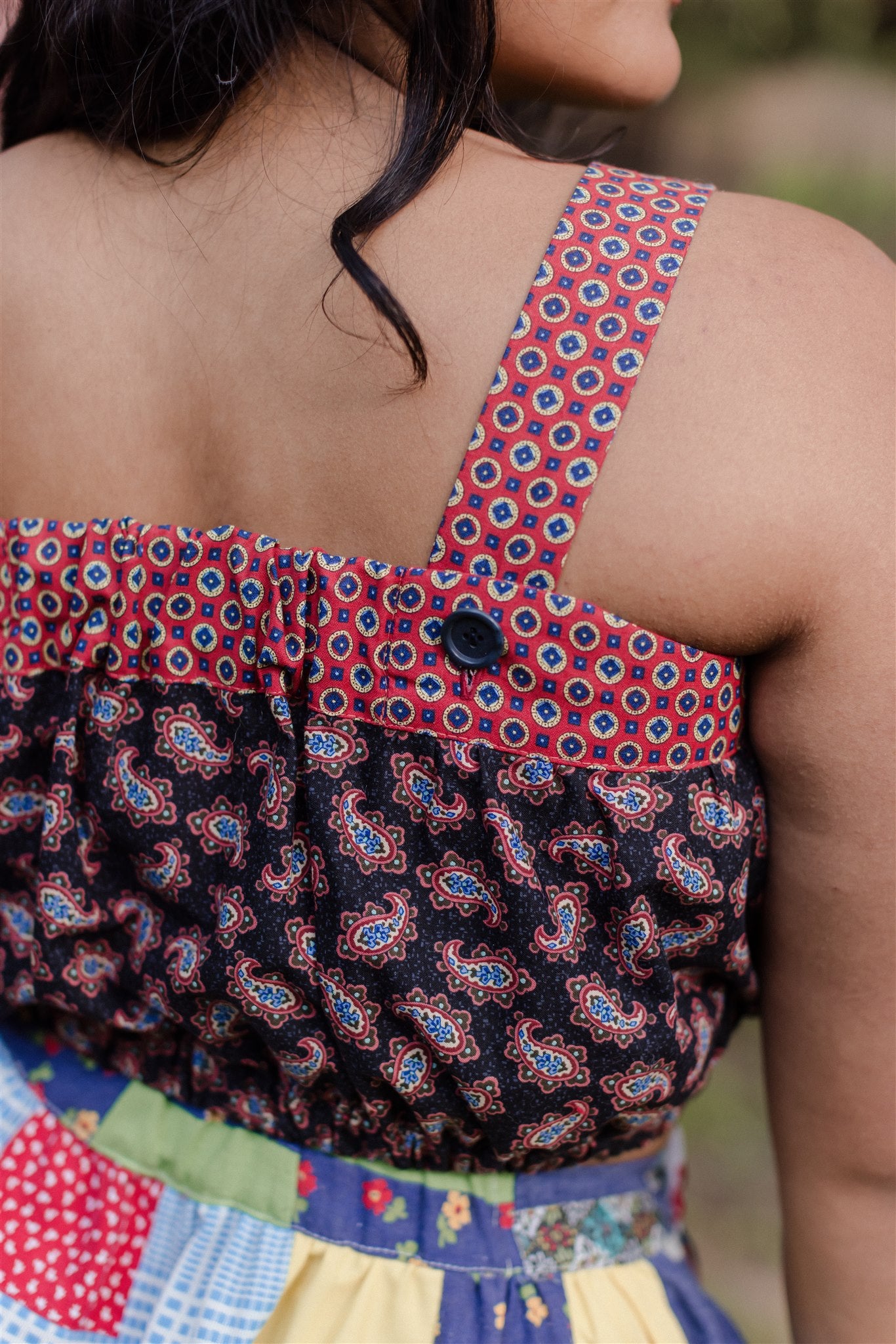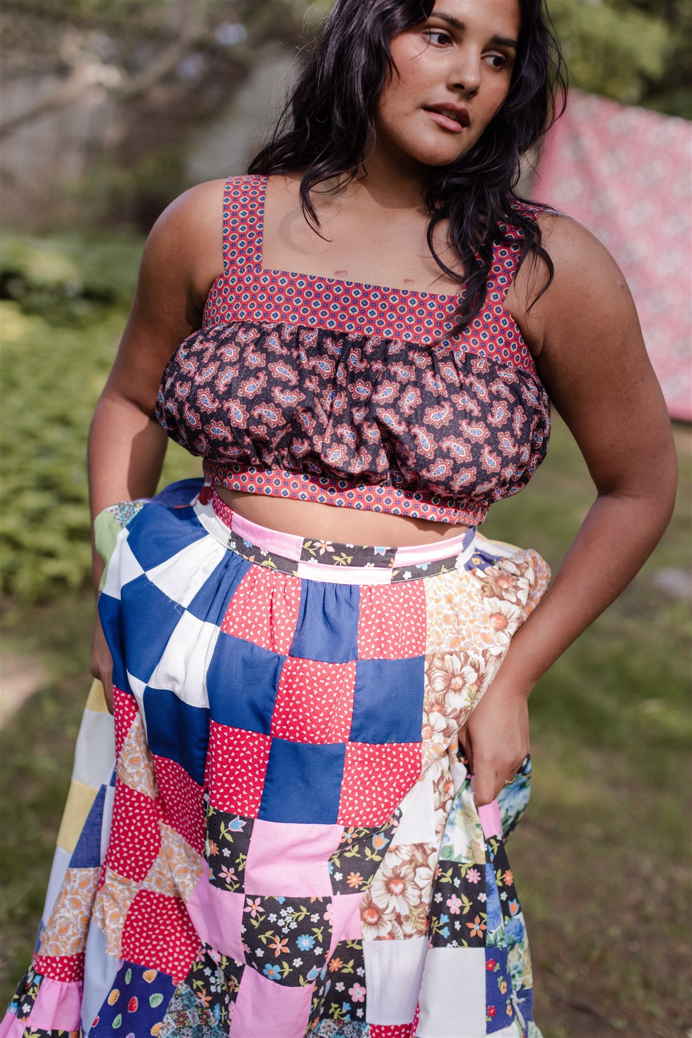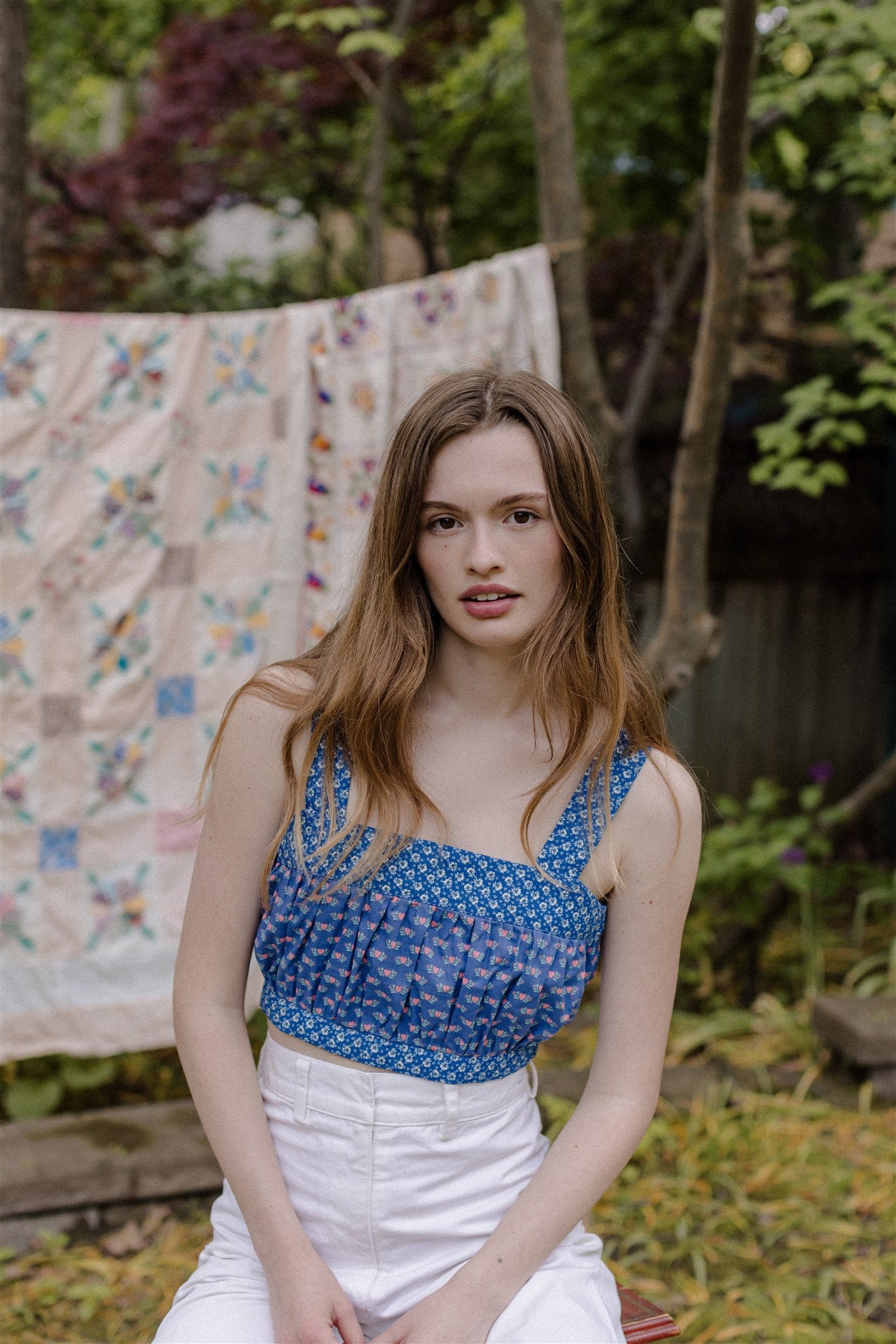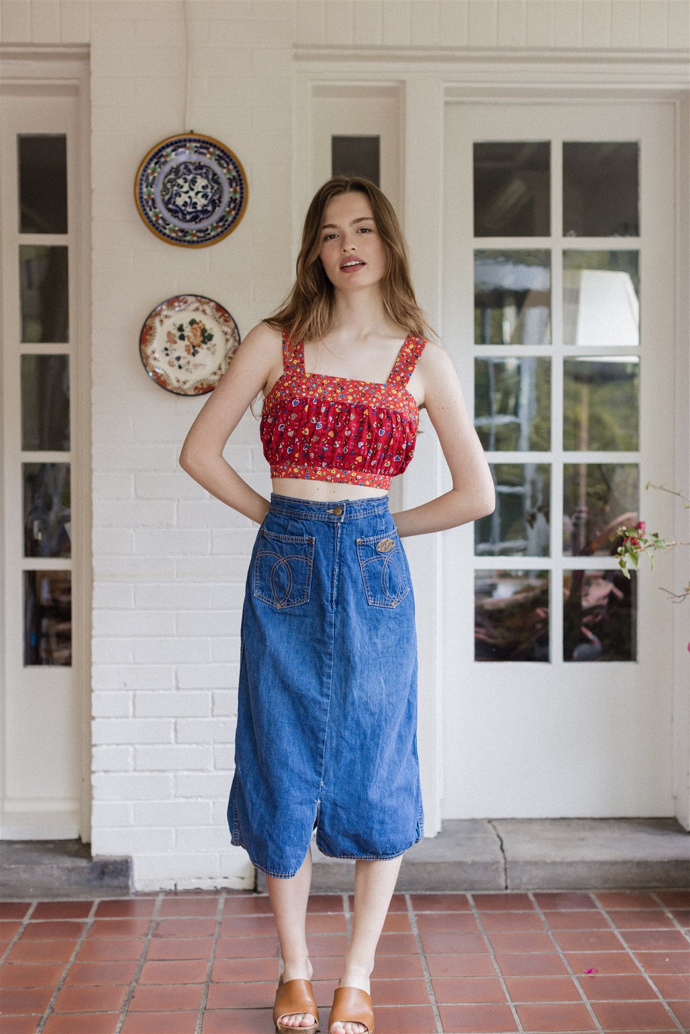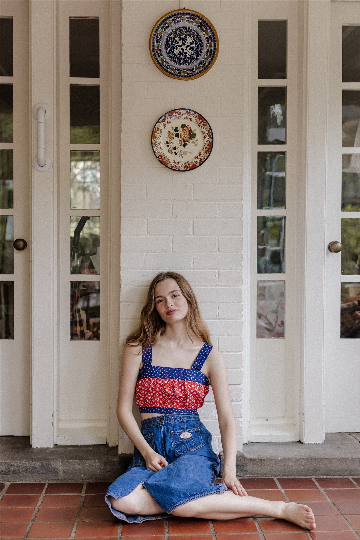 A cropped cut to pair with our Strawflower Skirt, high waisted bottoms and overalls.