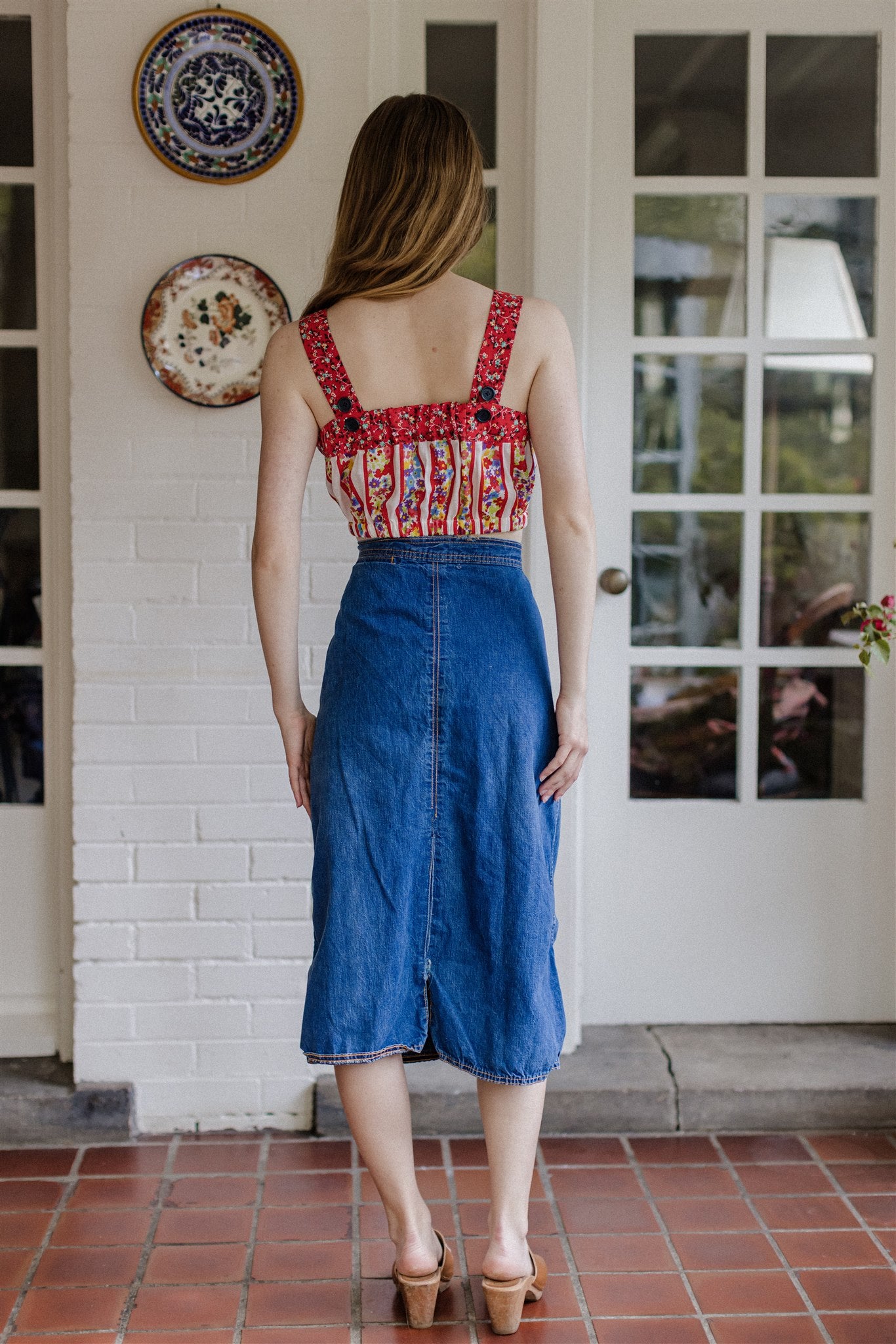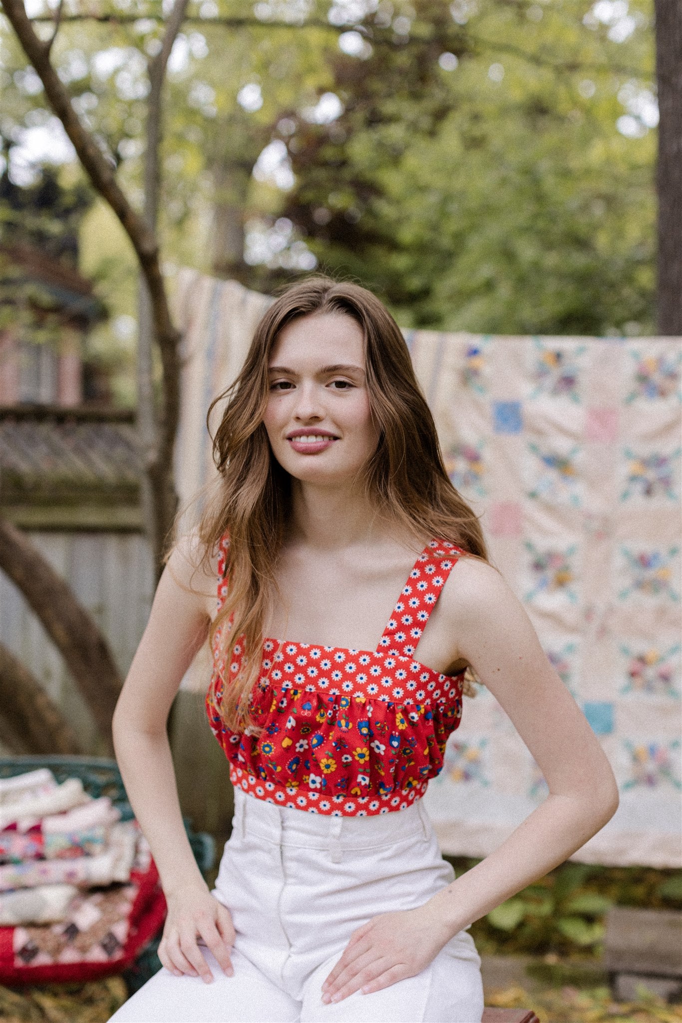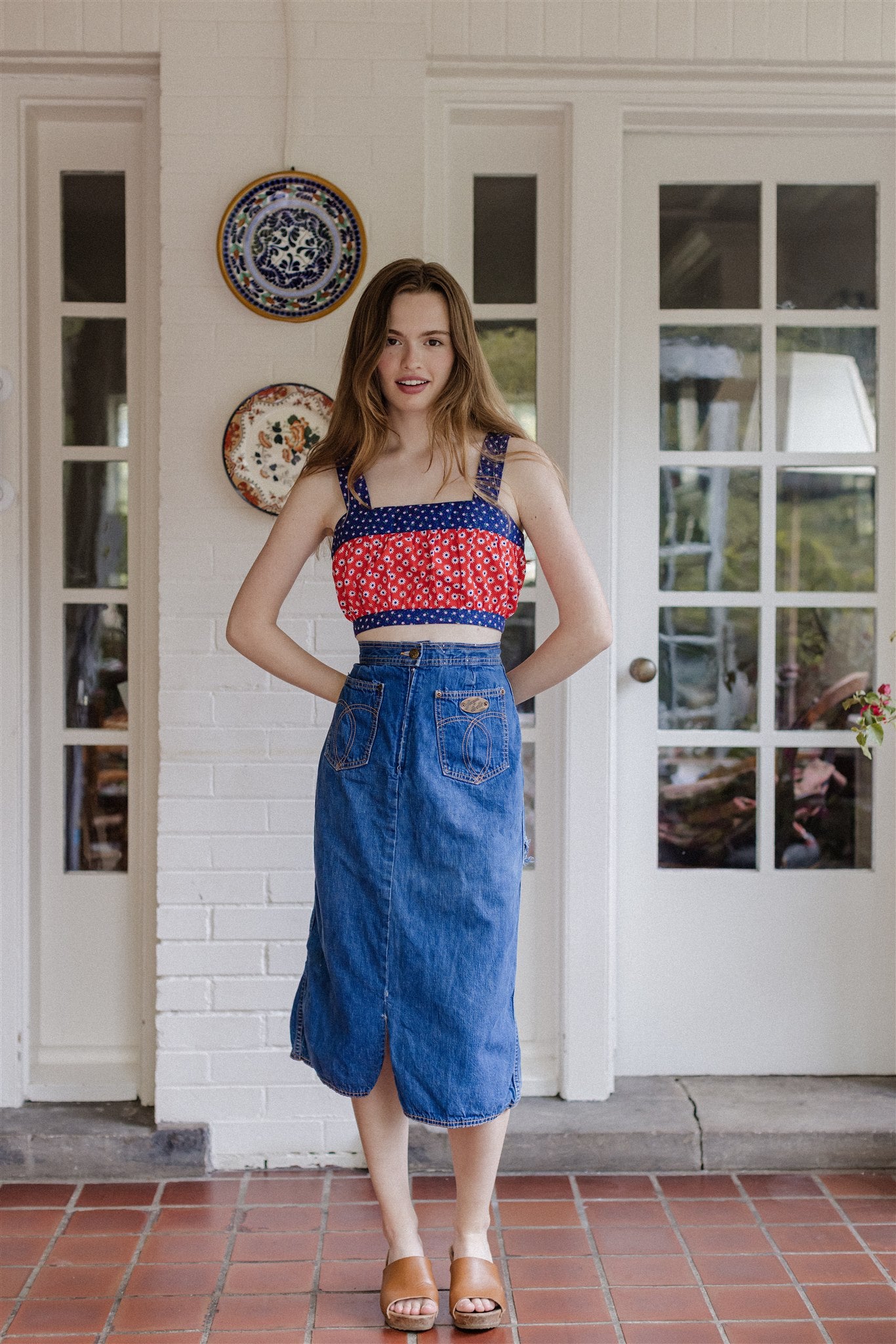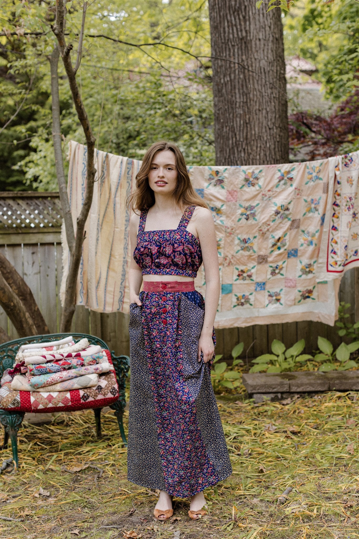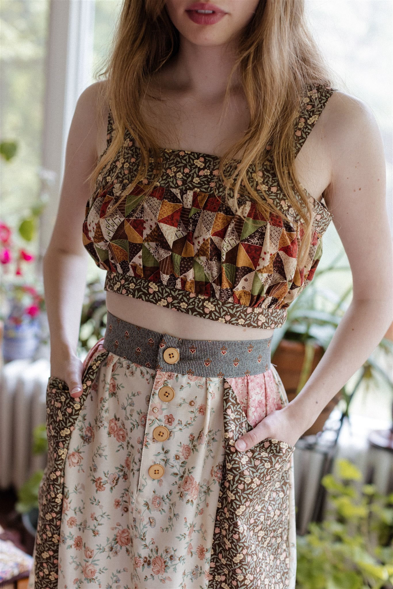 A cropped cut to pair with our Strawflower Skirt, high waisted bottoms and overalls.