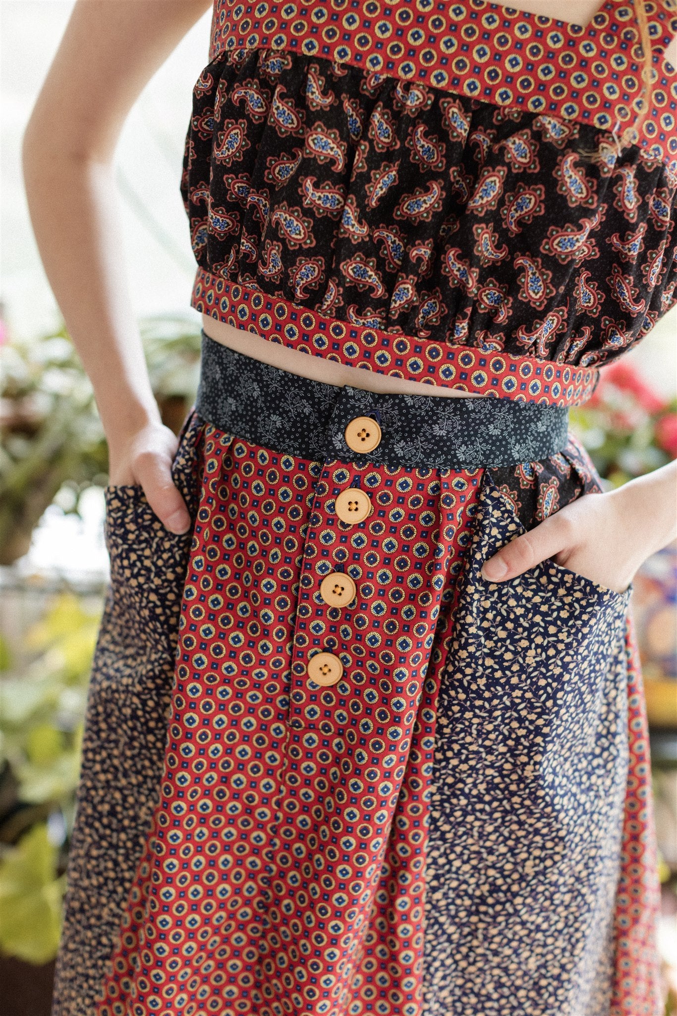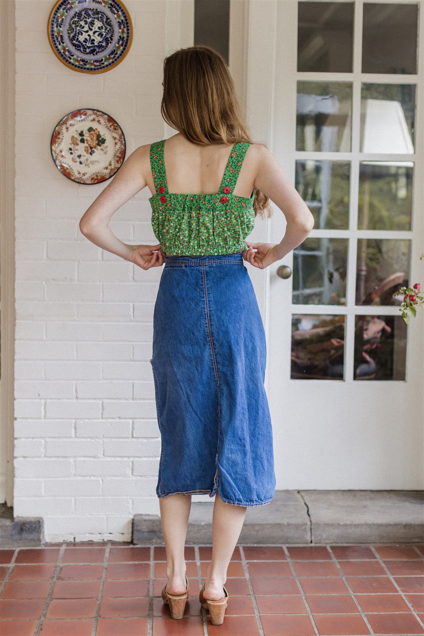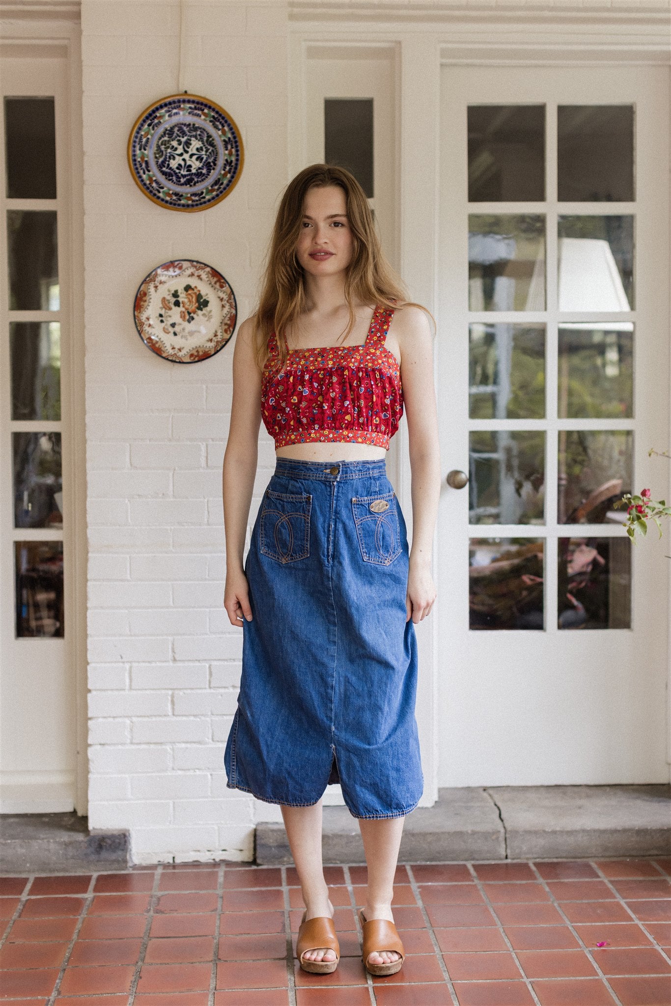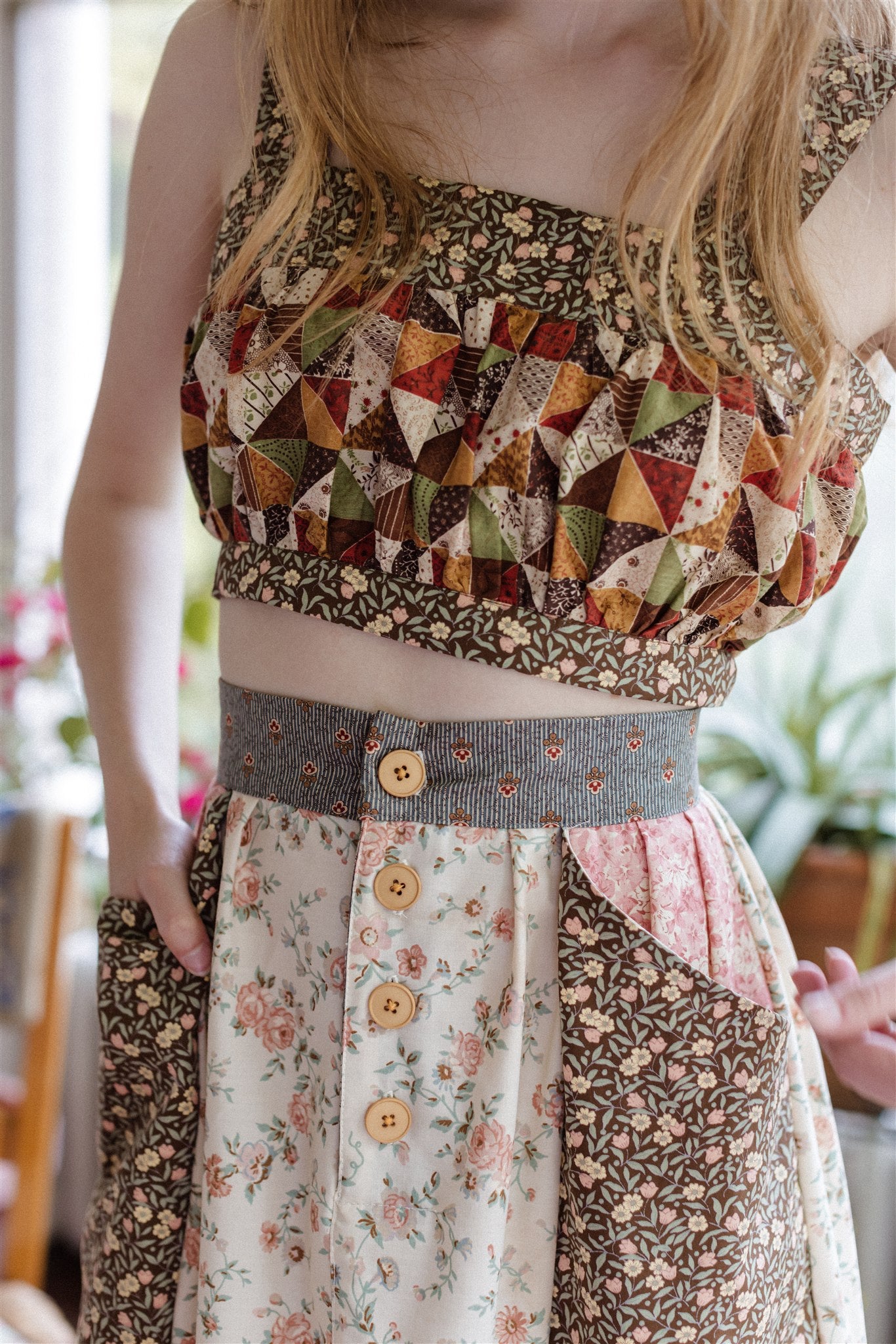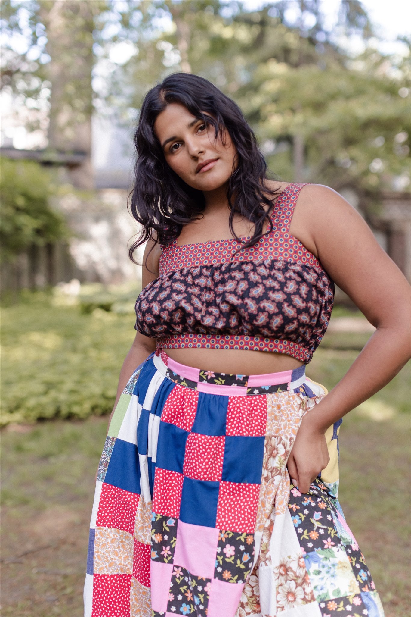 A cropped cut to pair with our Strawflower Skirt, high waisted bottoms and overalls.