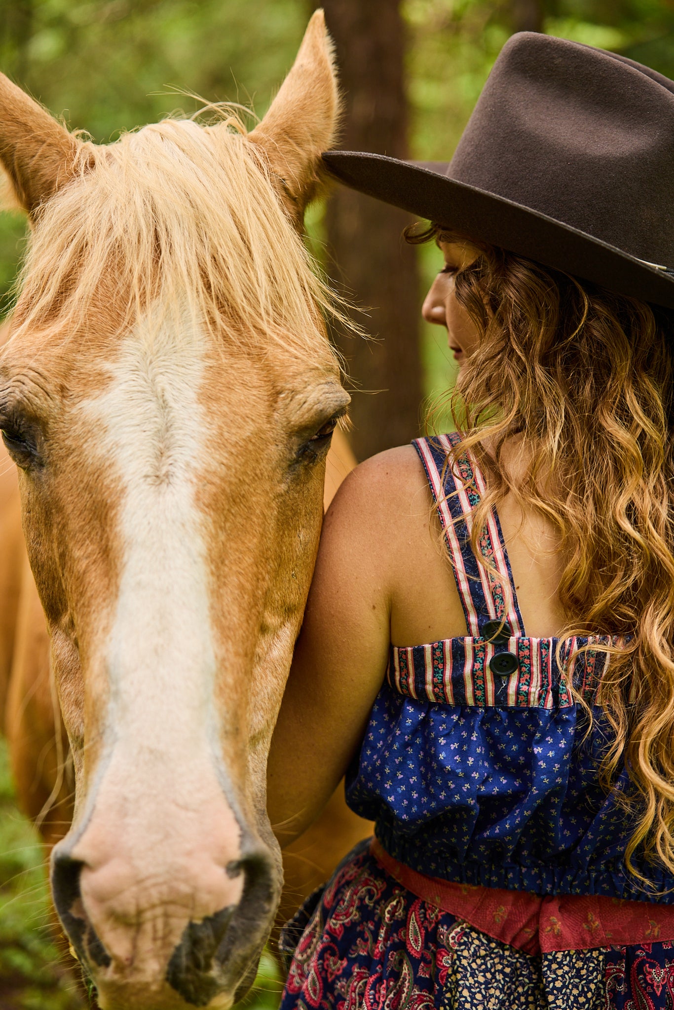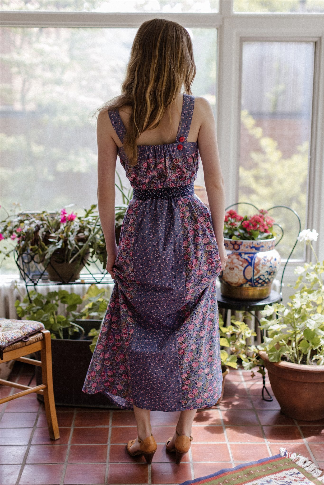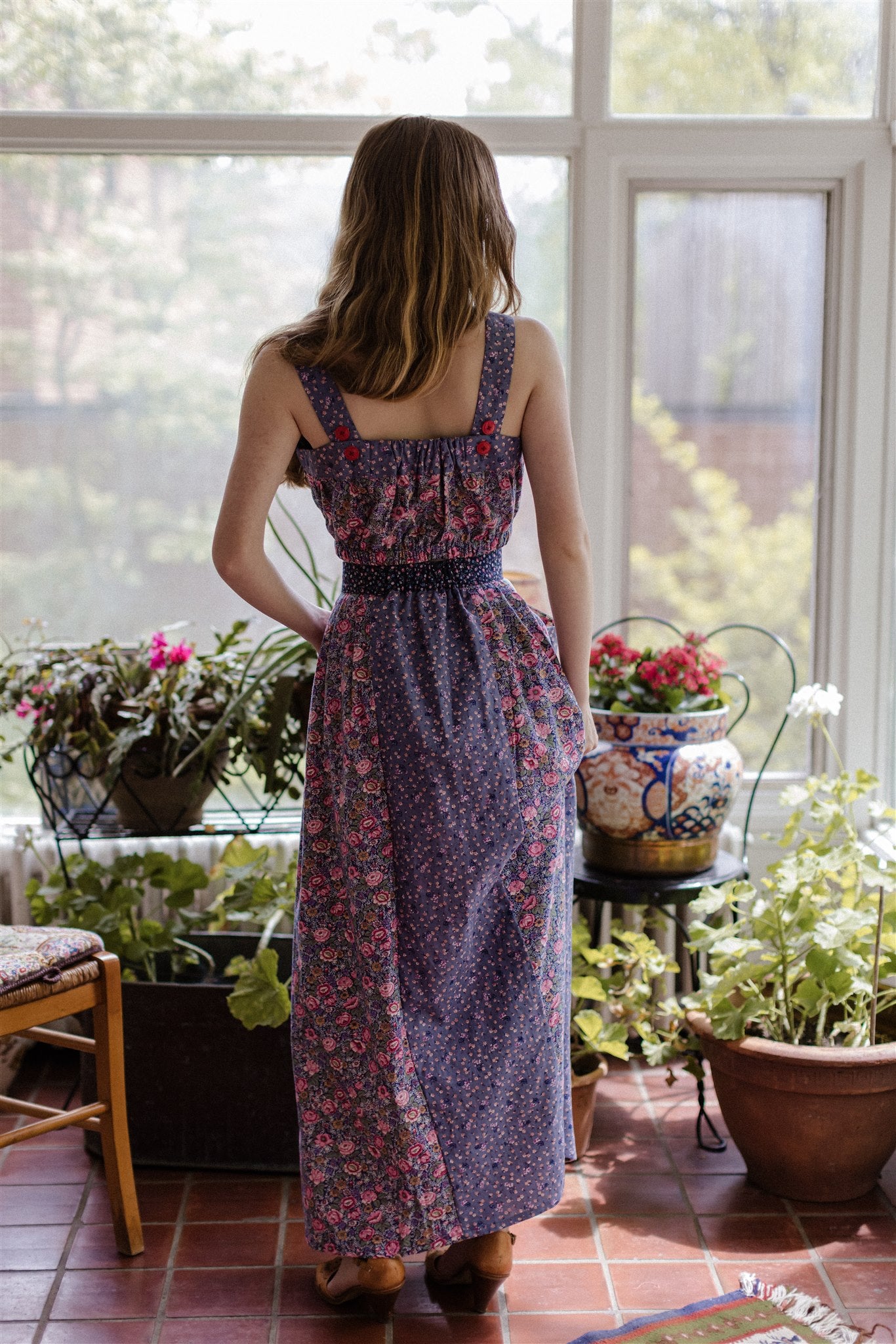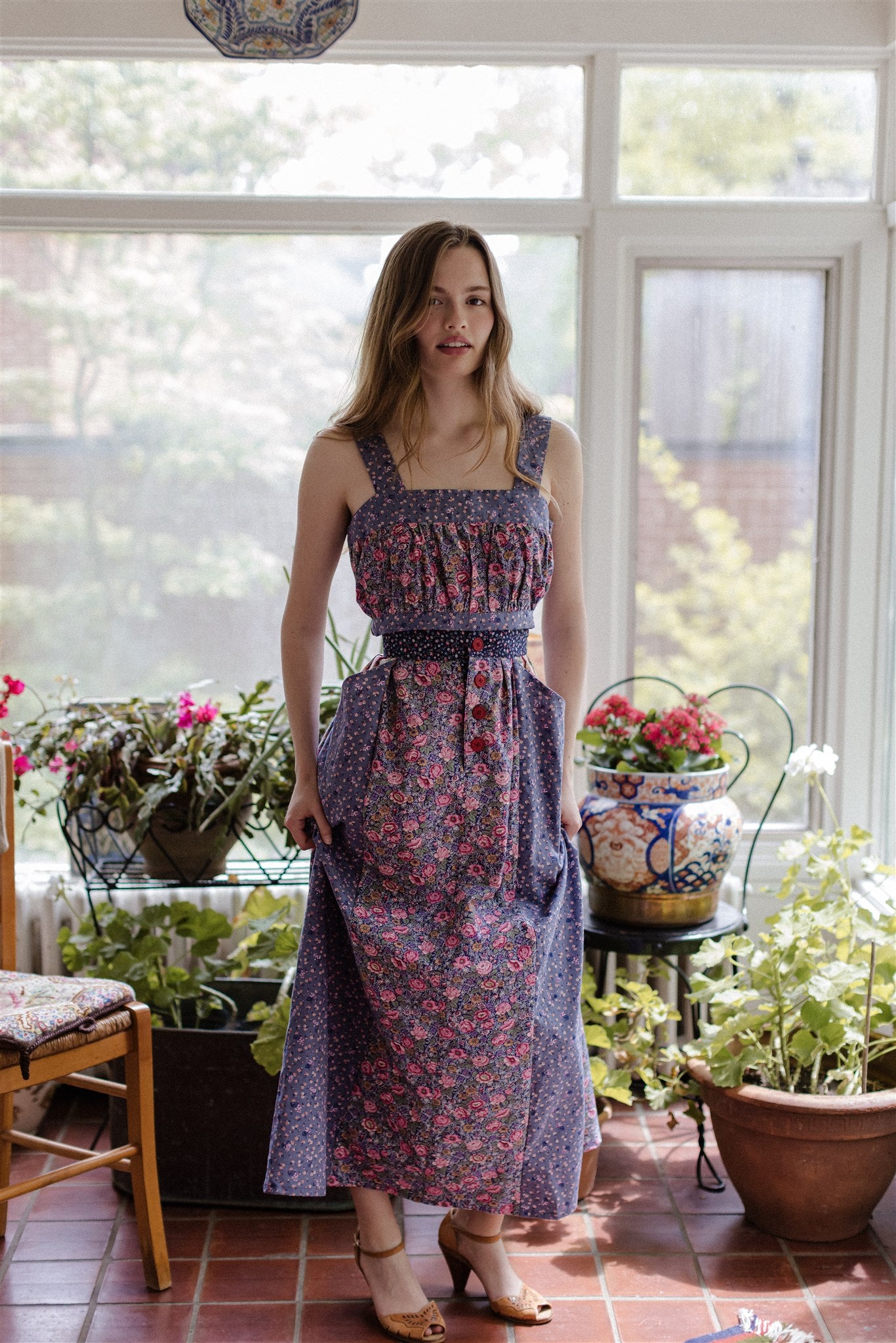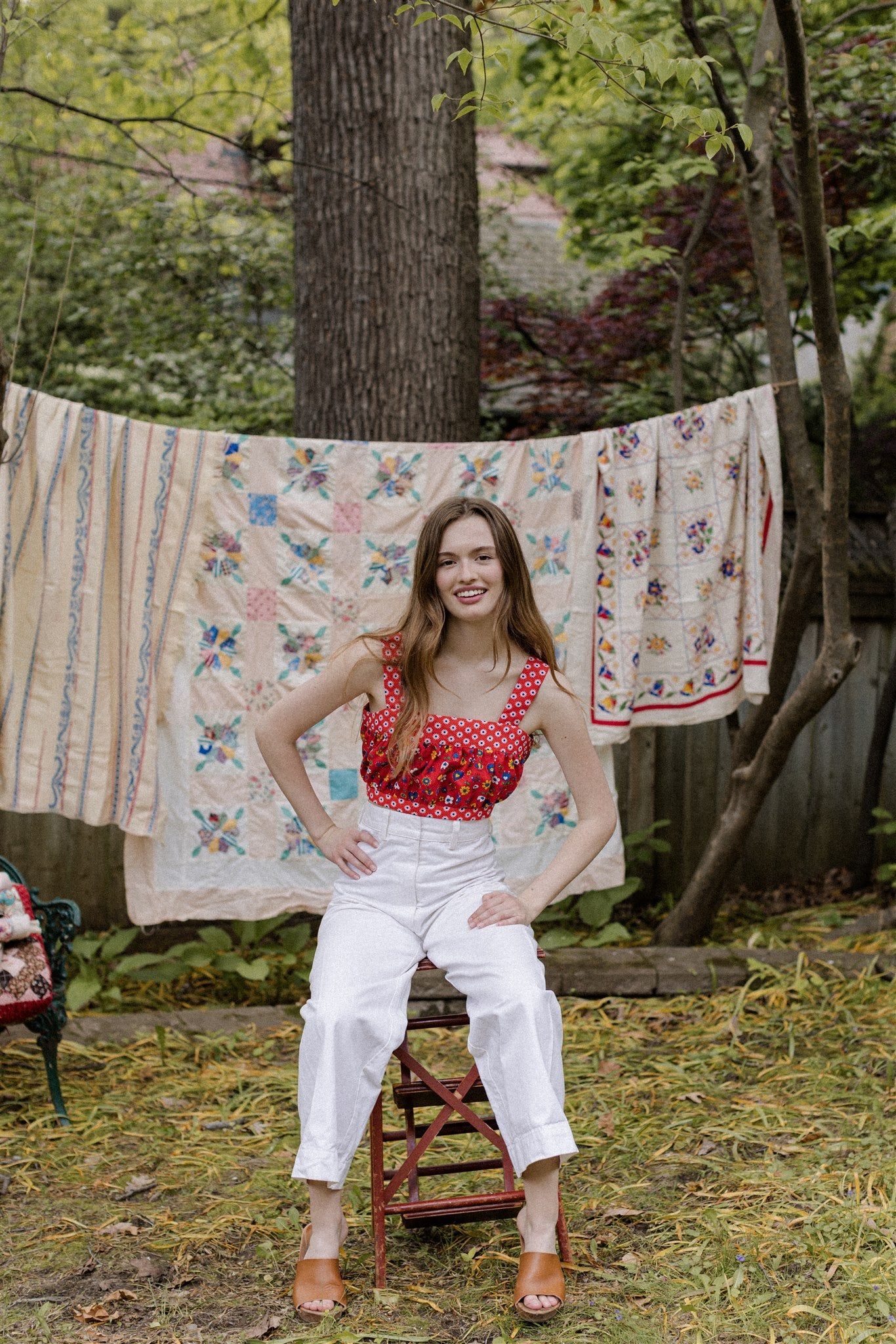 Quite possibly my favourite Honeybea piece of all time, the Zinnia Top is an endlessly versatile go-to with long skirts, white sailor pants, vintage overalls and high-waisted denim. Inspired by 1940s farmwear with wide straps and a boxy cut, it sits just above the bottom of the ribcage and is made for the perfect midriff moment. Cut and sewn in a once in a lifetime stash of gritty vintage gold and designed with an elasticated back for easy wearing and a flexible fit, we have introduced an adjustable strap with two big buttons in the back to make this small but mighty beauty even better than ever.